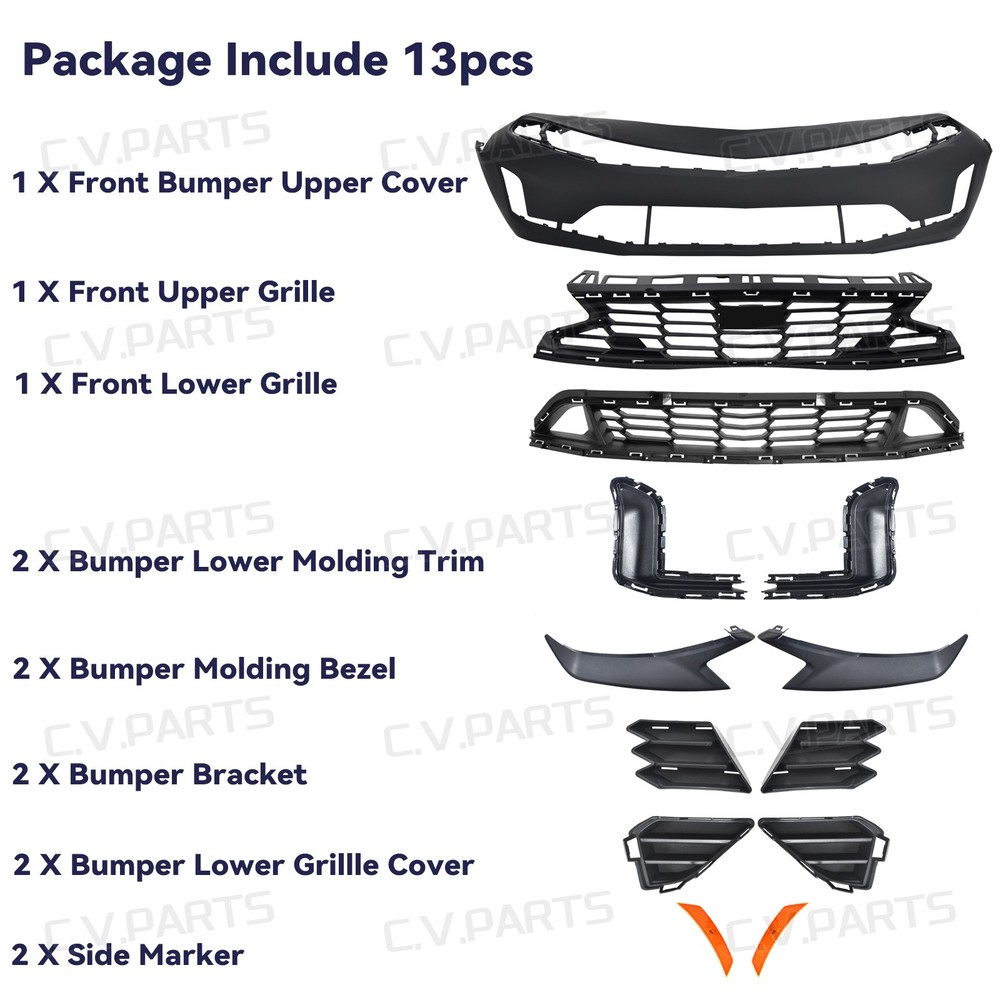 For Chevrolet Camaro LT LS 2019-2023 Front Bumper Kit Cover W/Grille Assembly For 2019 2020 2021 2022 2023 Chevy Camaro LT LS Front Bumper Cover w/ Grille CAPA Certified Assembly - G1000A50-A (The Bumper is Shipped Unfolded and All Items in ONE Package) Feature: 100% Brand New in the box with manufacturer packaging, never been installed before. Enhance the looking of your car Direct replacement, professional installation is recommended Our Product is Light weight design. An excellent replacement/accessory for your vehicle,No Modification Needed Good Design Perfectly matched to the original car, the black color scheme adds beauty to your car. Specification: Condition: 100% Brand New Material: Plastic Color: Black Type: Bumper Replacement OE/OEM Part Number: Replace for G1000A50-A,84543062,GM1000A50 Fitment Type: Direct Replacement Placement on Vehicle: Front Bumper Manufacturer Warranty: 3 Years Fitment: Fit 2019 2020 2021 2022 2023 Chevy Camaro LT LS. (The Compatibility Is Just For Reference. Please Compare With Your Original One Before Purchasing! If you not sure the item can fit for your car or not,please contact us, and attach VIN Number and front picture of your car. then we will check for you,thanks.) Package Includes: 1 x Front fascia kit bumper 1 x Front grille 1 x Lower grille 1 x Side lights 2 x Fog light covers (two sets: with fog lights & without fog lights) 2 x Bumper brackets with primer As shown in the pics (The Bumper is Shipped Unfolded and All Items in ONE Package) Fit for 2019 2020 2021 2022 2023 Chevy Camaro LT LS. Note: If you have any questions or concerns, please contact us via eBay messages before leaving negative feedback♥ We currently dispatch only to addresses within USA. The term excludes the states of Alaska and Hawaii, and all off-shore U.S. territories and possessions. We cannot make shipment to PR, AK, HI, GU, or APO/FPO. Payment Delivery Information 60 Days Return & Warranty Wholesale Guide Contact us Payment We accept payment via Paypal, G-Pay, Visa, Mastercard ect. More payment options for you^^ To ensure a smooth transaction, please follow the payment instructions laid out in the ebay system. If you there is any problem please send us a message and our Customer Service team will be happy to assist you. Delivery Information We ship to US only. Item(s) will be dispatched from Cranbury, NJ OR Hebron. Item(s) will be shipped out within 1 business day once payment cleared (except for special condition). We will choose the best Freight Service from UPS Post, UPS or Fedex according to your location and item specs. In case your package that is addresssed to a PO Box be delayed, please provide a physical address. Delivery may take 1-5 working days depending on different delivery areas. All orders in the continental 48 States will be shipped FREE of charge via FedEx or USPS. Orders outside the continental 48 States . We do not ship to Alaska,Hawaii, Puerto Rico, US territories, or International, FPO, APO or PO Boxes. 60 Days Return & Warranty If you've changed your mind or purchased in error you may be entitled to return the product for a partial refund. We must be notified within 30 days of you receiving the item, and it must be returned in original unused re-saleable condition with all tags and packaging in the following 14 days. We offered 6 month warranty on all products used for private household use from the date of purchase ( unless noted otherwise ). The use of products for commercial purposes qualifies the purchaser to a 3 month warranty perio d. Consumable components and accessories are not covered once used or for damage caused by general wear and tear. Wholesale Guide Wholesale orders are welcomed, please feel free to contact us, and we will not let you down. Contact us We left positive feedback for you after receiving payment. Your feedback is very important for us, positive feedback and 5 Star DSR is highly appreciated. Please let us know before leaving any negative feedback or 1 point, 2 point low DSR or open any disputes on Paypal and Ebay, please give us the opportunity to resolve any problems and we will try our best to satisfy your needs. We are always striving to offer our customers high product quality, reasonable prices, excellent customer service and a reliable credit standing. If you like our products, please add my eBay shop to your "My Favorites'' All communication is done through EBAY MESSAGES ONLY. If any question, please feel free to contact us via "Ask seller a question" or "Contact Seller",We try our best to reply to your emails as soon as possible, due to high volume of daily incoming emails and time zone difference, we may not be able to reply your emails immediately. Please allow 1-2 business days for us to response.