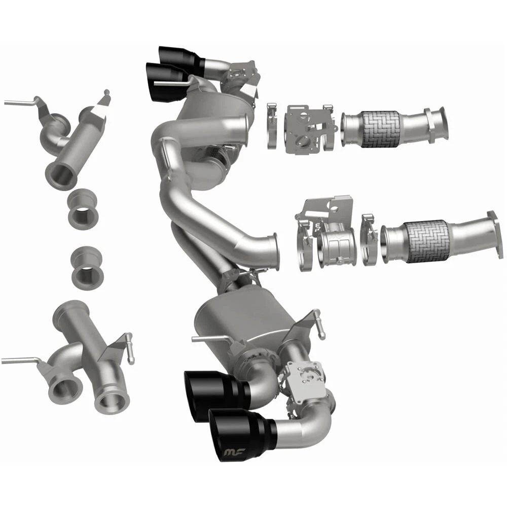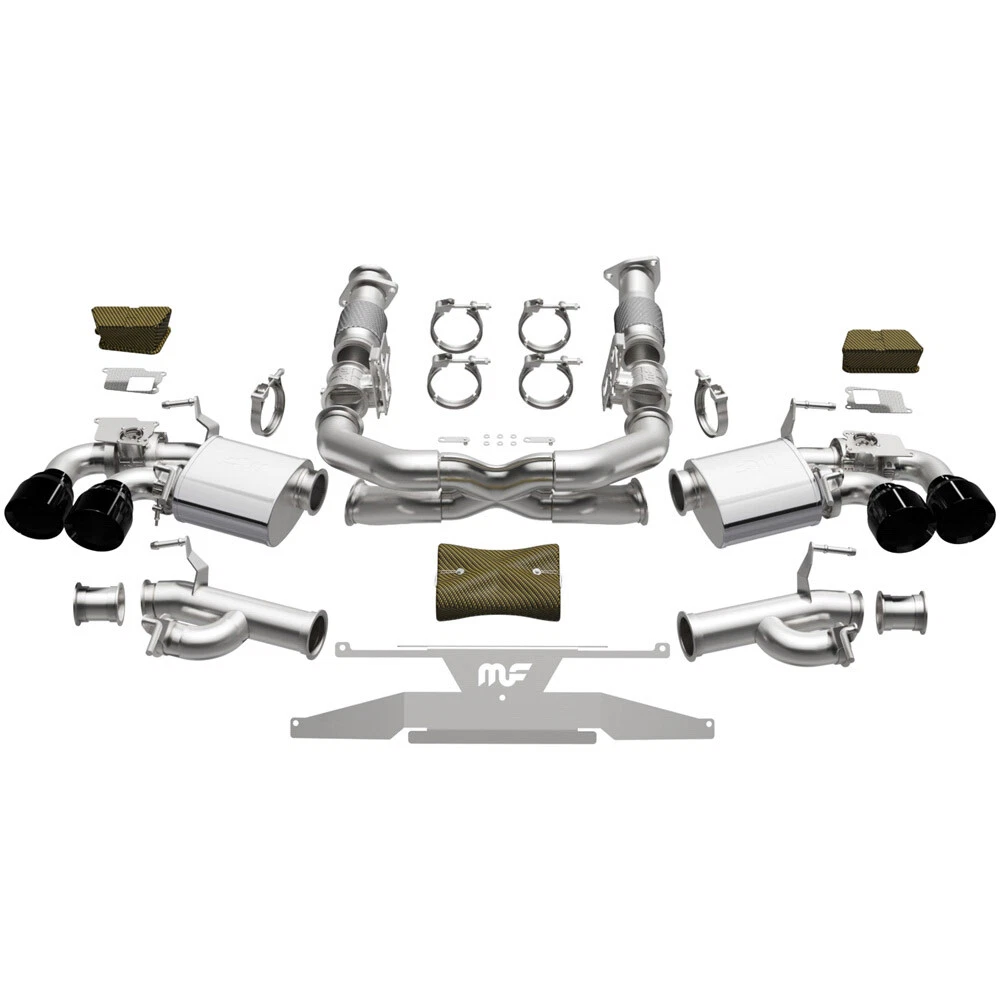 Buy now with confidence, this item ships FAST from the USA, it is backed by an unbeatable warranty, and free easy returns! Welcome to Car Steering Visit Storefront For Chevrolet Corvette 2020 2021 2022 Magnaflow Exhaust Kit Easy Install OEM fit and finish for easy installation! Premium Parts All parts are premium ISO/TS 16949 quality. Expertly Built Our parts are engineered and manufactured to meet or exceed the standards of the Original Equipment. Tested and Approved Each part is run through rigorous testing before it leaves the factory. ABOUT THIS ITEM As one of the world's largest automotive parts suppliers, our parts are trusted every day by mechanics and vehicle owners worldwide. This Performance Exhaust System is manufactured and tested to the strictest OE car and truck standards for unparalleled performance. Built for trouble-free ownership and 100% visually inspected and quality tested, this Performance Exhaust System is backed by our 100% satisfaction guarantee. The MagnaFlow xMOD Series Cat-Back Performance Exhaust System with black chrome finish #19545 for the 2020-2021 Chevrolet Corvette C8 offers the modularity of MagnaFlow’s xMOD series in a compact package designed for high performance and durability. It took days of dyno and track testing to ensure that this exhaust kit does all this while enhancing the exhaust sound with our deep signature tone. MagnaFlow #19545 boosts the max power of your C8 by up to 18 hp and 17 lb. ft. of torque, with peak power gains of up to 12 hp and 13 lb. ft. of torque.† Muffler Quantity - 2; Mounting Bracket Included - No; Hangers Included - Yes; Pipe Material - Stainless Steel; Muffler Finish - Polished; Muffler Body Material - Stainless Steel; Gasket Included - Yes; Inlet Connection Type - Bolt-On; Main Piping Diameter - 3; Muffler Size - 5x8x8; Muffler Type - Straight-Through; Tip Material - Stainless Steel; Tip Diameter - 4.5; Tip Finish - Black Chrome; Exit Style - Quad Split Rear; Tip Length - 5.75; Clamp Type - V-Band Clamp; Tip Shape - Round; Exhaust Tip Quantity - 2; Tip Type - Welded-On;Double Wall;Angle Cut;Folded Edge; Type - Cat-Back; Valve Included - Yes; Valve Type - Actuated Technical Specifications Part Type: Performance Exhaust System SKU: U7-L1688 MA Brand: MagnaFlow Exhaust Products Part Number: 19545 Condition: NEW Warranty: 1 Year Weight: 75.0000 UPC: 888563159713 Interchange Part Numbers 20626994-101 Vehicle Fitment Year Make Model Details 2020 Chevrolet Corvette 6.2L Engine - Quad Split Rear Exit 2021 Chevrolet Corvette 6.2L Engine - Quad Split Rear Exit 2022 Chevrolet Corvette 6.2L Engine - w/ Quad Split Rear Exit 2023 Chevrolet Corvette 6.2L Engine - Quad Split Rear Exit 2024 Chevrolet Corvette 6.2L Engine - Quad Split Rear Exit Our Popular Categories AC Compressor and Components Kit AC Compressor AC Condensor AC Evaporator