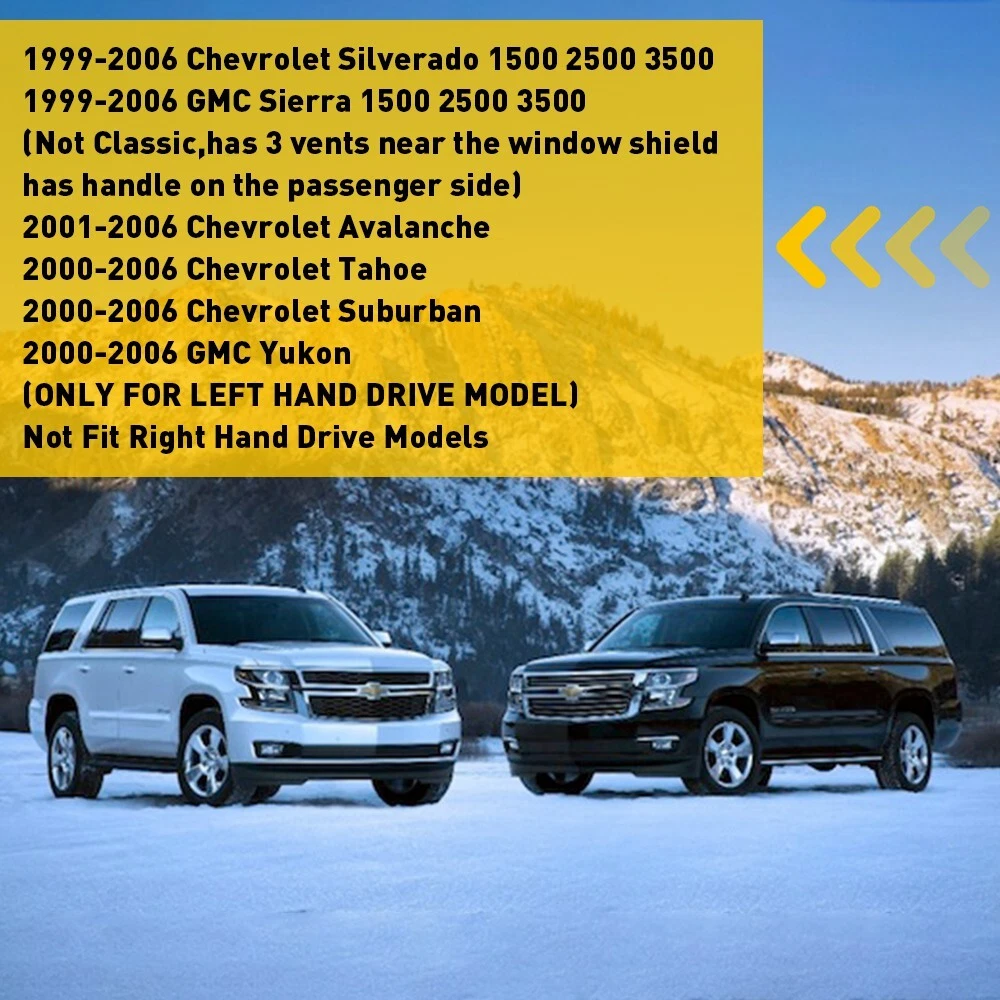 Fit for: 1999-2006 Chevrolet Silverado 1500 2500 3500 1999-2006 GMC Sierra 1500 2500 3500 (Not Classic,has 3 vents near the window shield,has handle on the passenger side) 2001-2006 Chevrolet Avalanche 2000-2006 Chevrolet Tahoe 2000-2006 Chevrolet Suburban 2000-2006 GMC Yukon For the year and models, please check the compatibility! Specification: Product material: Polyester + anti-skid silica gel Product color: black Features: *Shading function: Prevent sunlight refraction and increase brightness of front windshield. *Sunshade function: For Chevy Silverado 1500 2500 Tahoe Yukon 2001-2006 Car Dash Cover Dashboard Mat Fit for: 1999-2006 Chevrolet Silverado 1500 2500 3500 1999-2006 GMC Sierra 1500 2500 3500 (Not Classic,has 3 vents near the window shield,has handle on the passenger side) 2001-2006 Chevrolet Avalanche 2000-2006 Chevrolet Tahoe 2000-2006 Chevrolet Suburban 2000-2006 GMC Yukon For the year and models, please check the compatibility! Specification: Product material: Polyester + anti-skid silica gel Product color: black Features: *Shading function: Prevent sunlight refraction and increase brightness of front windshield. *Sunshade function: Minimize such ultraviolet radiation or sunlight reflection damage, making your driving safer and more comfortable. *Anti-slip fucntion: The anti-skid silica gel on the bottom is designed to ensure the mat is not slide easily during driving. *Great protection: Protecting the Dashboard surface from scratches, cracks and warping. *Superior material: Polyester material is used on mat surface which is quite durable ,elastic and without deformation and pilling. *Perfect fit: With its well-cut shape, it will line up with your car in all the right spots. Easy installed and No modification needed. *High qulity: Durable, colorfast, non-shrinking needle-punch carpet *In Winter, warm the dashboard *In Summer, block UV rays from heating-up,cool the car, prevent high temperature *Environment-friendly materials, no bad smells, anti-slip, easy to install Simple installation: 1. Clean the dashboard. 2. Place the mat on top of it. 3. Done. Package Include: Dashboard Cover Mat *1 Item Specifics Manufacturer Warranty 1 Year Fitment 2 For 1999-2006 GMC Sierra 1500 2500 3500 Fitment 5 2000-2006 Chevrolet Suburban Fitment 6 2000-2006 GMC Yukon Fitment Type Direct Replacement Fitment 3 For 2001-2006 Chevrolet Avalanche Country/Region of Manufacture United States Fitment For Chevrolet Silverado 1500 2500 3500 1999-2006 Manufacturer Part Number Does Not Apply Brand Unbranded Color Black Fitment 4 2000-2006 Chevrolet Tahoe UPC 753318381520 FAQ ♥ If you have a decoding problem or any other problems, please contact us first, we will help you with it. We will reply you within 24 hours in working days. I'm a new seller, thanks a lot for your trust and convince! I will serve you with all my heart. ♥ Q1: Will this bulb fit my vehicle? A: We can match almost any vehicle to one of our bulb sizes. eBay only lets us include some vehicle fitments per listing, but if your vehicle does not show up on the compatibility table at the top of our listings, welcome you to contact us for free consulation before purchasing a product. Q2: My item has not arrived, what's taking so long? A: Sometimes items take longer than expected, especially if it’s going far or to rural area. Check with your post office to see if your item has been held up. Sometimes Royal Mail will not update a tracking number until it has arrived at its destination. If your item still don't arrive after a few days, let us know so we can double check for you and help solve it asap. Q3: My bulbs won't fit, help! A: Special bulb holder may be required. See if you can take the holder from the stock bulb. If not, let us know. The bulb size may be wrong, double check the item you received with the item you ordered. Do you have an aftermarket lighting housing? These may not be perfectly fitted for aftermarket bulbs and will require some manual modifications. Q4: Neither side lighting up? Both sides flicker, hyper flash, or work inconsistantly. A:Check the light fuses, and then check the ballast plugs to insure correct installation. If this doesn't work, there may be a voltage problem with the vehicle. You probably just need a relay or capacitor. Even though some bulbs are builtin resistors, they may still need a decoder. Pay & Ship (1). We gladly accepts payment via PayPal, We will ship your item(s) within 24 hours. (2). Before payment, please keep the consistency of Paypal address and ebay address. (3). Quantity orders are welcome! Returns (1). We offer 60 days free return policy. Please contact us within 60 days from the date you receive your order if you have any issues with the product or want return. Refund will be send after we got your resend package. (2). All returned items should be in the original packaging , return tracking information should be provided . Contact Us (1).Negative feedback will not help resolve any problems you have, please contact us via eBay messages before leaving negative feedback , our customer service will make best effort to help you with the issues. (2).We maintain high standards of excellenceand strive for 100% customer satisfaction! Feedback is very important to us. We request that you contact us immediately before you give us neutral or negative feedback, so that we can satisfactorily address your concerns. About us We're professional in car and motorcycle accessories, especially in LED bulbs. We have our own factory and R&D team. Our belief is to sell top quality items that fit your car and serve you with our heart. Anything please feel free to contact us! Our customer service is very responsibility. Come and follow us! DESCRIPTION NEW ARRIVED HOT SALE CONTACT US SAVE US Store Category Store Home Other Hot Item Fits 2019-2021 CHEVY SILVERADO DASH COVER DASHBOARD MAT PAD DASHMAT GMC Sierra USD 25.99 For Toyota Aftermarket Radio Stereo Car Wire Harness Cable Adapter w/ Canbus BOX USD 27
