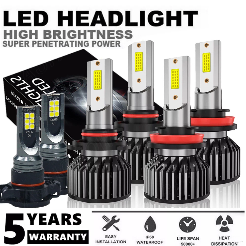 Specification Package: including (Total 6x) 9005&H11 LED headlights & H16 LED fog lights. Color Temperature: 6000K white. Lumens: 28000LM total in Headlight, 6000LM in Fog light. Waterproof: Yes, IP67. Power Input: DC 9-32V Current:2.8A Cooling Belt Material: Copper Working Tem: -20~85℃ Power: 400W/Set (60W/each bulb) Lumens: 28000LM/Set (6000LM/each bulb) Beam Angel: 360° Working efficiency: 98% Lifespan: > 30,000 Hours Material: Aluminum alloy 6000K white CANBUS ERROR FREE: No. For most vehicles, just directly plug and play. Yet for some vehicles with CAN-BUS system, it may require install decoder or load resistor to avoid hyper flash or fast blinking. Application: replacement for led headlight,fog light,or DRL(daytime running light),etc. Vltage: 12V~24V, built in IC driver,much stable current than normal led bulbs in the marker, longer life span. Perfect replacement for the halogen and incandescent headlamp, Easy installation about taking about 20 minutes according to the installation manual included. Please Note: Please check your car manual or original bulb to confirm the bulb size, length is correct or not before purchasing to save your time. Package Included: 4x LED Headlight Bulb 2x LED Fog Light Bulb Suitable for all kinds of weather How Do I Know These LED Bulbs are Right for My Vehicle? Plese check the size on Ebay fitment guide system ( Ebay filter system may not be up to date. ) Plese check your vehicle user manual or original halogen bulb, the part number is marked above. Plese search "automotive bulb look-up" online, and enter your vehicle info to find out the correct size. Or in 'Customer questions & answers', write down your vehicle year, make, and model, we will help you check. Q&A Returns Shipping Policy Payment Contact US Q&A Q1: Will this bulb fit my vehicle? A1: We can match almost any vehicle to one of our bulb sizes. eBay only lets us include some vehicle fitments per listing, but if your vehicle does not show up on the compatibility table at the top of our listings, welcome you to contact us for free consulation before purchasing a product. Q2: Which bulbs are used in my vehicle? A2: Check automotive lamp replacemnt guide, you can select the year, make, and model of your vehicle, then select the application you want to replace or upgrade from stock. Q3: My bulbs won't fit, help! A3: Special bulb holder may be required. See if you can take the holder from the stock bulb. If not, let us know. The bulb size may be wrong, double check the item you received with the item you ordered. Do you have an aftermarket lighting housing? These may not be perfectly fitted for aftermarket bulbs and will require some manual modifications. Q4:Why after installing the bulb, there have the flicker/error message/radio interference? A4: Check the light fuses, and then check the ballast plugs to insure correct installation. If this doesn't work, there may be a voltage problem with the vehicle. You probably just need a relay or capacitor. Even though some bulbs are builtin resistors, they may still need a decoder. Returns 1. Customer satisfaction is our top goal. We believe our items are so outstanding. All products are quality checked. They are new and in good condition when shipped to our customers. We are convinced you will be happy with your Purchase. 2. We offer free return & money back guarantee. If you are not satisfied with your purchase for any reasons, you can return the item for refund or replacement/exchange. All returns must include the original packaging. 3. Please contact us first if you have any problems/questions/concerns. We will be happy to resolve any issues you may have in a cordial and friendly manner. Any items damaged because of incorrect installation will not be refunded. Please contact us for return or troubleshooting help prior to returning any products. 4. We appreciate your Postive Feedback, and will do the same in return. DO NOT leave negative feedback without first communication with us. Please allow max 2 business days for us to response. Shipping Policy All items will be checked before packing. All items are new and of high quality. 1. Can you tell me when my order will be shipped? Actually we will ship the item within 1 business day after receiving orders, excluding weekends and public holidays. But USPS need to take longer time to update tracking info and arrange delivery during the challenging time for now. If your order was not shipped more than 3 business days, please contact us with your order number to get quick support. 2. My item has not arrived, what's taking so long? Sometimes items take longer than expected, especially if it's going far or to rural area. Check with your post office to see if your item has been held up. Sometimes USPS will not update a tracking number until it has arrived at its destination. If your item still has not arrived after a few days, let us know so we can double check for you and help solve it asap. Payment 1. Instant PayPal payment is the preferred method of payment. We also accept payment via PayPal, DebitCard, Visa, MasterCard, Discover. 2. Items will be shipped to your eBay address. Please make sure it is correct. 3. If you want to ship to other address, please change your PayPal shipping address before you make payment. 4. Payment must be received 4 days after auction ended. Contact US 1. When you satisfied with our product and services please leave us positive feedback. 2. If you have ANY questions with shipping, product or service, please Contact Us first before leaving feedback/write a review or filing a return case. We will solve the problem! If you have ANY questions with shipping, product or service, please Contact Us first before leaving feedback/write a review or filing a return case. We will solve the problem! We always put our customers first and your satisfaction is guaranteed.