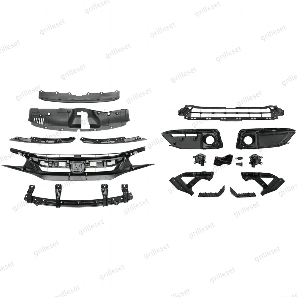 Fit for : 1 Set (15 PCS) Includes:(See more pictures for details) 1 Pc front radiator support cover 2 Pcs front grille gloss black extension moldings assembly 1 Pc front upper gloss black grille 1 Pc front bumper upper support beam bar iron 1 Pc front lower black grille mesh 1 Pc front bumper lower garnish 2 Pcs fog lights with bulb,switch,relay and Harness 2 Pcs fog light bezels(gloss black+matte black) 2 Pcs front headlight brackets 2 Pcs front bumper brackets Item OE number : 71121-TBA-A61;71125-TEY-Y01;71129-TEY-Y01;71124-TEY-Y01;74127-TBA-A00;71115-TBA-A60;71111-TBA-A50;71150-TBA-A00;71198-TBA-A00;71193-TBA-A00;71190-TBA-A00;71140-TBA-A00;71185-TBA-A60;71180-TBA-A60;33950-T5R-A01;33900-T5R-A01 Installation : Perfect fit direct replacement, no modifications required. Installation manual not provided; we recommend professional installation. Item's-Features : Superior quality kit 100% brand new Made from high-quality materials Excellent replacement part, no modifications needed Other parts fit for
