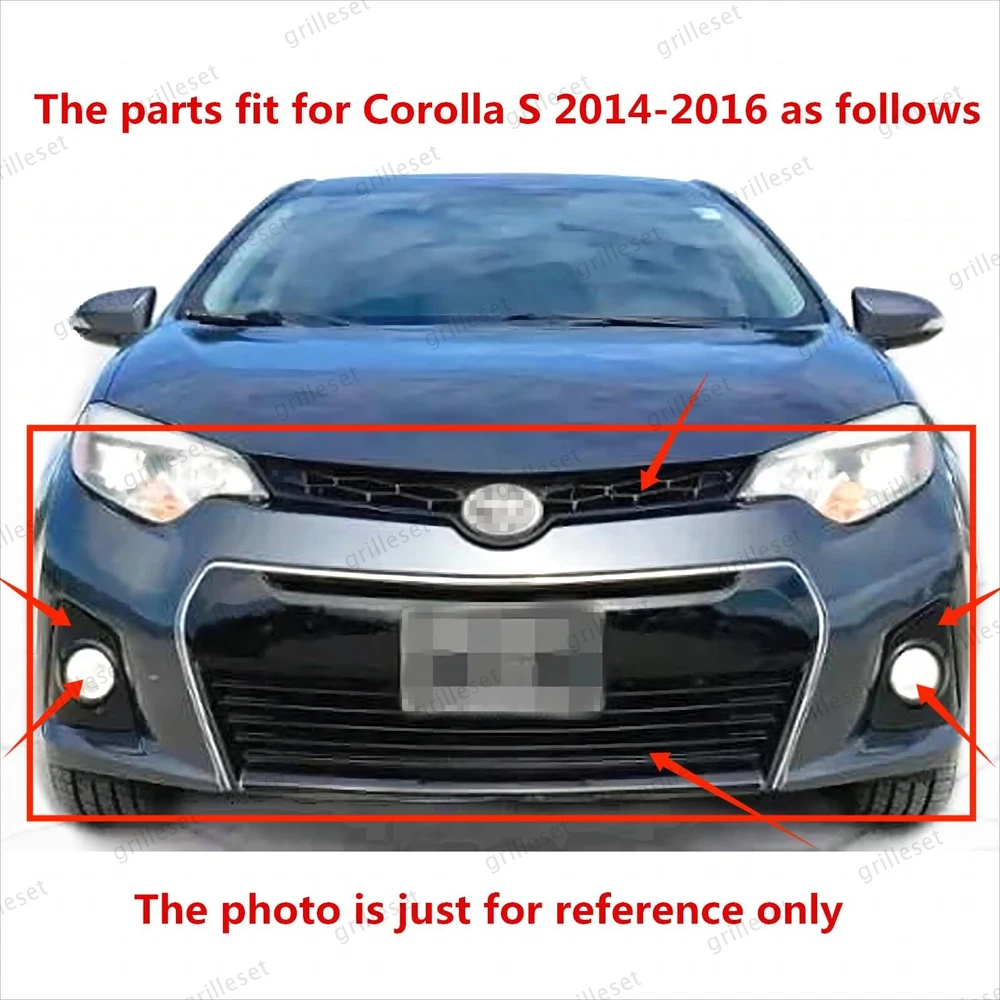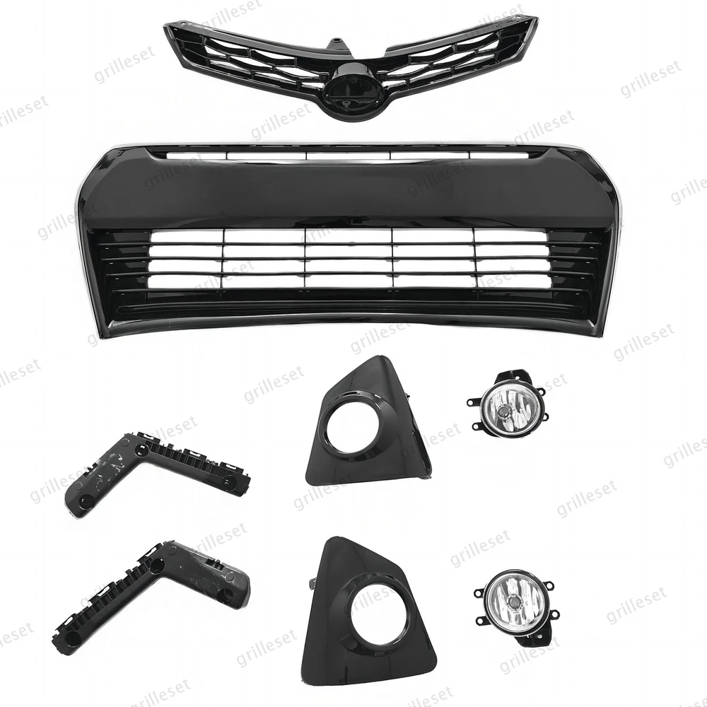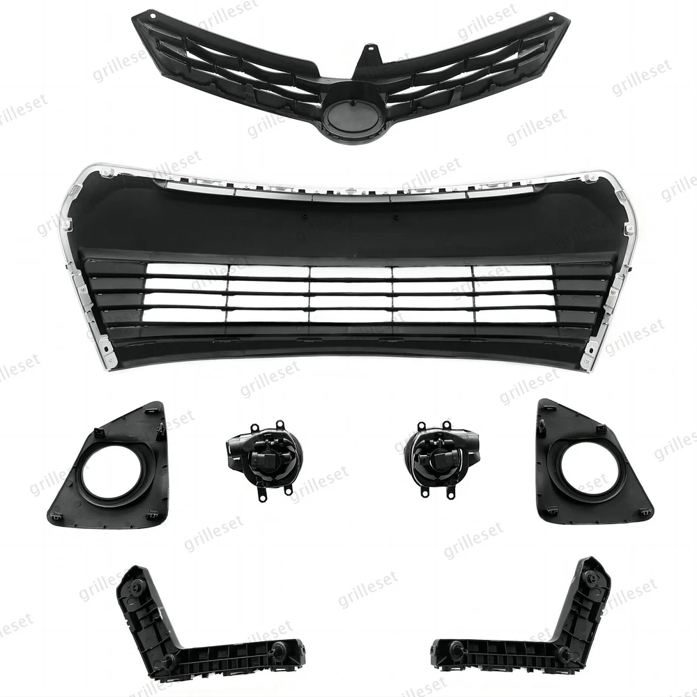 Fit for : 1 Set (8 PCS) Includes:(See more pictures for details) 1 Pc front upper black grille 1 Pc front lower gloss black grille mesh with chrome trim 2 Pcs fog lights with bulb 2 Pcs fog light bezels(gloss black) 2 Pcs front bumper brackets Item OE number : 53111-02770 ; 53126-02090; 53102-02210 ; 52116-02240; 52115-02240; 81482-02470 ; 81481-02480 ; 81220-02160 ; 81210-02160 Installation : Perfect fit direct replacement, no modifications required. Installation manual not provided; we recommend professional installation. Item's-Features : Superior quality kit 100% brand new Made from high-quality materials Excellent replacement part, no modifications needed Other parts fit for