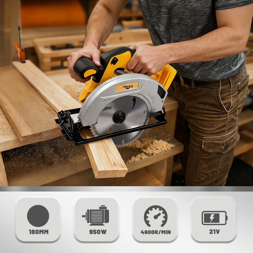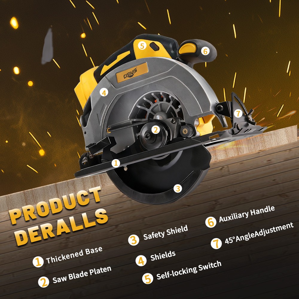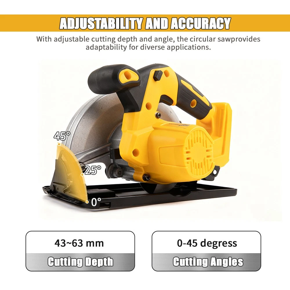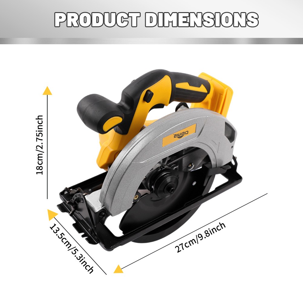 ⚠️⚠️⚠️Pay Attention!Tool only, No battery! Not Brand Dewalt !!! This Electric Circular Saw is just compatible with De-Walt 20V Max Battery. 【Compatible with DeWaLT 20V Max LI-ION Battery 】 - This Cordless Circular Saw Is Powered by Dewalt 20V Batteries.It Harmoniously Pairs With All Dewalt 20V Battery Models, Including DCB200 DCB201 DCB203 DCB204 DCB205 DCB206etc (Battery Not Included) Let Cutting Working Become a Breeze With This Perfect Partnership. NOTE: We sell tool only, Battery is NOT Included! 【Easy Grip Handle】 - Ergonomic design for two-handed operation ensures you have a comfortable and balanced grip. 【Powerful motor】 - Powerful motor delivers up to 40% faster cutting. High speed motor with 24-tooth carbide-tipped blade provides fast, clean cuts. 【Versatility】 - This power circular saws delivers a 45.5 mm cut at a 90-degree angle, miter capability up to 45 degrees, and 33.5 mm cutting capacity for Easily meet cutting challenges. 【Wreckage Export & Precision Ruler】 —Unique debris outlet facilitates cleaning of debris after operation,the scale ruler meets the need for this electric circular saw to keep moving in a straight line while pursuing high precision work,Let your complete your work easily and improve work efficiency. 📦 Package Includes: 1 x Cordless Circular Saw (without battery) 1 x Allen Wrench for Blade 1 x User Manual