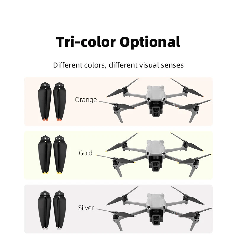 Product Description If you have any questions, please contact customer service first, do not open disputes easily, thank you! Feature: 1. High toughness material, high aerodynamic efficiency, 2. Low power consumption and strong endurance, 3. Classic quick release design, pressing and rotating, quick installation in one second. Specification: Material: PC Applicable models: For DJI Air 3 Color: Orange/Gold/Silver Net weight: 0.88oz.(25.2g) (2 pair), Package weight: 1.22oz.(35g)(2 pair), Product size: 8.74in(22.2cm)(diameter) Package Includes: 2 pair*Propeller Note: 1.Does not include Drone, 2.Transition: 1cm=10mm=0.39inch, 3.Please allow 1-3mm error due to manual measurement. please make sure you do not mind before ordering, 4.Due to the difference between different monitors, the picture may not reflect the actual color of the item,please make sure you do not mind before ordering, Thank you! About Us We accept all payments authorized by eBay. powered by