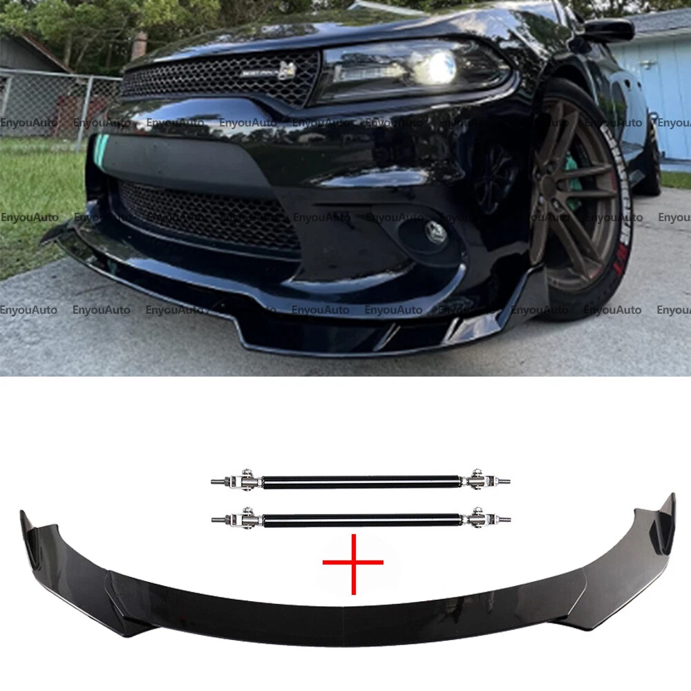For Dodge Durango Front Bumper Lip Spoiler Splitter + Strut Rods Glossy Black
