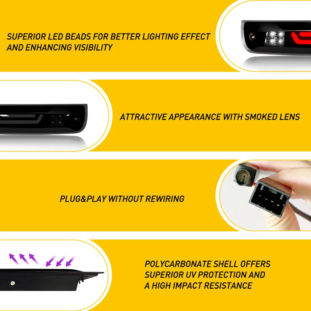 Application: 2009-2018 Dodge Ram 1500 2010-2018 Dodge Ram 2500 3500 Specifications: For Dodge Ram 1500 2500 2009-2018 Red Tube LED Smoke Third Brake Light Cargo EPS Application: 2009-2018 Dodge Ram 1500 2010-2018 Dodge Ram 2500 3500 Specifications: Light Color:Red+White Lens color:Smoke shell Bulb Type:LED LED Function:Brake,Cargo Material:ABS Plastic Placement on Vehicle:Rear Fitment Type:Direct Replacement Waterproof Rate: IP67 Voltage: DC 10-30V Service Life: more than 50000h Feature: Built-in resistor, No Flicker, No Strobe Plug-n-Play Operation Low Power Consumption Super bright LED lights compare to the OEM Faster on/off response Time for driving safety All-Weather design and triple vacuum tested Bring a different appearance to vehicle thats great for show use Features: Fitment:For 2009-2018 Dodge Ram 1500, 2010-2018 Dodge Ram 2500 3500. Manufacturer Part Number???5372082AD. Interchange Part Number???5372082AC. Other Part Number: 55372082AE,55372082AF Water-Proof: The rain-proof design of brake light works even under extreme conditions such as rain and snow(IP68). High Brightness: New lighting source with the performance of high brightness, long lifetime(more than 50000h) and high realiability. Superior Material: ABS material is used in our product for offering better quality. Attractive Appearance: Fashionable appearance can make the whole car more attractive and beautiful. Energy-saving: Plug-n-Play Operation,Low Power Consumption. Plug and Play:Built-in resistor, No additional wiring required, you just need to remove the old one and direct plug in the connector and tighten two screws. For a better fit, it is recommended to use factory screws Premium LEDs:Powerful LEDs designed to be visually striking and enhance visibility. Use unique design the third brake light, full LED light source for a great indication of brake and cargo to enhance driving safety. (8 LED for Cargo Light) Note: Safety: LED brake Light provides you with a decisive safety leap in road traffic and helps prevent 98% of accidents. Durability: Professional housing design with heat sink at the back of the lamp ensures LEDs not over heated and have longer life span. Waterproof: With reverse polarity protection and open circuit protection, 100% waterproof and shock resistant. Highly recommended to use hand tools for installation. Power tools can easily over tighten and crack the light. Packaging included: Brake light*1 waterproof cushion*1 Item Specifics Brand AUXITO Lighting Technology LED Placement on Vehicle Left Rear Right Light Color Red White Lens Color Smoke shell Housing Color Black Manufacturer Warranty 2 Years Number of Bulbs 1 Certifications SAE Fitment Type Direct Replacement LED Function Brake, Cargo Material ABS Plastic, Polycarbonate Country/Region of Manufacture China FAQ ♥ If you have a decoding problem or any other problems, please contact us first, we will help you with it. We will reply you within 24 hours in working days. I'm a new seller, thanks a lot for your trust and convince! I will serve you with all my heart. ♥ Q1: Will this bulb fit my vehicle? A: We can match almost any vehicle to one of our bulb sizes. eBay only lets us include some vehicle fitments per listing, but if your vehicle does not show up on the compatibility table at the top of our listings, welcome you to contact us for free consulation before purchasing a product. Q2: My item has not arrived, what's taking so long? A: Sometimes items take longer than expected, especially if it’s going far or to rural area. Check with your post office to see if your item has been held up. Sometimes Royal Mail will not update a tracking number until it has arrived at its destination. If your item still don't arrive after a few days, let us know so we can double check for you and help solve it asap. Q3: My bulbs won't fit, help! A: Special bulb holder may be required. See if you can take the holder from the stock bulb. If not, let us know. The bulb size may be wrong, double check the item you received with the item you ordered. Do you have an aftermarket lighting housing? These may not be perfectly fitted for aftermarket bulbs and will require some manual modifications. Q4: Neither side lighting up? Both sides flicker, hyper flash, or work inconsistantly. A:Check the light fuses, and then check the ballast plugs to insure correct installation. If this doesn't work, there may be a voltage problem with the vehicle. You probably just need a relay or capacitor. Even though some bulbs are builtin resistors, they may still need a decoder. Payment (1). We gladly accepts payment via PayPal, We will ship your item(s) within 24 hours. (2). Before payment, please keep the consistency of Paypal address and ebay address. (3). Quantity orders are welcome! Returns (1). We offer 60 days free return policy. Please contact us within 60 days from the date you receive your order if you have any issues with the product or want return. Refund will be send after we got your resend package. (2). All returned items should be in the original packaging , return tracking information should be provided . Contact us (1).Negative feedback will not help resolve any problems you have, please contact us via eBay messages before leaving negative feedback , our customer service will make best effort to help you with the issues. (2).We maintain high standards of excellenceand strive for 100% customer satisfaction! Feedback is very important to us. We request that you contact us immediately before you give us neutral or negative feedback, so that we can satisfactorily address your concerns. About us We're professional in car and motorcycle accessories, especially in LED bulbs. We have our own factory and R&D team. Our belief is to sell top quality items that fit your car and serve you with our heart. Anything please feel free to contact us! Our customer service is very responsibility. Come and follow us! DESCRIPTION PAYMENT SHIPPING RETURN POLICY CONTACT US Shop Category St