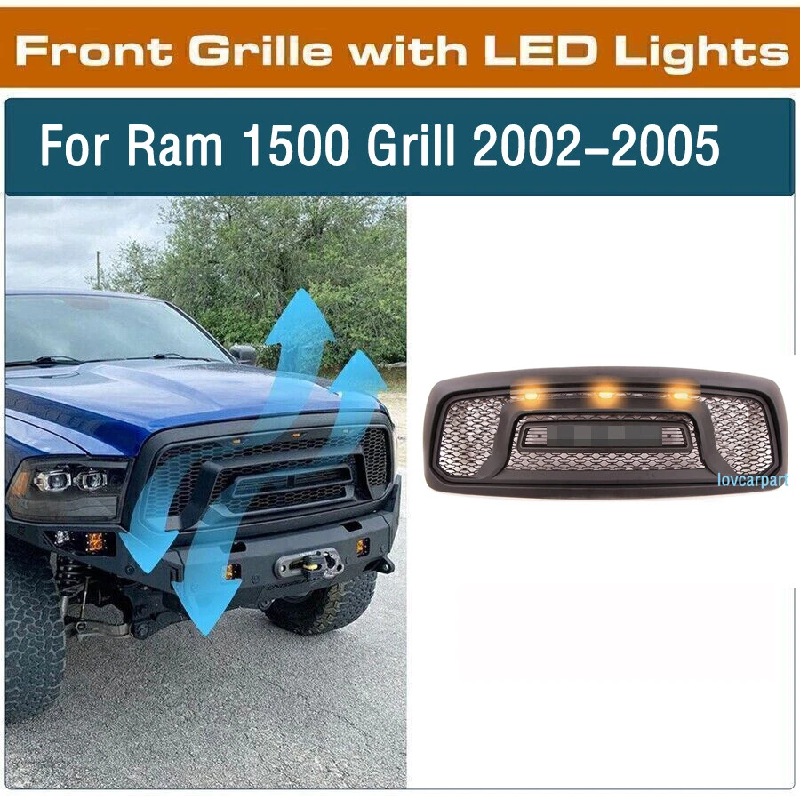Product Description Specification: Color: Matte black Material: ABS Plastic Type:Front Grille Grill with letter. No drilling and cutting required. F it for 2002 2003 2004 2005 RAM 1500 Feature: 1. High quality replacement ABS material, superior craftsmanship and durability. Each grille ensures good looks with a clean surface, you can enhance the style or function of the grille. 2. Prevent foreign material from entering the air intake and damaging the engine. 3. Provides better airflow to the radiator to help the cooling process better. 4. EASY INSTALLATION: Just unscrew your old grill and screw this one in with existing bolts. Tips: installation video can be found by search ing “RAM1500 grill 2002” on YouTube. Package Include: 1x Front Grille 3x Amber LED Lights 1x Wire Harn ess WITH Letter About Us Payment Shipping Terms Contact Us ~~Please leave us positive feedback if you are satisfied with our product and service, if not please contact us,we will solve your problem asap, many thanks~ Figo is one of US’s fastest growing online retailersWith our best effort, we are now trusted by more than 100,000 customers nationwide. We are dedicated to offering you an unrivalled choice of products with unbeatable low price and best quality. 1.We accept PayPal only. 2.All major credit cards are accepted through secure payment processor PayPal. 3.Payment must be received within 7 business days of auction closing. 4.We ship to your eBay or Paypal address. Please make sure your eBay ID、contact and Paypal address is correct before you pay. Handling time We ship within ONE Working day after we received your cleared payment. Shipping ways 1.We check all items before sending out. All products are brand new, never been used or refurbished. 2.Shipping way:Standard Shipping ( mostly 3-5 days ) 3.Most packets arrive in 3-5 days.If there is any delay,it may be caused by bad weather/warehouse overcrouded/ irresistible force or custom inspection . If you need the item urgently,please contact us about extra shipping cost for express shipping. 4.We are not responsible for wrong or undeliverable address. We only accept PayPal verified and confirmed address. Please make sure your shipping address is correct and deliverable. If you need to change your address, please change it in PayPal first before you pay. 1.If item is defective and not working on arrival, please contact us within 7 days of receiving the defective for repair or refund.Refund will only be provided for products damaged in the post or which is defective. Item may be returned within 14 days of purchase upon your receipt.All items returned must contain all original packaging materials. 2.This item have 2 Years warranty. We offer free repairing service within 6 months from the date of purchased. If damaged is caused by undue wear and tear, dirt, misused, improper installation/operation, accident or repaired by unauthorized person, the warranty becomes void. 3.Please message us if you have any problem.Please contact us before you return the item. 4.Buyer is responsible for the return postage. If you ask for a refund during valid period, we will offer you a refund without postage charges. Shipping and handling charges, insurance are not refundable in any case. We are only responsible for once re-sending expense for replacement due to defects. Any questions, pls contact us via ebay message or email us.We will reply your message within 48 hours. If you do not receive our reply within 48 hours, pls post a message again because sometimes our message system may block some emails. About Us ~~Please leave us positive feedback if you are satisfied with our product and service, if not please contact us,we will solve your problem asap, many thanks~ Figo is one of US’s fastest growing online retailersWith our best effort, we are now trusted by more than 100,000 customers nationwide. We are dedicated to offering you an unrivalled choice of products with unbeatable low price and best quality. Payment 1.We accept PayPal only. 2.All major credit cards are accepted through secure payment processor PayPal. 3.Payment must be received within 7 business days of auction closing. 4.We ship to your eBay or Paypal address. Please make sure your eBay ID、contact and Paypal address is correct before you pay. Shipping Handling time We ship within ONE Working day after we received your cleared payment. Shipping ways 1.We check all items before sending out. All products are brand new, never been used or refurbished. 2.Shipping way:Standard Shipping ( mostly 3-5 days ) 3.Most packets arrive in 3-5 days.If there is any delay,it may be caused by bad weather/warehouse overcrouded/ irresistible force or custom inspection . If you need the item urgently,please contact us about extra shipping cost for express shipping. 4.We are not responsible for wrong or undeliverable address. We only accept PayPal verified and confirmed address. Please make sure your shipping address is correct and deliverable. If you need to change your address, please change it in PayPal first before you pay. Terms 1.If item is defective and not working on arrival, please contact us within 7 days of receiving the defective for repair or refund.Refund will only be provided for products damaged in the post or which is defective. Item may be returned within 14 days of purchase upon your receipt.All items returned must contain all original packaging materials. 2.This item have 2 Years warranty. We offer free repairing service within 6 months from the date of purchased. If damaged is caused by undue wear and tear, dirt, misused, improper installation/operation, accident or repaired by unauthorized person, the warranty becomes void. 3.Please message us if you have any problem.Please contact us before you return the item. 4.Buyer is responsible for the return postage. If you ask for a refund during valid period, we will offer you a refund without postage charges. Shipping and handling charges, insurance are not refund