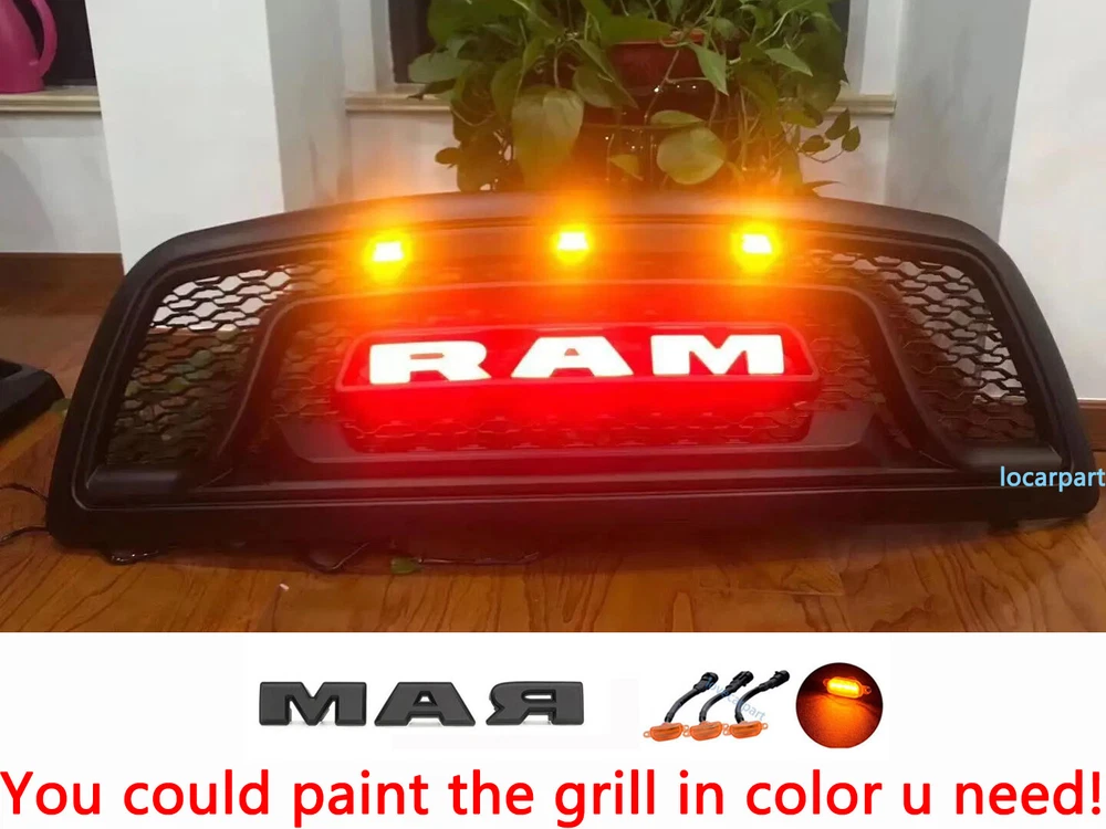 Product Description Specification: Color: Matte black Material: ABS Plastic Grill with 3Needed letter. No drilling and cutting required. Compatible For Dodge Ram 2500 2010-2018 Feature: 1. High quality replacement ABS material, superior craftsmanship and durability. Each grille ensures good looks with a clean surface, you can enhance the style or function of the grille. 2. Prevent foreign material from entering the air intake and damaging the engine. 3. Provides better airflow to the radiator to help the cooling process better. 4. EASY INSTALLATION: Just unscrew your old grill and screw this one in with existing bolts. Tips: installation video can be found by searching “ram1500 grill 2010 install” on YouTube. . Package Include: 1x Grill 3x Amber LED Lights 1x Wire Harness WITH 3Needed Letter(R*A*M) About Us Payment Terms Returns Contact Us Figocarpart is one of US’s fastest growing online retailersWith our best effort, we are now trusted by more than 100,000 customers nationwide. We are dedicated to offering you an unrivalled choice of products with unbeatable low price and best quality. We ONLY accept Paypal. We ship to your eBay or Paypal address. Please make sure your eBay ID、contact and Paypal address is correct before you pay. Thank you! 1.If item is defective and not working on arrival, please contact us within 7 days of receiving the defective for repair or refund. Item may be returned within 30 days of purchase upon your receipt.All items returned must contain all original packaging materials. 2.This item have 1Year warranty. We offer free repairing service within 6 months from the date of purchased. If damaged is caused by undue wear and tear, dirt, misused, improper installation/operation, accident or repaired by unauthorized person, the warranty becomes void. 3.All returns must have prior authorization. Please message us firstly if you have any problem. Please contact us before you return the item. 4.Buyer is responsible for the return postage. If you ask for a refund during valid period, we will offer you a refund without postage charges. Shipping and handling charges, insurance are not refundable in any case. We are only responsible for once re-sending expense for replacement due to defects. Please contact us firstly if you have any problem. * We give you a 30 days money-back guarantee to return any items purchased, no questions asked, hassle-free. * You can return for refund or exchange same product or different product (difference of price will be charged) within 30 days after you receive the item. * Any returning or exchanging items must be in the original package and new condition. We reserve rights to refuse refit or damaged items (caused by buyer) for return and exchange. * No returns will be accepted if you contacted us after 30 days of receiving the item. * Return fee: Buyers are responsible to pay the return shipping fee. 15% restocking fee on total price will be charged and be deducted from the refund total. * Exchange fee: No restocking fee will be charged, however Buyers are responsible to pay the return shipping fee and exchange reshipping fee, depending on the weight of merchandise. * Email our Customer Service Department first before return the item back. Please specify your item number, your eBay ID, and the reason for the return. Click here to contact us directly. Any questions, pls contact us via ebay message or email us.We will reply your message within 48 hours. If you do not receive our reply within 48 hours, pls post a message again because sometimes our message system may block some emails. About Us Figocarpart is one of US’s fastest growing online retailersWith our best effort, we are now trusted by more than 100,000 customers nationwide. We are dedicated to offering you an unrivalled choice of products with unbeatable low price and best quality. Payment We ONLY accept Paypal. We ship to your eBay or Paypal address. Please make sure your eBay ID、contact and Paypal address is correct before you pay. Thank you! Terms 1.If item is defective and not working on arrival, please contact us within 7 days of receiving the defective for repair or refund. Item may be returned within 30 days of purchase upon your receipt.All items returned must contain all original packaging materials. 2.This item have 1Year warranty. We offer free repairing service within 6 months from the date of purchased. If damaged is caused by undue wear and tear, dirt, misused, improper installation/operation, accident or repaired by unauthorized person, the warranty becomes void. 3.All returns must have prior authorization. Please message us firstly if you have any problem. Please contact us before you return the item. 4.Buyer is responsible for the return postage. If you ask for a refund during valid period, we will offer you a refund without postage charges. Shipping and handling charges, insurance are not refundable in any case. We are only responsible for once re-sending expense for replacement due to defects. Returns Please contact us firstly if you have any problem. * We give you a 30 days money-back guarantee to return any items purchased, no questions asked, hassle-free. * You can return for refund or exchange same product or different product (difference of price will be charged) within 30 days after you receive the item. * Any returning or exchanging items must be in the original package and new condition. We reserve rights to refuse refit or damaged items (caused by buyer) for return and exchange. * No returns will be accepted if you contacted us after 30 days of receiving the item. * Return fee: Buyers are responsible to pay the return shipping fee. 15% restocking fee on total price will be charged and be deducted from the refund total. * Exchange fee: No restocking fee will be charged, however Buyers are responsible to pay the return shipping fee and exchange reshipping fee, depending on the weight of merchandise. * Email our Customer Service Department first befo