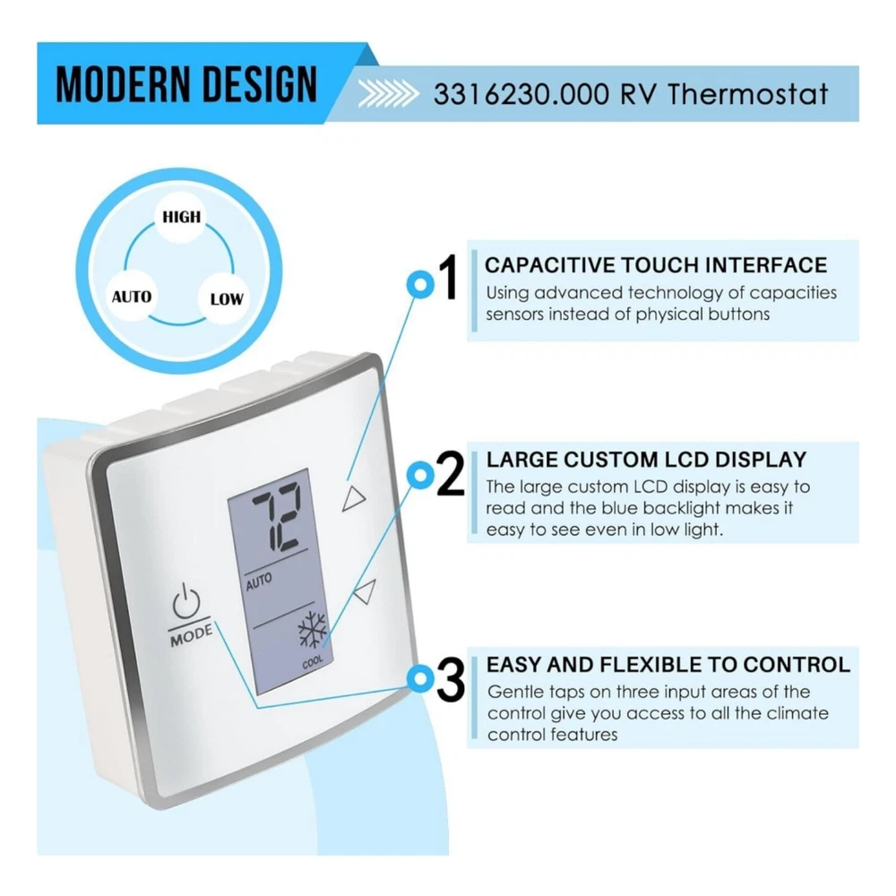 √For Dometic Single Zone LCD Touch RV AC Thermostat with Control Kit 3316230.000
