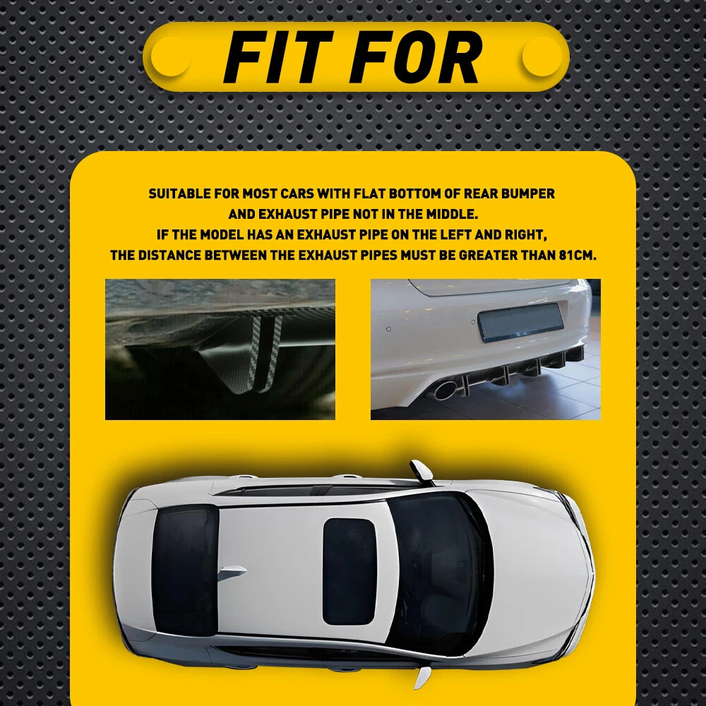 Carbon Fiber Rear Bumper Diffuser Shark Fin Spoiler Splitter Wing Trim Universal Fit for: Suitable for most cars with flat bottom of rear bumper and exhaust pipe not in the middle. If the model has an exhaust pipe on the left and right, the distance between the exhaust pipes must be greater than 81cm. Specifications: Product Material: ABS Color: Carbon fiber (as pictures show) Placement on Vehicle: Lower, rear Features: 【Reduce Air Resistance】 This shark fin diffuser designed to increase a vehicle's aerodynamic performance and improve the stability of vehicle during fast driving. For E90 E92 F30 G30 F10 Carbon Rear Bumper Diffuser 5 Fins Spoiler Lip Splitter Carbon Fiber Rear Bumper Diffuser Shark Fin Spoiler Splitter Wing Trim Universal Fit for: Suitable for most cars with flat bottom of rear bumper and exhaust pipe not in the middle. If the model has an exhaust pipe on the left and right, the distance between the exhaust pipes must be greater than 81cm. Specifications: Product Material: ABS Color: Carbon fiber (as pictures show) Placement on Vehicle: Lower, rear Features: 【Reduce Air Resistance】 This shark fin diffuser designed to increase a vehicle's aerodynamic performance and improve the stability of vehicle during fast driving. 【Excellent Appearance】 Shark fin and clean lines design with beautiful appearance to decorate your car, which gives your vehicle a more aggressive racing look. 【ABS Material】 Made of ABS material with high-quality, waterproof, durable functions and will not easy to break. 【Universal Fit】 Universal fit for most cars, please measure the size before purchasing. Note: Please confirm the size and make sure that there is enough space to install before purchasing!!! Professional installation is required. Packaging Include: 1 x Rear Shark Fin Bumper Diffuser 1 x Screws kit 1 x Double sided adhesive tape About Us: If you have any questions about our products or services, please feel free to contact us. We value your feedback,so we will strive to answer all messages within 24 hours. (excluding weekends and public holidays). Item Specifics Brand AUXITO Manufacturer Part Number Does Not Apply Placement on Vehicle Rear Lower Material ABS Color Carbon Fiber Black Surface Finish Polished Type Rear Bumper Diffuser 10 Fins Fitment Type Performance/Custom Warranty 5 Years Performance Part Yes Mounting Hardware Included Yes Attachment Method Bolts Screws Features Array Dimension AS THE PICTURE (Check image for detail) Fitment Universal fit on Under Rear bumper Installation Not Included-Modification may be required to fit properly. Item Compatibilities Reference only OE Spec or Performance/Custom Performance/Custom Package Including Rear Bumper Diffuser Fin and Screws Style Carbon Fiber Style FAQ ♥ If you have a decoding problem or any other problems, please contact us first, we will help you with it. We will reply you within 24 hours in working days. I'm a new seller, thanks a lot for your trust and convince! I will serve you with all my heart. ♥ Q1: Will this bulb fit my vehicle? A: We can match almost any vehicle to one of our bulb sizes. eBay only lets us include some vehicle fitments per listing, but if your vehicle does not show up on the compatibility table at the top of our listings, welcome you to contact us for free consulation before purchasing a product. Q2: My item has not arrived, what's taking so long? A: Sometimes items take longer than expected, especially if it’s going far or to rural area. Check with your post office to see if your item has been held up. Sometimes Royal Mail will not update a tracking number until it has arrived at its destination. If your item still don't arrive after a few days, let us know so we can double check for you and help solve it asap. Q3: My bulbs won't fit, help! A: Special bulb holder may be required. See if you can take the holder from the stock bulb. If not, let us know. The bulb size may be wrong, double check the item you received with the item you ordered. Do you have an aftermarket lighting housing? These may not be perfectly fitted for aftermarket bulbs and will require some manual modifications. Q4: Neither side lighting up? Both sides flicker, hyper flash, or work inconsistantly. A:Check the light fuses, and then check the ballast plugs to insure correct installation. If this doesn't work, there may be a voltage problem with the vehicle. You probably just need a relay or capacitor. Even though some bulbs are builtin resistors, they may still need a decoder. Pay & Ship (1). We gladly accepts payment via PayPal, We will ship your item(s) within 24 hours. (2). Before payment, please keep the consistency of Paypal address and ebay address. (3). Quantity orders are welcome! Returns (1). We offer 60 days free return policy. Please contact us within 60 days from the date you receive your order if you have any issues with the product or want return. Refund will be send after we got your resend package. (2). All returned items should be in the original packaging , return tracking information should be provided . Contact Us (1).Negative feedback will not help resolve any problems you have, please contact us via eBay messages before leaving negative feedback , our customer service will make best effort to help you with the issues. (2).We maintain high standards of excellenceand strive for 100% customer satisfaction! Feedback is very important to us. We request that you contact us immediately before you give us neutral or negative feedback, so that we can satisfactorily address your concerns. About us We're professional in car and motorcycle accessories, especially in LED bulbs. We have our own factory and R&D team. Our belief is to sell top quality items that fit your car and serve you with our heart. Anything please feel free to contact us! Our customer service is very responsibility. Come and follow us! DESCRIPTION NEW ARRIVED HOT SALE CONTACT US SAVE US Store Category Store Home Other Hot Item Rear Low