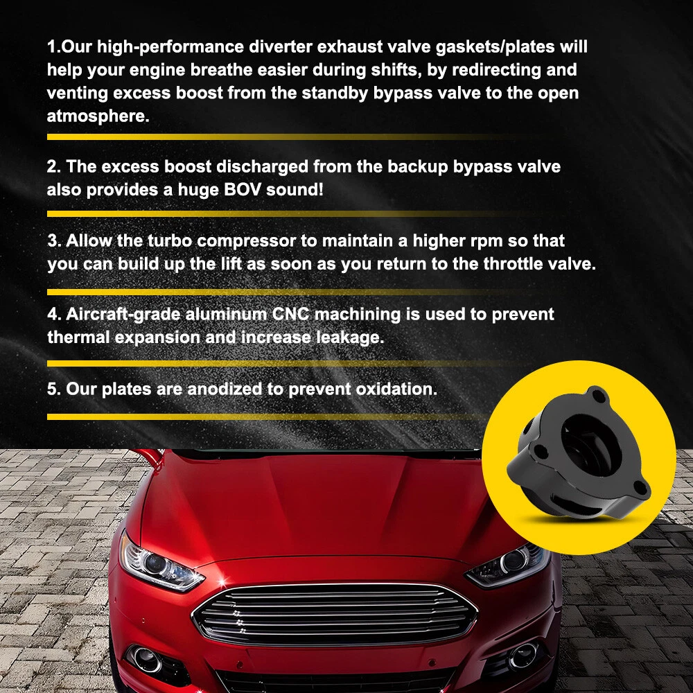 Fit for: Ford Escape 1.5L/1.6L EcoBoost models 2013-2018 Ford Fiesta ST 1.6L EcoBoost models 2014-2019 Ford Fusion 1.5L/1.6L EcoBoost models 2013-2019 Ford Fusion 2.0L EcoBoost models 2017-2019 Ford Fusion Sport 2.7L EcoBoost models 2017-2019 Ford Mustang 2.3L EcoBoost models 2015-2019 Specifications: Product Material: Aluminum Color: Black Features: *Function Blow off valve spacer/plate will help your engine breathe easier during shifts by redirecting and venting excess boost from the stock bypass valve to open atmosphere. *BOV Sound For ECOBOOST Ford Turbo Blow off Adapter BOV Valve Mustang Fusion Fiesta Escape Fit for: Ford Escape 1.5L/1.6L EcoBoost models 2013-2018 Ford Fiesta ST 1.6L EcoBoost models 2014-2019 Ford Fusion 1.5L/1.6L EcoBoost models 2013-2019 Ford Fusion 2.0L EcoBoost models 2017-2019 Ford Fusion Sport 2.7L EcoBoost models 2017-2019 Ford Mustang 2.3L EcoBoost models 2015-2019 Specifications: Product Material: Aluminum Color: Black Features: *Function Blow off valve spacer/plate will help your engine breathe easier during shifts by redirecting and venting excess boost from the stock bypass valve to open atmosphere. *BOV Sound The venting of the excess boost from the stock bypass valve also provides with the great BOV sound! Allows the turbo's compressor to maintain higher RPM so you can build boost as soon as your back on the throttle. *Perfect Fit The gasket is precisely matched to the size of the exhaust valve and the connecting interface, ensuring a tight fit of the sealing surface and avoiding leakage. *Advanced Technology Adopts aircraft-grade aluminum to prevent thermal expansion and boost leaks. *Anti-oxidation Our plates are anodized for additional protection from oxidation. Packaging Include: 1 set Blow off valve adapter with bolts Item Specifics Color Black Brand Unbranded Items Included Shift Knob Type Turbo Blow Off Valve Adapter Material Aluminum Manufacturer Part Number Does Not Apply Universal Fitment Yes Manufacturer Warranty 1 Year Packaging Include 1 set Blow off valve adapter with bolts Features Strength and long lasting durability Other Part Number Turbo Blow Off Valve Adapter with Bolts To Fit DOHC Turbocharged Engine Fit for For Ford Escape Fiesta Fusion Mustang EcoBoost Country/Region of Manufacture China Performance Part Yes Payment We accept PayPal via eBay Secure Check-Out only. Immediate payment needs to be processed for items with Add to Cart option so that any promotional discounts can be applied to your order immediately. Shipping 1 .We do everything we can to ship your orders out as soon as possible. 2. Shipping and Handling: We process orders within two business day after the payment was clear. Returns Our 30-day Satisfaction Guarantee assures our customers that they will receive all orders promptly and exactly as described. In addition, it allows customers to return new and unused products in their original factory condition for any reason within 30 days from the date of purchase. 1. All returns must be pre-approved by AUXITO and have a return merchandise authorization(RMA) number. Unauthorized returns will not be accepted. 2. Buyers are responsible for appropriate packing, returning shipping cost, insurance and returning the item in "new" condition. Used items will not be accepted for return. 3. We will replace the returning item with an identical item, issue a full store credit or a full refund. Contact Us Our Working Time:(GMT+8)Monday to Friday,9:00-18:00. For inquires and customer support, please send your email via ebay email system. All emails will be responded to within 24 hours during business days. Feedbacks 1. We appreciate your business and strived to improve our customer service and our commitment to quality. 2. We will leave a positive feedback immediately after payment is received. We appreciate a positive feedback as much as you do. 3. If for some reason there is any issue with the purchase, please contact us prior to leaving feedback, and we will be glad to work with you to have it resolved. DESCRIPTION PAYMENT SHIPPING RETURN POLICY CONTACT US Hot Item Fit For 2015-2019 Hyundai Center Light Gray Sonata Armrest Console Lid Cover USD 13.29 146PCS For Toyota RAV4 Fender Door Hood Bumper Trim Clip Retainer Fastener Kit USD 10.92 AUXITO 7440/7443 Turn LED Signal Light Bulbs Anti Hyper Flash Amber Super Bright USD 21.84 4" Red Truck Long Performance High Flow Cold Air Intake Cone Dry Filter Cotton USD 27.54 Waterproof Motorcycle Handlebar Dual USB Phone Charger Cigarette Lighter Socket USD 13.29 Hot Item Fit For 2015-2019 Hyundai Center Light Gray Sonata Armrest Console Lid Cover USD 13.29 4" Red Truck Long Performance High Flow Cold Air Intake Cone Dry Filter Cotton USD 27.54 AUXITO 7440/7443 Turn LED Signal Light Bulbs Anti Hyper Flash Amber Super Bright USD 21.84 146PCS For Toyota RAV4 Fender Door Hood Bumper Trim Clip Retainer Fastener Kit USD 10.92 Waterproof Motorcycle Handlebar Dual USB Phone Charger Cigarette Lighter Socket USD 13.29 For ECOBOOST Ford Turbo Blow off Adapter BOV Valve Mustang Fusion Fiesta Escape Fit for: Ford Escape 1.5L/1.6L EcoBoost models 2013-2018 Ford Fiesta ST 1.6L EcoBoost models 2014-2019 Ford Fusion 1.5L/1.6L EcoBoost models 2013-2019 Ford Fusion 2.0L EcoBoost models 2017-2019 Ford Fusion Sport 2.7L EcoBoost models 2017-2019 Ford Mustang 2.3L EcoBoost models 2015-2019 Specifications: Product Material: Aluminum Color: Black Features: *Function Blow off valve spacer/plate will help your engine breathe easier during shifts by redirecting and venting excess boost from the stock bypass valve to open atmosphere. *BOV Sound The venting of the excess boost from the stock bypass valve also provides with the great BOV sound! Allows the turbo's compressor to maintain higher RPM so you can build boost as soon as your back on the throttle. *Perfect Fit The gasket is precisely matched to the size of the exhaust valve and the connecting interface, ensuring a tight fit of the sealing surface and avoiding lea