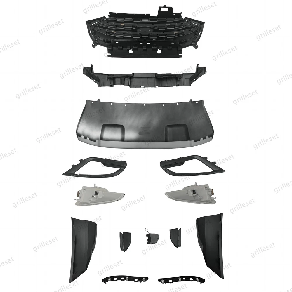 Fit for : 1 Set (14 PCS) Includes:(See more pictures for details) 1 Pc front upper black grille with chrome trim 1 Pc front bumper bracket center support 1 Pc front bumper lower center cover (silver) 2 Pcs f ront Fog lights with 2 bulb 2 Pcs fog light bezels 2 Pcs front bumper lower cover 2 Pcs front bumper lower inner cover 2 Pcs front bumper brackets 1 Pc tow hook hole cover Item OE number : GN1Z-17B968-AB;GN1Z-8419-BA;GN1Z17C897C;GN1Z-17D957-NB;GN1Z-15266-BD;GN1Z-15266-BC;GN1Z-13200-AE;GN1Z-13200-AC;GN1Z-17D957-CB;GN1Z-17D957-DB;GN1Z-17A900-AD;GN1Z-8419-AC;GN1Z-8419-BC;GN1Z-17A870-A;GN1Z-17A869-B Installation : Perfect fit direct replacement, no modifications required. Installation manual not provided; we recommend professional installation. Item's-Features : Superior quality kit 100% brand new Made from high-quality materials Excellent replacement part, no modifications needed Other parts fit for
