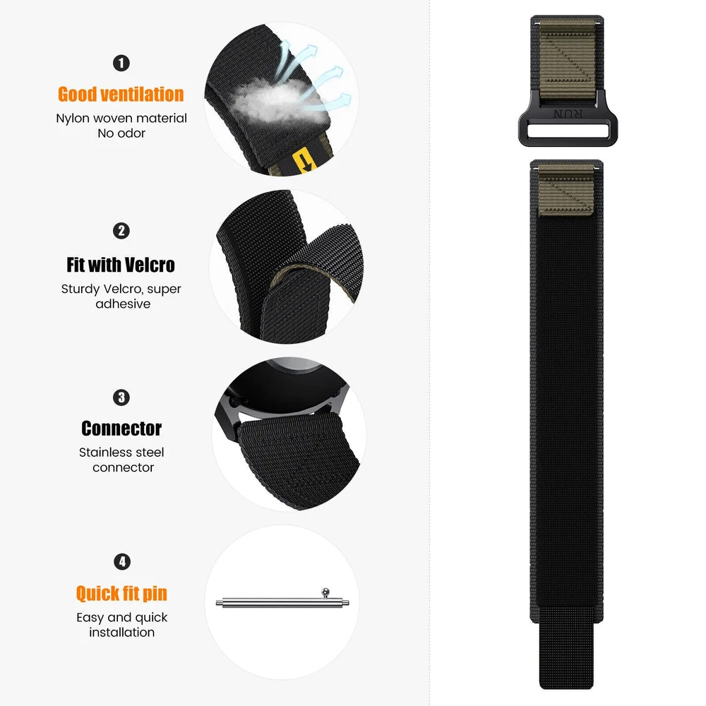 Note:This item is 1pcs watch band+1 pair watch adapters, If you buy it, you will receive a watch strap and a connector. Compatible Models: For Fitbit Versa 4 For Fitbit Sense 2 For Fitbit Versa 3 For Fitbit Sense Size Adjustable: Fit For 160mm-236mm Wrist, and quick to install with the convenient quick-release mechanism (Fit for 20mm /22mm Pin) Premium Material: Crafted from durable nylon material and high-quality stainless steel buckle, providing stable support and protection for your Samsung watch. Its lightweight design also offers more comfort and freedom to your wrist, allowing you to focus more on your adventurous journey in nature Package Include: 1 x Strap(not include the watch)