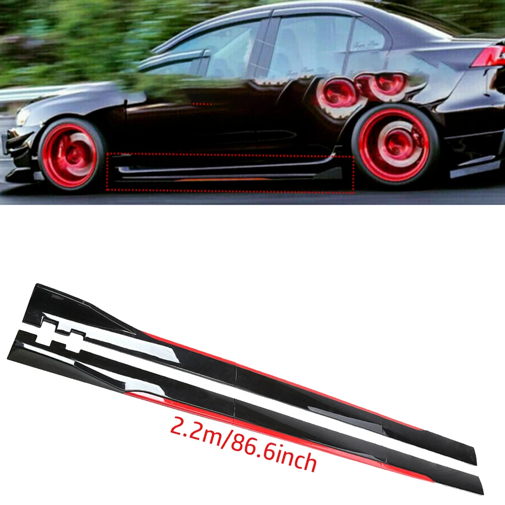 Feature: Product can be trimmed to accommodate vehicle's side skirt length Unpainted Glossy Black Surface, Ready to install Pre-drilled holes for quick installation Come with screws and double-sided tape Application of double-sided tape may provide more stability Installation instruction is not included. Professional installation is highly recommended Specification: -Type:Side Skirt Extensions -Material: Polypropylene - PP -Color:Glossy Black &Red -Length Size:2.2m/86.7inch (Make Sure this 2.2m is the size you want!!!) -Weight:2400g Fitment: Please confirm your vehicle matches the Parts compatibility chart. For Car Sedan Coupe 2 door 4 door Universal (Fit For All Models!!!) For F10/F11 520i 528i 535i 550i All Models For F32 F33 F36 4-Series 420i 430i 440i All Models For F30 F80 M3 F82 M4 320i 325i 330i 335i 340i All Models For G30 G31 5 SERIES All Models For E39 E46 E53 E90 E92 E93 E60 E61 X5 E70 X6 E71 X1 All Models For Mercedes Benz W205 W204 W203 C Class C200 C250 C300 C350 C63 AMG All Models For Mercedes Benz W211 W212 W213 E Class E220 E250 E350 E280 E300 E63 AMG All Models For Mercedes Benz CLA GLA A B Class W117 C117 W176 A45 CLS SLS All Models For Mercedes Benz AMG GTR All Models For AUDI A3 A4 A5 A6 A7 A7 A8 Q3 Q5 Q7 RS5 RS6 RS7 S3 S4 TT All Models For LEXUS IS200T IS250 IS350 ISF GS350 GS450H NX200T NX300H RC-F All Models For LEXUS ES300h ES330 ES350 CT LC LS LX All Models For Infiniti Q50 Q60 Q70 G25 G37 All Models For HONDA Civic Accord 9TH 10TH EK EG S2000 All Models For Nissan SENTRA Altima Maxima 300Z 350Z 370Z Skyline R33 GTR All Models For Toyota Corolla Camry Sienna 86 Scion FR-S All Models For Mitsubishi Lancer Evolution Eclipse All Models For Subaru WRX STI Impreza BRZ Legacy Outback All Models For VW Golf MK5 MK6 MK7 CC Passat Jetta Polo Scirocco All Models For Mazda 3 Axela 6 Atenza 2 3 5 6 CX-3 CX5 CX-4 CX-5 All Models For Mazda MX5 RX8 Miata 323 626 969 RX7 RX8 All Models For Ford Mustang Focus RS ST Fiesta Mondeo All Models Also Fit For Other models,if you are not sure,please Please contact us to confirm!!! Package Included: Pair of 2.2m Side Skirt Extensions (L&R) One set accessories