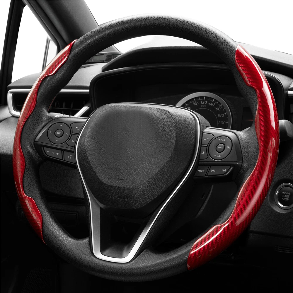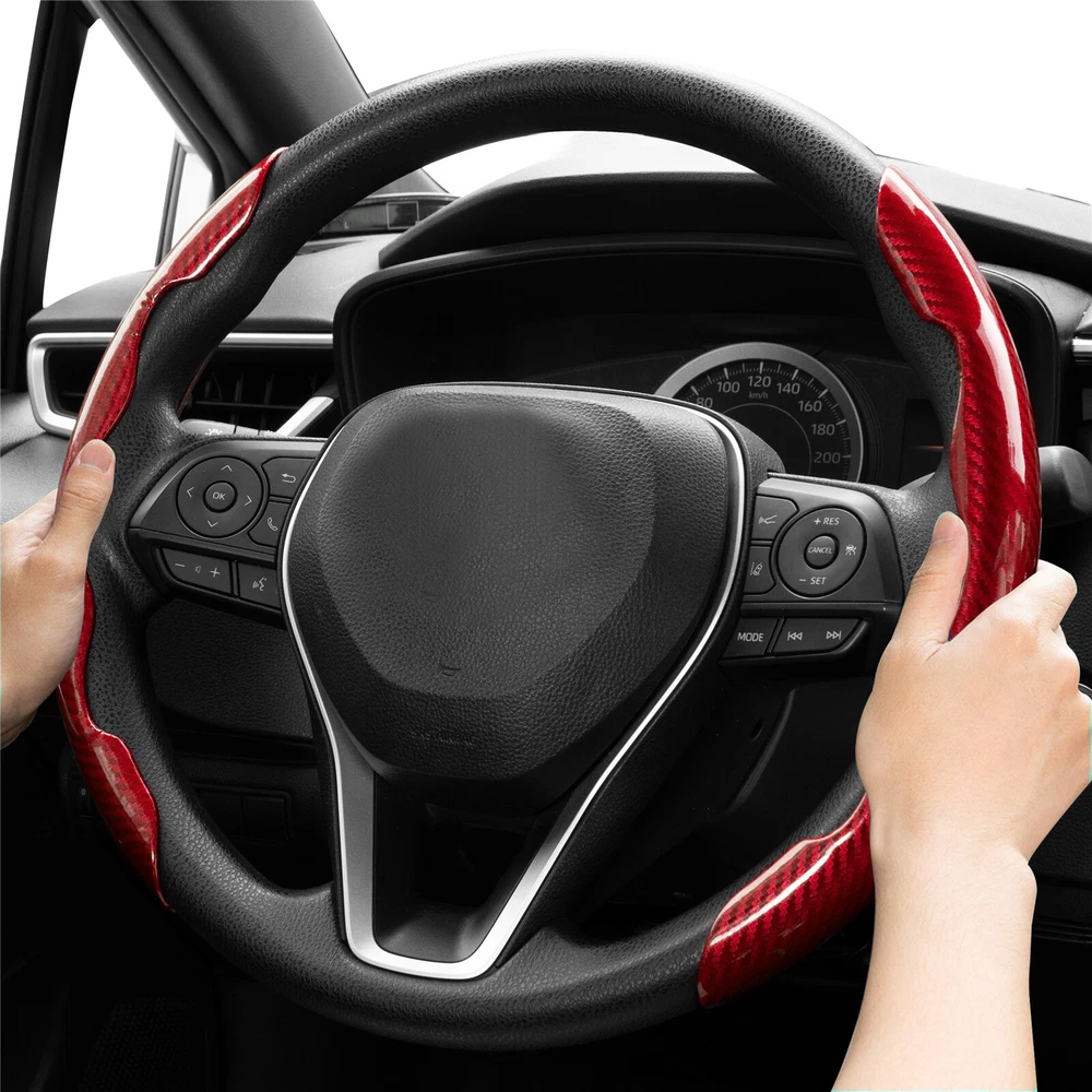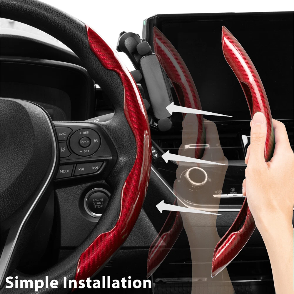 For Ford Car Steering Wheel Booster Cover Carbon Fiber Red Anti-slip Accessories Specification: Color: Carbon fiber red appearance Product material: ABS Compatibility: Suitable for most 38cm standard wheels, one left and one right, more convenient to use Vehicle position: left, right Quantity: 2 pieces Feature: -Novelty and high quality - Made of high-quality materials, durable and practical -A great helper for business trips and self-driving tours! - Enables drivers to steer more precisely when driving slowly or parking. -When turning, reduce the turning radius to help beginners and female drivers drive safely and conveniently, effectively solving driving fatigue. - Enables drivers to steer more precisely when driving slowly or parking. -Stylish and elegant design enhances car fashion sense. -Dynamic and sporty design for safer power steering! Supports steering wheel operation, convenient and smooth Excellent grip, ergonomic Easy to install/fits most cars Easy to install: The two-step installation and removal process is very quick. No tools required, no installation screws required. Package Included: 1 pair car steering wheel covers