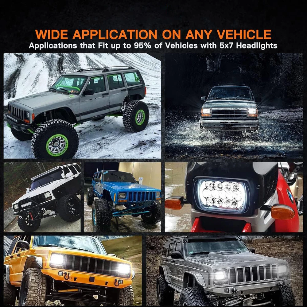 For Ford E-100 E-150 E-250 E-350 Econoline 5x7 7x6 LED Headlight High Low Beam Notes: 1.Please check whether it is fit your vehicle before purchase. 2.If your shipping address is not to US, we will ship from CN stock, items will be shipped from our warehouse in South China. 1pcs 7x6" INCH HI/LO PROJECTOR SEALED BEAM LED HEADLIGHT Specification LED chip: High Brightness LED Chips Voltage: 9-30V Power: 210W/PAIR 105W/PCS Color temperature: 6000K Lumen: 8000LM@ high beam , 6500lm@low beam Product size: 5X7" 7X6" Waterproof rating: IP68 Waterproof & Dustproof Working temperature: -40 + 85 °C Material: Die-cast aluminum housing Life: 50,000 hours Product advantages: imported lamp beads super bright, concentrated light, energy saving, humanized installation of removable card position, real materials, more protection High performance, waterproof, dustproof, anti-fog, can be used in extremely harsh environments Ingenious design, beautiful appearance, strong heat dissipation, soft light, prevent vertigo Adopting American Corey lamp beads, energy saving, environmental protection, high life, high quality Adjust the bracket for easy installation and use Package Included: 1x 105W LED Headlight Fit Model Compatitable with headlights: H6014 H6054 H5054 H6054LL 69822 6052 6053 Fit any car or truck that has 5x7/7x6 inch square headlights For Jeep Models with 5"x7"(7"x6" ) stock headlights. For 1987- 1995 Jeep Wrangler YJ For 1984 - 2001 Jeep Cherokee XJ For 1986 - 1992 Jeep Wrangler MJ Comanche For GMC Models with 5"x7"(7"x6" ) stock headlights For GMC Savana 3500 ( 1998-2002, 2004, 2007, 2009-2012) For GMC Savana 2500 ( 1998-2001, 2004, 2006, 2008, 2010-2012 ) For GMC Savana 1500 ( 1998-2001, 2003, 2005, 2007, 2009-2012 ) For GMC Safari ( 1998-2002, 2004, 2005 ) For GMC K3500 ( 1997-2000 ) For GMC K2500 Suburban ( 1997-1999 ) For GMC K2500 ( 1997-2000 ) For GMC K1500 Suburban ( 1997-1999 ) For GMC K1500 ( 1997-1999 ) For GMC C2500 Suburban ( 1997-1999 ) For GMC C2500 ( 1997-2000 ) For GMC C1500 Suburban ( 1997-1999 ) For GMC C1500 ( 1997-1999 ) For Ford Models with 5"x7"(7"x6" ) stock headlight For Ford F-550 Super Duty For Ford F-450 Super Duty For Ford F-350 Super Duty For Ford F-250 Super Duty For Ford F-250 For Ford F-150 For Ford E-450 Super Duty For Ford E-350 Super Duty For Ford E-350 Econoline Club Wagon For Ford E-350 Econoline For Ford E-350 Club Wagon For Ford E-250 For Ford E-150 Econoline Club Wagon For Ford E-150 Econoline, Ford E-150 For Chevrolet Models with 5"x7"(7"x6" ) stock headlights For Chevrolet Tahoe For Chevrolet S10 Blazer, Chevrolet S10 For Chevrolet K2500 Suburban, Chevrolet K1500 Suburban For Chevrolet Express 3500, Chevrolet Express 2500, Chevrolet Express 1500 For Chevrolet C2500 Suburban, Chevrolet C1500 Suburban For Corvette, Colorado, Chevrolet Astro For Chevy S10 Pickup , For Chevy Silverado 1985-1987 For Chevrolet C4 Corvette For Chevrolet Astro For Dodge Models with 5"x7"(7"x6" ) stock headlights: For 1990-1993 Dodge Ram Pickup For 1990-1993 Dodge W250 For 1986-1993 Dodge Van For 1981-1989 Dodge Aries For 1988-1993 Dodge B150 / B250 / B350 For 1986-1987 Dodge Charger For 1986-1989 Dodge D100 For 1981-1993 Dodge D150 / D250 / D350 For 1981-1993 Dodge Ramcharger etc. For Dodge Ram 50, Dodge Omni, Dodge Colt, Dodge Caravan, Dodge Aries For Toyota Models with 5"x7"(7"x6" ) stock headlights: For 1984-1991 Toyota 4Runner For 1982-1993 Toyota Celica For 1981-1992 Toyota Corolla For 1985-1995 Toyota MR2 For 1982-1995 Toyota Pickup For Toyota Starlet/Supra/Tacoma/Tercel ect. For Nissan Models with 5"x7"(7"x6" ) stock headlights: For Nissan 200SX / 210 / 240SX / 300ZX / 310 / D21 / NX / Pickup ect. For Peterbilt / Freightliner Models with 5"x7"(7"x6" ) stock headlights: For 1998-2007 Peterbilt 357 / 378 / 379 / 385 For 1995-2005 Freightliner FL50 For 1991-2004 Freightliner FL60 For 1991-2005 Freightliner FL70 FL80 For 1994-2003 Freightliner FL106 For 1996-2008 Freightliner FS65 etc. For Other Models with 5"x7"(7"x6" ) stock headlights: For Mazda B2000 /B2200 / B2600 For Mercedes Benz 300CD / 380SEL For Buick Century / Reatta / Skylawk For Oldsmobile Cutlass Calais For Pontiac Firebird / Grand Am / For Plymouth Arrow Pickup / Colt / Horizon etc. For 1995-2001 International Harvester 3800 For 1995-2003 International Harvester 4700 / 4800 / 8100 For 1995-2004 International Harvester 4900 For International Harvester 9200 SBA For International Harvester 9400i SBA For International Harvester 9900i SFA For International Harvester 9900ix SFA Applications: They are direct replacements for H6054, H5054, H6054L. Wide applications that fit up to 95% of vehicles, including sedans, light SUVs and trucks, motorcycles, and off-road vehicles. These are also direct fit, plug and play full LED headlight upgrade for 1986~1995 Jeep Wrangler YJ and 1984~2001 Jeep Cherokee XJ,and any other car with about 5 x7 inch headlight. Complete fitments please view pictures showed below the description. Notes: 1.Please check whether it is fit your vehicle before purchase. 2.If your shipping address is not to US, we will ship from CN stock, items will be shipped from our warehouse in South China. 1pcs 7x6" INCH HI/LO PROJECTOR SEALED BEAM LED HEADLIGHT Specification LED chip: High Brightness LED Chips Voltage: 9-30V Power: 210W/PAIR 105W/PCS Color temperature: 6000K Lumen: 8000LM@ high beam , 6500lm@low beam Product size: 5X7" 7X6" Waterproof rating: IP68 Waterproof & Dustproof Working temperature: -40 + 85 °C Material: Die-cast aluminum housing Life: 50,000 hours Product advantages: imported lamp beads super bright, concentrated light, energy saving, humanized installation of removable card position, real materials, more protection High performance, waterproof, dustproof, anti-fog, can be used in extremely harsh environments Ingenious design, beautiful appearance, strong heat dissipation, soft light, prevent vertigo Adopting American Corey lamp beads, energy saving, environmental protection, high life, high 