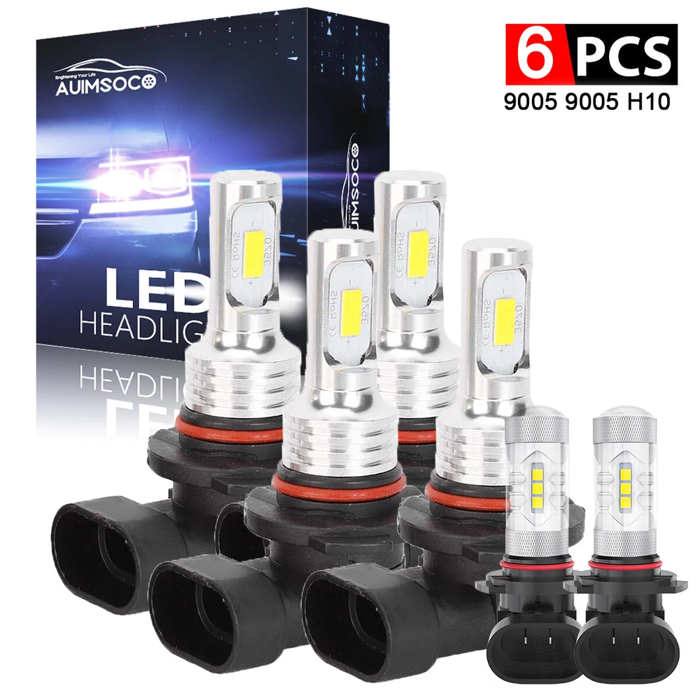AUIMSOCO Authorized Store on eBay 3570 Series Cold White LED Headlight Bulb Conversion Kit 1 x Pair 9005 Headlight Replace Halogen High Beam 1 x Pair 9006 Headlight Replace Halogen Low Beam LED Headlight Bulb: Bulb Size: 9005 9006 Plug Type: High Beam / Low Beam Power: 40W/per pair Luminous Flux: 4000LM/per pair Operating Voltage: DC 9-32V(fit 12V,24V vehicles) Color Temperature: White 6000K IP68 rated water and dust seal,360 degree beam angle Material: Aviation 6063 aluminum profile Operating Temperature: -40-80 degree Celsius Fanless: yes, no noise Over 50000hrs lifetime Warranty: 1 years warranty Usage: headlight og Light Specification: Bulb Size: H10/9145 Usage: LED Fog Light Voltage: DC 12V-24V Power: 30W/per pair Lumen: 3000LM/per pair Color Temperature: 6000K LED Chips: AUIMSOCO customized LED chips Material: Heatsink aluminum shell Fanless: yes, no noise Lifespan: 50,000 hours Waterproof Rate: IP67 Warranty: 1 years warranty Color Temperature: 6000K Clear White Lifespan: 50,000 working hours, stable quality, long service life Aluminum heat sink design,built-in automotive circuit to prevent electronic interference. The model is the same as factory light, no need to change car wire rute,just Plug and Play, NO modification required Energy saving, environmental protection, Stable performance, through strict test, Use safer driving in the car Warm Tips: This model comes in multiple models, If you are not sure about the bulb size, please send us your vehicles' make/model/year via ebay message to confirm with us before purchasing. Any questions please feel free to contact us, we will help you solve it. Package include: 6x LED Headlight Bulbs 9005 (High Beam) + 9006 (Low Beam) + H10/9145 (Fog Light) Randomly send new and old packaging boxes