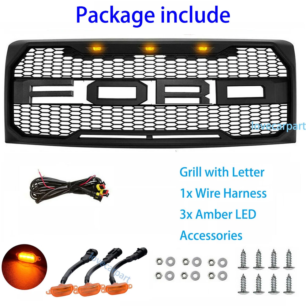 Product Description Specification: Color: Matte Black Material: Durbale ABS Plastic Part F&R Letters are detachable.You coud paint the grille in color you need. Feature: 1.Products: This grill fit for f150 2009, 2010, 2011, 2012, 2013, 2014 Ford F150. 2.Fitment:Fits for 2009-2014 Ford F150 raptor grill comes with three LED lights and FORD logo letters. 3.Features: The grill is made of ABS plastic that is lightweight and durable, giving your vehicle full protection on-road and off-road. Provides better airflow to the radiator to help the cooling process better. 4.Color: Luxury matte black front grill add more aggressive and rugged style to your front end. 5.Easy to Install: This grill replacement is very easy to install, you just unscrew the old one, and replace it with the new grill. The pre-drilled hole is matched with 2009-2014 Ford F150. All needed wiring harness of LED Accents are provided, so simply splices into existing factory headlight harness. Installation can be completed with only essential hand tools. Package Include: 1x Front Grille 1x F&RLetters 3x Amber LED Lights 1x Wire Harness About Us Payment Terms Returns Contact Us Figocarpart is one of US’s fastest growing online retailersWith our best effort, we are now trusted by more than 100,000 customers nationwide. We are dedicated to offering you an unrivalled choice of products with unbeatable low price and best quality. We ONLY accept Paypal. We ship to your eBay or Paypal address. Please make sure your eBay ID、contact and Paypal address is correct before you pay. Thank you! 1.If item is defective and not working on arrival, please contact us within 7 days of receiving the defective for repair or refund. Item may be returned within 30 days of purchase upon your receipt.All items returned must contain all original packaging materials. 2.This item have 1Year warranty. We offer free repairing service within 6 months from the date of purchased. If damaged is caused by undue wear and tear, dirt, misused, improper installation/operation, accident or repaired by unauthorized person, the warranty becomes void. 3.All returns must have prior authorization. Please message us firstly if you have any problem. Please contact us before you return the item. 4.Buyer is responsible for the return postage. If you ask for a refund during valid period, we will offer you a refund without postage charges. Shipping and handling charges, insurance are not refundable in any case. We are only responsible for once re-sending expense for replacement due to defects. Please contact us firstly if you have any problem. * We give you a 30 days money-back guarantee to return any items purchased, no questions asked, hassle-free. * You can return for refund or exchange same product or different product (difference of price will be charged) within 30 days after you receive the item. * Any returning or exchanging items must be in the original package and new condition. We reserve rights to refuse refit or damaged items (caused by buyer) for return and exchange. * No returns will be accepted if you contacted us after 30 days of receiving the item. * Return fee: Buyers are responsible to pay the return shipping fee. 15% restocking fee on total price will be charged and be deducted from the refund total. * Exchange fee: No restocking fee will be charged, however Buyers are responsible to pay the return shipping fee and exchange reshipping fee, depending on the weight of merchandise. * Email our Customer Service Department first before return the item back. Please specify your item number, your eBay ID, and the reason for the return. Click here to contact us directly. Any questions, pls contact us via ebay message or email us.We will reply your message within 48 hours. If you do not receive our reply within 48 hours, pls post a message again because sometimes our message system may block some emails. About Us Figocarpart is one of US’s fastest growing online retailersWith our best effort, we are now trusted by more than 100,000 customers nationwide. We are dedicated to offering you an unrivalled choice of products with unbeatable low price and best quality. Payment We ONLY accept Paypal. We ship to your eBay or Paypal address. Please make sure your eBay ID、contact and Paypal address is correct before you pay. Thank you! Terms 1.If item is defective and not working on arrival, please contact us within 7 days of receiving the defective for repair or refund. Item may be returned within 30 days of purchase upon your receipt.All items returned must contain all original packaging materials. 2.This item have 1Year warranty. We offer free repairing service within 6 months from the date of purchased. If damaged is caused by undue wear and tear, dirt, misused, improper installation/operation, accident or repaired by unauthorized person, the warranty becomes void. 3.All returns must have prior authorization. Please message us firstly if you have any problem. Please contact us before you return the item. 4.Buyer is responsible for the return postage. If you ask for a refund during valid period, we will offer you a refund without postage charges. Shipping and handling charges, insurance are not refundable in any case. We are only responsible for once re-sending expense for replacement due to defects. Returns Please contact us firstly if you have any problem. * We give you a 30 days money-back guarantee to return any items purchased, no questions asked, hassle-free. * You can return for refund or exchange same product or different product (difference of price will be charged) within 30 days after you receive the item. * Any returning or exchanging items must be in the original package and new condition. We reserve rights to refuse refit or damaged items (caused by buyer) for return and exchange. * No returns will be accepted if you contacted us after 30 days of receiving the item. * Return fee: Buyers are responsible to pay the return shipping fee. 15% restocking fee on t