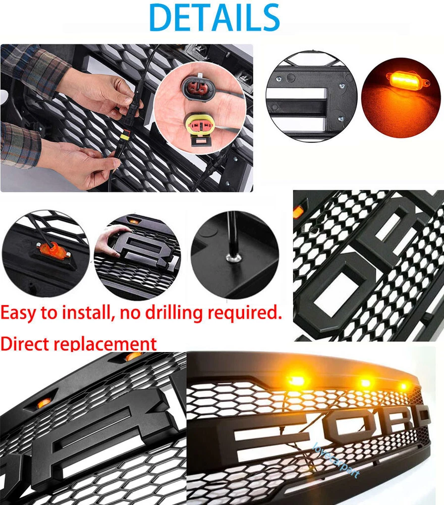 Product Description Specification: Color: Matte black Material: ABS Plastic Type:Front Grille Grill with 4 letter. Need to buy letter from other seller No drilling and cutting required. Feature: 1. High quality replacement ABS material, superior craftsmanship and durability. Each grille ensures good looks with a clean surface, you can enhance the style or function of the grille. 2. Prevent foreign material from entering the air intake and damaging the engine. 3. Provides better airflow to the radiator to help the cooling process better. 4.EASY INSTALLATION: Just unscrew your old grill and screw this one in with existing bolts. The pre-drilled holes match up your F250 and the installation is no sweat. Tips: installation video can be found by searching “F250 grill 2008 install” on YouTube. Package Include: 1x Front Grille 3x Amber LED Lights 1x Wire Harness About Us Payment Terms Returns Contact Us Figocarpart is one of US’s fastest growing online retailersWith our best effort, we are now trusted by more than 100,000 customers nationwide. We are dedicated to offering you an unrivalled choice of products with unbeatable low price and best quality. We ONLY accept Paypal. We ship to your eBay or Paypal address. Please make sure your eBay ID、contact and Paypal address is correct before you pay. Thank you! 1.If item is defective and not working on arrival, please contact us within 7 days of receiving the defective for repair or refund. Item may be returned within 30 days of purchase upon your receipt.All items returned must contain all original packaging materials. 2.This item have 1Year warranty. We offer free repairing service within 6 months from the date of purchased. If damaged is caused by undue wear and tear, dirt, misused, improper installation/operation, accident or repaired by unauthorized person, the warranty becomes void. 3.All returns must have prior authorization. Please message us firstly if you have any problem. Please contact us before you return the item. 4.Buyer is responsible for the return postage. If you ask for a refund during valid period, we will offer you a refund without postage charges. Shipping and handling charges, insurance are not refundable in any case. We are only responsible for once re-sending expense for replacement due to defects. Please contact us firstly if you have any problem. * We give you a 30 days money-back guarantee to return any items purchased, no questions asked, hassle-free. * You can return for refund or exchange same product or different product (difference of price will be charged) within 30 days after you receive the item. * Any returning or exchanging items must be in the original package and new condition. We reserve rights to refuse refit or damaged items (caused by buyer) for return and exchange. * No returns will be accepted if you contacted us after 30 days of receiving the item. * Return fee: Buyers are responsible to pay the return shipping fee. 15% restocking fee on total price will be charged and be deducted from the refund total. * Exchange fee: No restocking fee will be charged, however Buyers are responsible to pay the return shipping fee and exchange reshipping fee, depending on the weight of merchandise. * Email our Customer Service Department first before return the item back. Please specify your item number, your eBay ID, and the reason for the return. Click here to contact us directly. Any questions, pls contact us via ebay message or email us.We will reply your message within 48 hours. If you do not receive our reply within 48 hours, pls post a message again because sometimes our message system may block some emails. About Us Figocarpart is one of US’s fastest growing online retailersWith our best effort, we are now trusted by more than 100,000 customers nationwide. We are dedicated to offering you an unrivalled choice of products with unbeatable low price and best quality. Payment We ONLY accept Paypal. We ship to your eBay or Paypal address. Please make sure your eBay ID、contact and Paypal address is correct before you pay. Thank you! Terms 1.If item is defective and not working on arrival, please contact us within 7 days of receiving the defective for repair or refund. Item may be returned within 30 days of purchase upon your receipt.All items returned must contain all original packaging materials. 2.This item have 1Year warranty. We offer free repairing service within 6 months from the date of purchased. If damaged is caused by undue wear and tear, dirt, misused, improper installation/operation, accident or repaired by unauthorized person, the warranty becomes void. 3.All returns must have prior authorization. Please message us firstly if you have any problem. Please contact us before you return the item. 4.Buyer is responsible for the return postage. If you ask for a refund during valid period, we will offer you a refund without postage charges. Shipping and handling charges, insurance are not refundable in any case. We are only responsible for once re-sending expense for replacement due to defects. Returns Please contact us firstly if you have any problem. * We give you a 30 days money-back guarantee to return any items purchased, no questions asked, hassle-free. * You can return for refund or exchange same product or different product (difference of price will be charged) within 30 days after you receive the item. * Any returning or exchanging items must be in the original package and new condition. We reserve rights to refuse refit or damaged items (caused by buyer) for return and exchange. * No returns will be accepted if you contacted us after 30 days of receiving the item. * Return fee: Buyers are responsible to pay the return shipping fee. 15% restocking fee on total price will be charged and be deducted from the refund total. * Exchange fee: No restocking fee will be charged, however Buyers are responsible to pay the return shipping fee and exchange reshipping fee, depending on the weight of merch