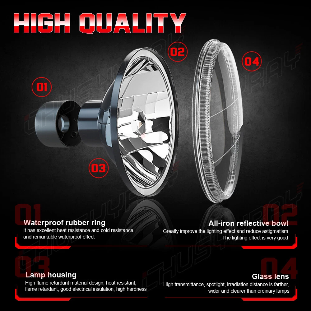 7" Inch Round Diamond Crystal Clear Glass Lens / Headlight Conversion Kit contains everything you need to upgrade your headlights to the newest LED headlight technology while keeping that classic look! -Note: Without mounting bracket, some models may need mounting bracket! -Made with High Quality Glass Lenses - NOT cheap plastic! -Housing has Removable bulb sockets for you to install the new LED bulbs! -Direct Plug & Play design (certain vehicles will require slight modification) -Professional Installation is highly recommended -Warranty 5 years Pair (2 Bulbs Right And Left) 7" Inch Diamond Crystal Clear Semi Sealed Beam Glass Lens Housing Headlights. This Pair Of Headlights Includes 70W Super White LED H4 Light Bulbs. These Headlights Have A Clean Custom Look But Fit Into The Stock Buckets And Plug Into The Stock Wiring Without Modification. These Light Up 500 Percent Brighter And Whiter Than The Standard Stock Sealed Beam Incandescent Headlight Bulbs. These Have The Original 3 Prong Plug Design On The Back So They Will Plug Directly Into The Original Wiring Harness. These Will Fit Any Car Or Truck That Has 2 Round Glass Headlights That Are 7" Inches. H4 LED Bulbs Specifications -Color: 6000K Cool White -Power Consumption: 70 Watt -Luminosity: 10,000 LM -360 Degree / P2 Series CSP Chip Perfect Beam Angle -H4 - Dual Beam Function (You will have HIGH AND LOW!) -500% Brighter than Stock Halogen -Built in IC Circuit (Current Regulator)-Prevents LED Damage From Voltage Variations & Spikes. -Lifespan: 50,000 Hours -Operating Voltage: DC 12V / 24V -Amperage: 1.9A - 2.9A -Maintenance free, Waterproof IP67, Shockproof -Warranty 5 years Contents: - 2x Headlight Housings - 2x H4 LED Bulbs (Hi/Lo Dual Beam) On Dec 17, 2024 at 17:08:30 PST, seller added the following information: