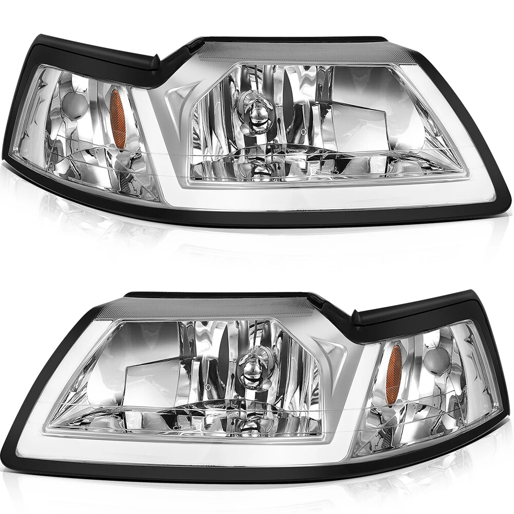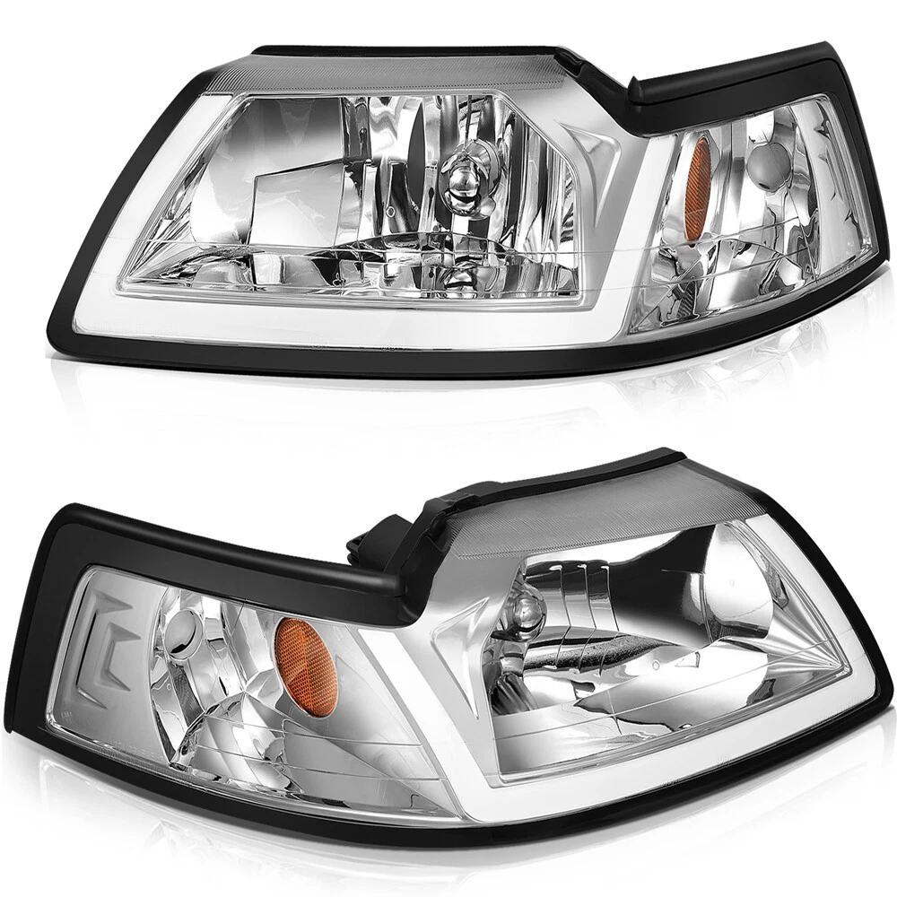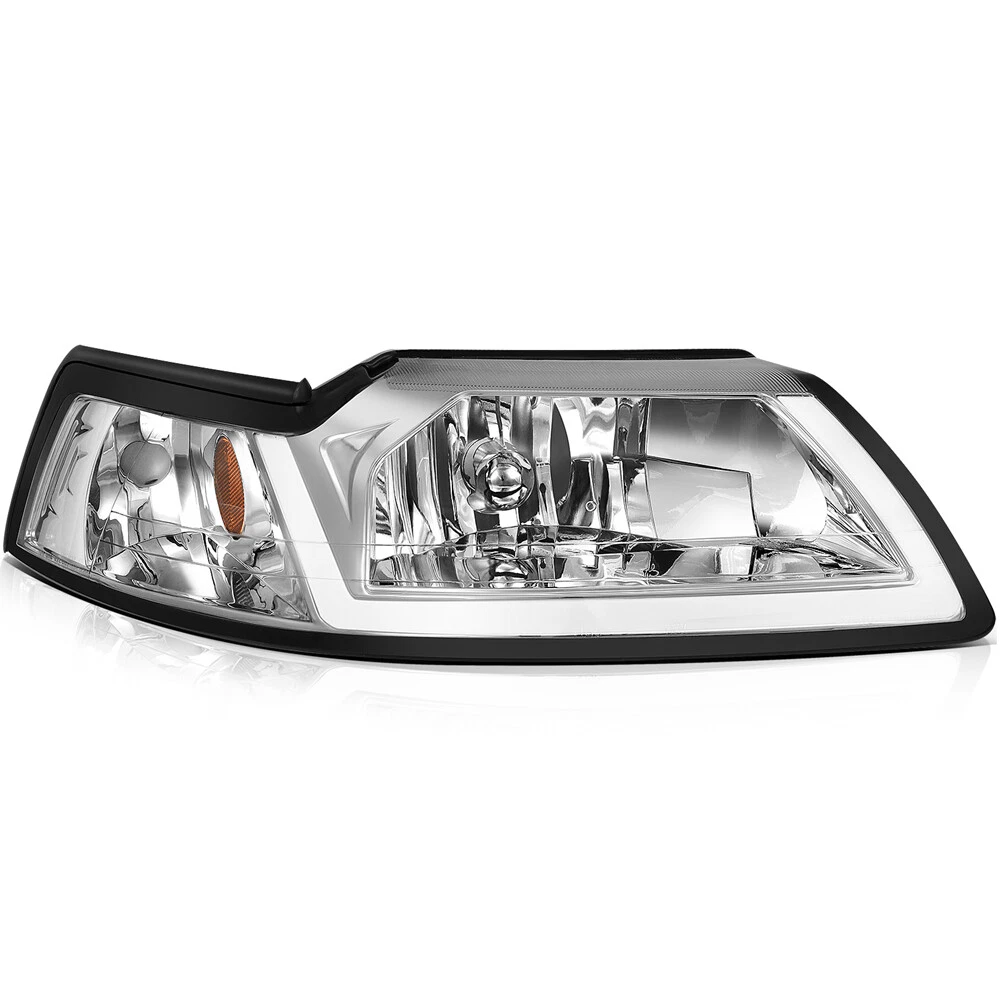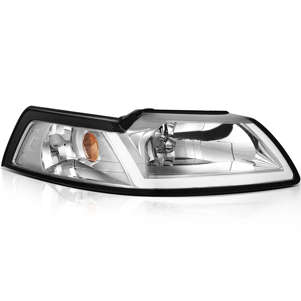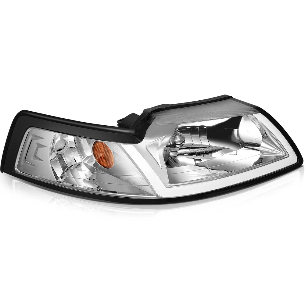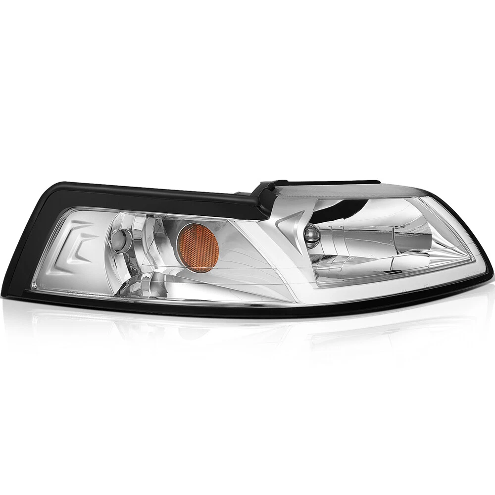 Compatibility should be checked and confirmed before placing order! Steps of confirming the compatibilities: Manage " My Garage ", and chose the right one when placing order; Or chose the " Year / Make / Model / Trim / Engine " of your vehicle on the compatible chart; Or Contact us if you have any question in confirming the compatibility, to make sure you will get the right and compatible item. Product Detail: Lens Color:Clear Housing Color:Chrome High Beam: HB5 (9007) Low Beam: HB5 (9007) (Bulbs Not Included) Plug & Play Installation:No Additional Modification or Drilling COMPATIBLE WITH: 1999-2004 FORD MUSTANG Package Including: Headlights Pair Left+Right Side (Passenger & Driver Side) EASY TO INSTALL: 1.Undo the screws, clips, or retainer springs that hold the headlight in place. 2.Disconnect the wiring from the assembly. 3.Detach the headlight from the vehicle to replace it with a new one. 4.Fit in the new headlight assembly. 5.Fix the new headlight into place and make sure that the screws, clips, or retainer springs are sealed. 6.Reconnect the wiring that was unplugged from the assembly. 7.Put back the grille and other components that you removed. Seal them back into place. 8.Test the new assembly. You will get what you see in the picture showed. About US: We are committed to making the best auto-parts products and providing you with better services. So if you have any quesiton or problem, please fell free to contact us about that. Payment: Paypal and other methods which are acceptalbe by eBay. Shipping: All item will be packed with well condition in box or envelope, we make sure the item is in good protection, also please check all the item when you get the package. Product will be shipped within 2 business days after full payment is received and verified. All domestic orders will be shipped via USPS, UPS or FedEx from our US warehouse and usually arrives to your door in about 2-7 business days. Returns & Refund: 30-day free return will be provided. -Please note that the situations below will not be incounted: -Ordered by mistake. -Don't like it. -Duplicated orders. -Damaged product during installation. Contact Us: Any quesiton or problem, do contact us please. We are always online to answer. WARNING: Cancer and Reproductive Harm - www.P65Warnings.ca.gov. End Save for Web Slices