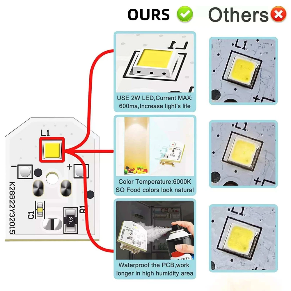 Product Description For GE Refrigerator 5x LED Light Board Replacement PS4704284 AP6261806 Features: Seamless replacement, quick return to bright: Designed to solve the problem for GE refrigerator LED lights flashing, dimming or not bright, perfectly match the original light slot, no complex tools or expertise is required, and the refrigerator is immediately bright after quick replacement. Wide compatibility, model worry-free: Suitable for a variety of refrigerator models, showing excellent compatibility, to ensure that each refrigerator can find the right solution, one replacement, long-term peace of mind. Bright energy saving, economic choice: The use of high-efficiency LED chips, significantly improve brightness, while greatly reducing energy consumption, long-term use for family savings, is an economical and practical lighting upgrade. Durable, quality assurance: After careful design and rigorous testing, LED light replacement parts are durable and stable, and the center reinforcement design effectively prevents damage, providing lasting light protection for the refrigerator. Waterproof and moisture-proof, safety guard: Pay attention to safety performance, LED light replacement parts after waterproof treatment, stable work in humid environment, prevent short circuit and other safety hazards, create a safe use environment. Easy DIY, universal solution: The replacement kit is simple in design, and users can quickly replace their fault lights without relying on professional help. In just a few simple steps, you can restore the interior of your refrigerator and enjoy convenient DIY fun. Specifications: Material: PCB+LED Size: 0.86*0.66in / 2.2*1.7cm Quantity: 5pcs OEM Part Numbers: WR55X25754, WR55X11132 Replacement Part Numbers: WR55X30602, WR55X26486, PS4704284, 3033142, EAP12172918, AP6261806, PS12172918, AP5646375 Compatible Brand: For GE Compatible Models: GFE26GGHCBB, GFE26GGHCWW, GFE26GGHDBB, GFE26GGHDWW, GFE26GGHEBB, GFE26GGHEWW, GFE26GGHFBB, GFE26GGHFWW, GFE26GGHGBB, GFE26GGHGWW, GFE26GGKBBB, GFE26GGKBWW, GFE26GMHBES, GFE26GMHCES, GFE26GMHDES, GFE26GMHEES, GFE26GMHGES, GFE26GMKBES, GFE26GSHBSS, GFE26GSHCSS, GFE26GSHDSS, GFE26GSHESS, GFE26GSHFSS, GFE26GSHGSS, GFE26GSKBSS, CFE28TP3MBD1, CFE28TP3MBW2, CFE28TP4MBW2, CFE28TSHBSS, CFE28TSHCSS, CFE28TSHDSS, CFE28TSHESS, CFE28TSHFSS, CFE28TSHGSS, CFE28TSHISS, CFE28TSHOSS, CFE28UELBDS, CFE28UP3MBD1, DFE28JSKGSS, GFE26GGKGWW, GFE28HSKFSS, GFE28GMKGES, GFE28GSKHSS, GFE26GSKHSS, GFE26GMKGES, GFD28GSLCSS, DFE28JBLCTS, DFE28JBLDTS, DFE28JELCDS, DFE28JELDDS, DFE28JMKGES, DFE28JMKHES, DFE28JSKHSS, GFD28GBLCTS, GFD28GBLDTS, GFD28GELCDS, GFD28GELDDS, GFD28GMLCES, GFD28GMLDES, GFD28GSLDSS, etc. Package Included: 5 x LED Light Board Payment Shipping Returns Contact Us We accept all verified payments from ebay. Orders will be shipped after receiving cleared payment. Payment due within 7 days after auction ends and for buy it now listings. We ship most of our orders within 24 hours, and may up to 48 hours. If you want faster shipping way. Please contact us before making payment. Sometimes due to problems with our transportation company system, your shipping information may be delayed to update. We recommend that you try again after 3-4 days. If you still haven't checked the shipping information, you can contact us by ebay message. Always believe we can figure things out with communication, if it comes to return, the pacakge must be intact and the same as you receive. If you have any questions, please feel free to email our service specialists 24 Hours a Day, 7 Days a Week. We will reply you ASAP. Return/refund is accepted within 30 days after the buyer receives the item. NO exchange will be accepted after 30 days from the date when the item is received. Please contact us first before returning your product!!! If you have any questions, our Customer Service staffs welcome you to email us. We strive to answer all questions and resolve any problems as quickly as possible. You can contact us 7*24, we will reply at the first time, and we will surely solve your problems. Note: 1.We try our best to reply to your emails as soon as possible, however, due to high volume of daily incoming emails and time zone difference, we may not be able to reply your emails immediately. Please allow 1 business days for us to response. If you do not receive any reply from us, please check your email ensuring your mailbox has not reached full size. 2.Due to some ISP SPAM filter settings, you may not be able to receive our replies; if you have problems receiving our emails, you may need to use a different email account to contact us. 3.Please give us the opportunity to resolve any problem. We understand the concerns and frustrations you might have, and will try our best to resolve the issues. Please email us before leaving any negative feedback or open any dispute on PayPal. 4.We care about our valued customers, and will always try to help you. So if you have any problems, please e-mail us immediately. Payment We accept all verified payments from ebay. Orders will be shipped after receiving cleared payment. Payment due within 7 days after auction ends and for buy it now listings. Shipping We ship most of our orders within 24 hours, and may up to 48 hours. If you want faster shipping way. Please contact us before making payment. Sometimes due to problems with our transportation company system, your shipping information may be delayed to update. We recommend that you try again after 3-4 days. If you still haven't checked the shipping information, you can contact us by ebay message. Returns Always believe we can figure things out with communication, if it comes to return, the pacakge must be intact and the same as you receive. If you have any questions, please feel free to email our service specialists 24 Hours a Day, 7 Days a Week. We will reply you ASAP. Return/refund is accepted within 30 days after the buyer receives the item. NO exchange will be accepted after 30 days from th