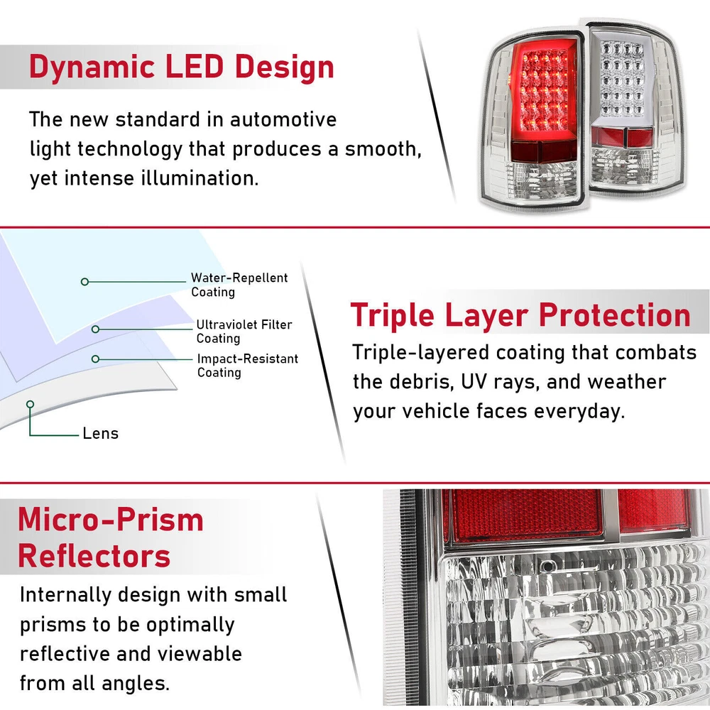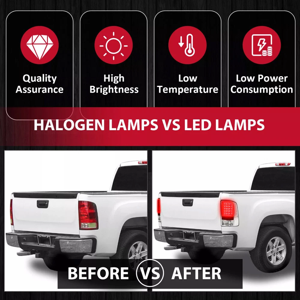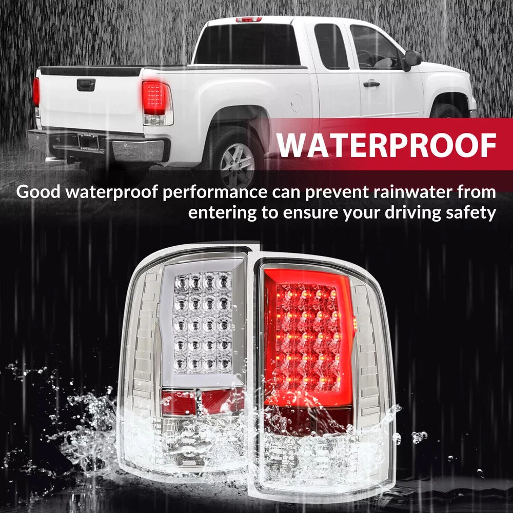 For GMC Sierra 1500 2500HD 3500HD 2007-2014 Tail Lights Rear Brake LED Lamp 2PCS Fitment: For GMC Sierra 1500 2007-2013 For GMC Sierra 2500 HD 2007-2014 For GMC Sierra 3500 HD 2007-2014 Not Compatible on 07 Sierra Classic Models Not Compatible on 3500 HD Dually Models Specification : Condition: 100% Brand New Color: Clear Lens+Chrome Housing Material: Plastic [Tail Light] LED Function: Brake/ Parking/ Turn Signal Light Source Type: LED Replace For: GM2800208, GM2801208, GM2800254, GM2801254, 25958484, 25958485 Features: [Tech-Leading LED] Our Lights have Tech-Leading LED Which Illuminate Up To 10x Faster Than Incandescent Bulbs Alerting Trailing Drivers Sooner for Added Safety While Bringing a New Modern Look to your Vehicle with Brighter, More Efficient Lighting [Persistent Lighting] LED Lighting / LED Light Bar; Designed with Advanced LED Technology to be Visually Striking while Providing Long Lasting Light Output Performan [PLUG & PLAY] Insert the plug and fix it on the body with the factory bolts. [Excellent material] The product is made of high-quality plastic, with corrosion resistance and durability [Waterproof] The product has good sealing performance, and will not enter the dust of the lamp shade after long-term use, ensuring safety Package Includes : 1 X Pair of Tail Lights (Left and Right Side) Installation Instructions Included Shipping: All items will be shipped out in 1 business day, no expedited service available. We ship our items to USA only(Does NOT include Hawaii, Alaska or Puerto Rico, PO Boxes/APO's). Shipping Notes: We use multiple warehouses and will select the nearest warehouse for delivery according to your order address and our inventory, Thank you for your cooperation. Contact us: Any Questions, Just feel free to contact us on eBay. We will reply you in 24 hours. On Dec 22, 2024 at 19:58:37 PST, seller added the following information: On Jan 10, 2025 at 19:17:41 PST, seller added the following information: