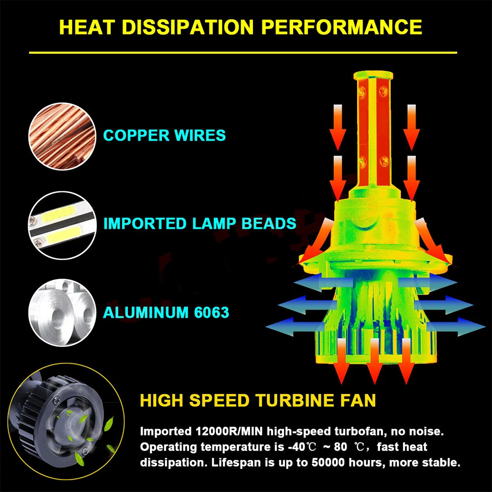 Note: ● Compatible List can not show up all Car model. Please confirm whether the item matches your car before you purchase. ● You also can send us your car informations (Maker, Model, Year), so we can find the right bulb size for you. This listing compatible with 2 pairs (9008/H13 + 5202/H16)6000K white super bright LED headlight high/low dual beam + fog light bulbs conversion kit. Headlight Bulbs Specifications: ● Bulb Socket: 9008 H13 ● LED Quantity(each bulb): 4pcs* COB chips (4-sides), 360 degree clear beam no blind zone ● Technology: Bulit in driver & cooling fan ● Connector(s): plug and play ● Operating Voltage: DC 9V ~ 32V , Fit for 12V & 24V vehicle. ● Wattage: 50W per bulb ● Luminous Flux: 20000 LM per set ● Color temperature: 6000K ● Light color: Cool White ● Material: Aviation 6063 aluminum profile ● Beam Angle: 360 degree ● Operating Temperature: -40 - +85 degree Celsius ● Waterproof Rate: IP68 rated Waterproof and dust seal, works well even in extreme weather ● Lifespan: over 50000 hours life time, stable quality and long service life ● Application: headlight high/low beam ● Built-in constant current CPU,instant full brightness without start-up relay ● Easy plug and play design, no resistor or modification needed. ● The bulb body size of our bulb is smaller than other 4-sided LED bulbs on the market, no need to worry about interference with the dust cover. Two-way heat dissipation channel: 1. All-in-one aluminum profile as heat conduction system, 360 degree heat radiating. 2.High speed mute fan(12000R/min), high air flow for faster cooling rate. Fog Light Bulbs Specifications: ● Bulb Size: 5202 H16 ● Color: 6000K Xenon White ● LED Quantiy: 10pcs Per Bulb ● LED Type: SMD LED High Power Chip ● Beam Type: 360° Beam Angle ● Operating Voltage: DC 9V ~ 32V , Fit for 12V & 24V vehicle. ● High Power: 50W/bulb ● Luminous Flux: 3200LM per set ● Material: Aaluminum profile and virtually unbreakable PMMA Lens ● Long-lasting Lifespan 50000 Hours ● Plug and Play Easy Installation ● Fast on/off Response Time and Vibration Resistant Package Include: ● 2x 9008 LED headlight bulbs ● 2x 5202 LED fog light bulbs On Nov 11, 2024 at 19:46:32 PST, seller added the following information: