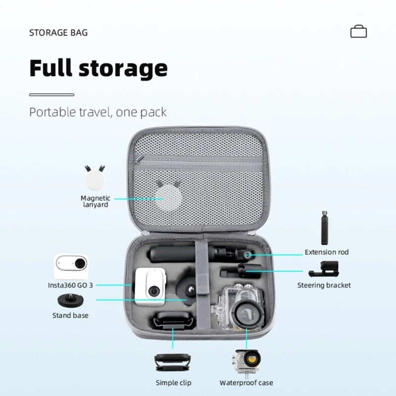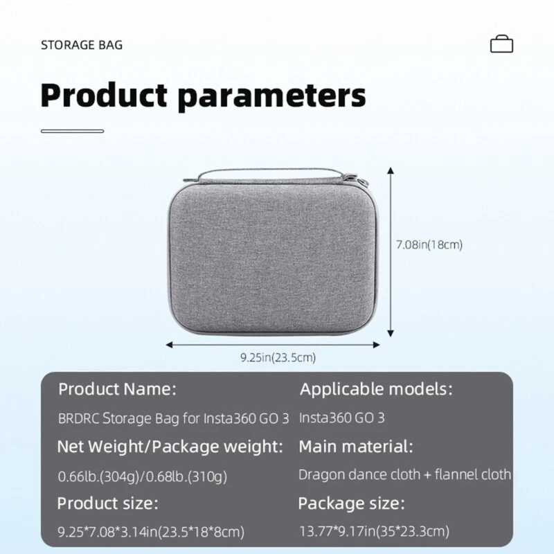 Features: It can effectively help to protect your device from scratches, dirts, dust, bumps and so on. Easy accessing to your camera with Zipper opening and closing. It has a inner net mesh for us to store other small articles, such as charging cable and so on. Specifically designed for GO 3 camera and other accessories. Storage Bag only, other accessories in the picture is not included. Specifications: Material:Cloth Color:Gray Size:Approx.23.5x18x8cm/9.25x7.08x3.15inches Package Includes: 1x Carrying Case note: 1.Please allow 1-2cm errors due to manual measurement, make sure that you do not mind before you order. 2.Due to the difference between different monitors, the picture may not reflect the actual color of the item.