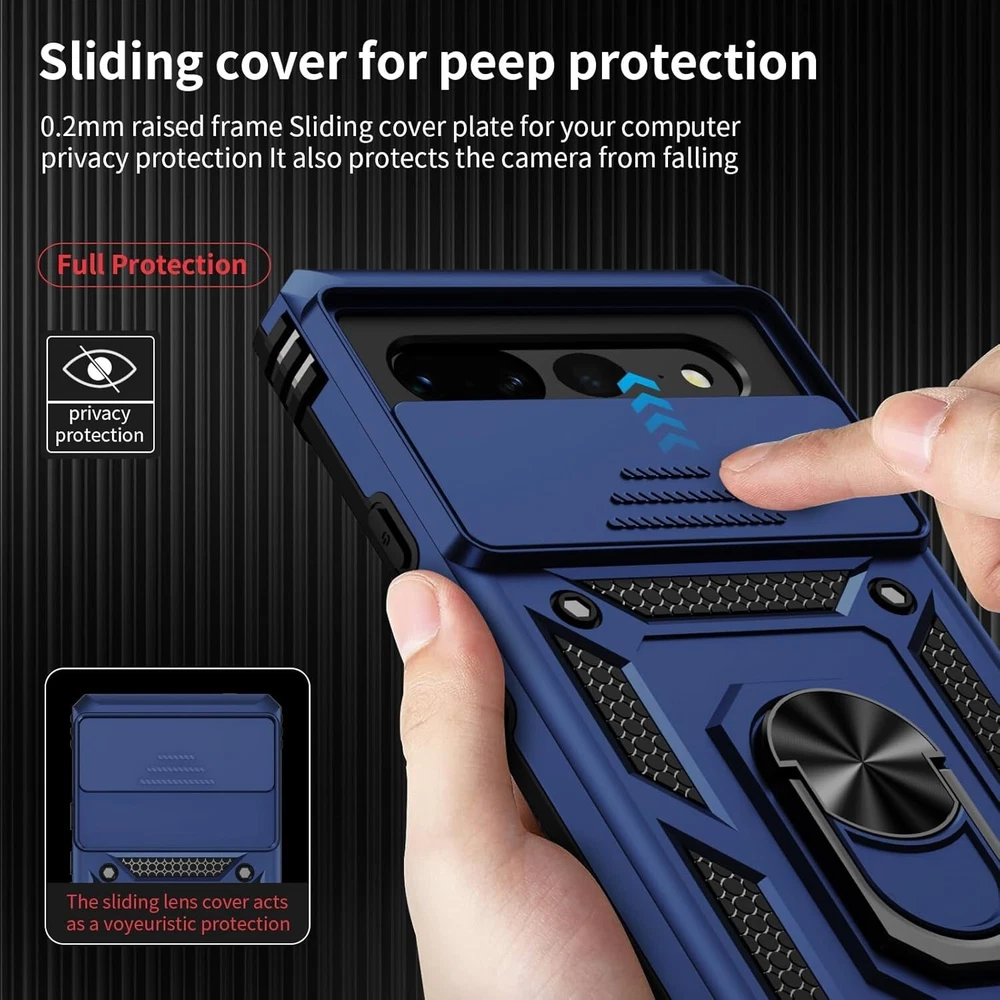 For Google Pixel 7 Pro 5G Case With Military Grade Cover & Ring Holder Kickstand 【Durable and Delicate Phone Case】 Armor Case with sliding camera cover specially designed for Google Pixel 7 Pro. The precise cutout design of this phone case ensures perfect alignment with buttons, camera, speakers, and ports of your phone, allowing for easy access and comfortable pressing! Please note: The metal ring on the back of this case renders it incompatible with wireless charging. 【Military Grade Protection】This double-layer TPU+PC case is shockproof and protect your phone against drops and bumps via maximum shock absorption. It is certified by Military Standard. It has been tested to survive over 8,000 drops from heights of up to 10FT! The flexible TPU interior absorbs impacts, while the reinforced corners on the exterior enhance protection during falls. 【360°Rotation Magnetic Ring Kickstand】This newly upgraded multi-functional case includes a built-in ring kickstand and metal patch. The 360° rotating ring provides two stand modes for vertical or horizontal viewing, making it useful as a ring holder to free up your hands while watching videos. Additionally, the metal patch on the back easily attaches to a magnetic car mount, providing convenience for navigation during driving. 【Crafted for Camera Security 】 This Pixel 7 pro phone case has upgraded camera cover protection. When not in use, the camera cover can be moved to the left to hide the camera, ensuring the utmost protection for your precious camera lens against scratches and bumps. It is very convenient to use and does not affect the quality of photos. 【Service】We provides you service. If you have any problems with our products, please contact us via Seller Center at soon. We will reply timely. What's in the box: 1x Case 1x Kickstand (Phone not included) USA SELLER!! BRAND NEW!! BEST QUALITY!! FAST DELIVERY VIA USPS!! GREAT FOR ANY OCCASIONAL GIFT TO YOUR FRIENDS, FAMILY, NEAR AND DEARS ONES!! Contact us Please give us the opportunity to resolve any problem before leaving any negative feedback or open any dispute. Please feel free to contact us on eBay's Internal Message System for any questions or concerns you may have. If you want to change shipping address or want a faster shipping etc., it's Better leave a note of under your order, so the system can hold on your order before we see your message, thanks. We will answer all your questions or concerns ASAP. Feedback We will make every effort to make your shopping the most pleasant and wonderful! Please contact us before leaving a negative feedback, giving us a chance to resolve your problem. Customer Service If you have any problems, we are very glad to help you. Please message us directly through eBay for faster response. Your inquiry is important to us and we'll respond within 24 Hr. SHIPS FROM U.S!!!!!!!!RECEIVE IT FAST AND FREE!!!!!!! Your order will be shipped within 1 business days upon full payment received. [ Due to the different monitor and light effect, the actual color of the item might be slightly different from the color showed on the pictures. Thank you! ]