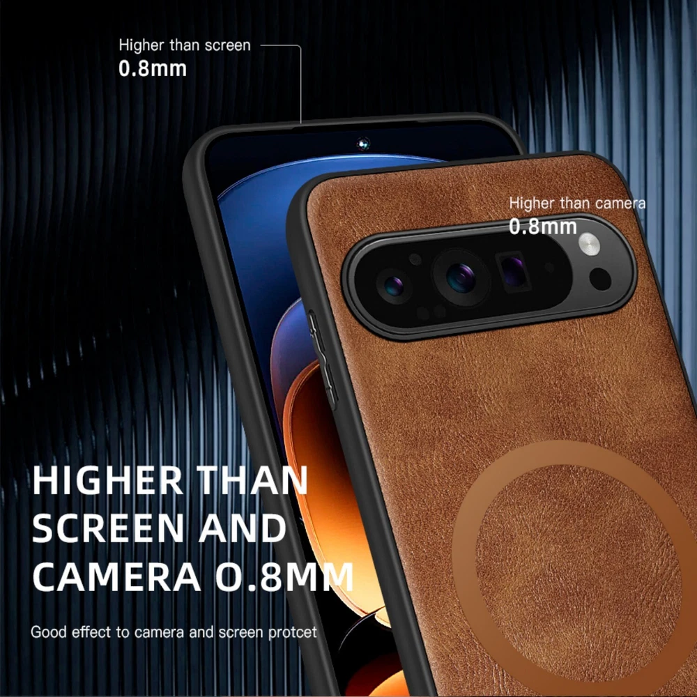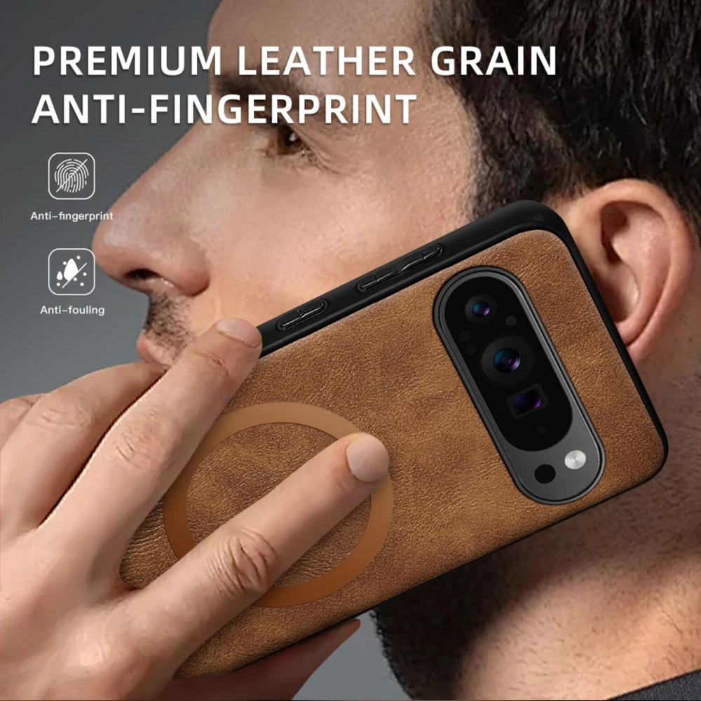 For Google Pixel 9 Pro XL 9 8 7 Mag Safe Magnetic Shockproof Leather Case Cover Elegant design vegan leather case support MagSafe wireless charging. Perfect gift for family members & friends. Comfortable Grip - Definitely soft Vegan leather on the back is anti-slip and fingerprint resistant, and texture of the surface offers a nice feel to hold. Ultra thin & Lightweight - Exact fit won't add any bulkiness to your phone, slim but protective enough. Soft flexible case is easy to install and remove, without damaging the phone. Screen and Camera Protection - 0.8mm raised lips lift screen and camera to protect from cracks and scratches. Anti-Slip, anti-fingerprints, durable case to protect your phone from dust, drops and daily scratches.