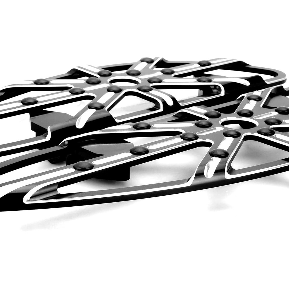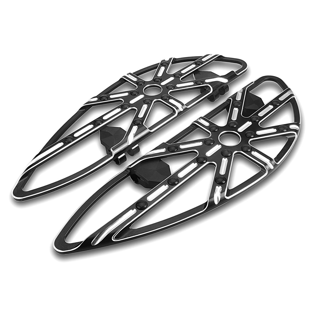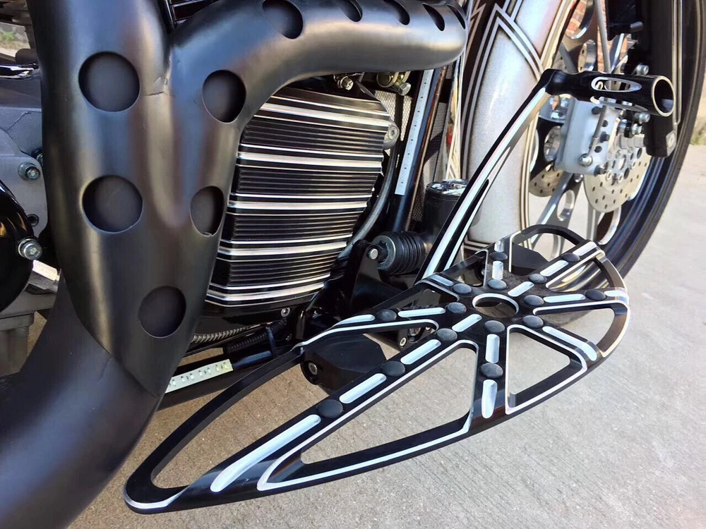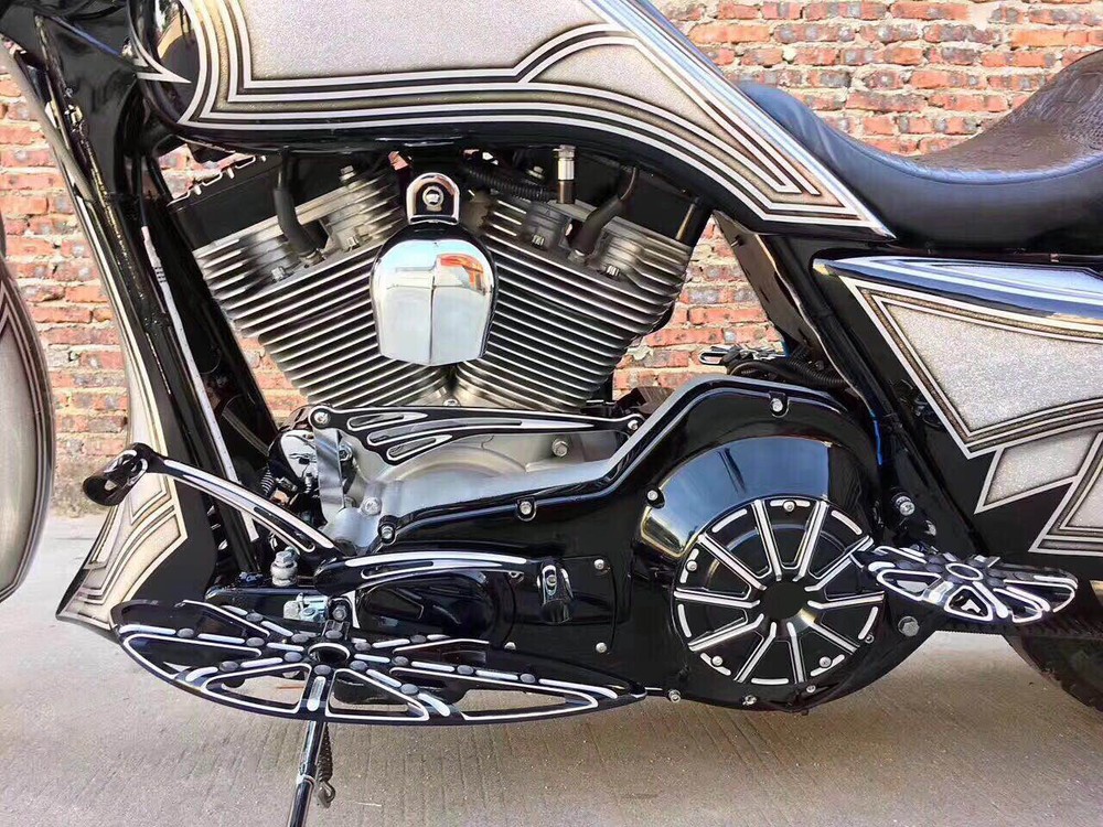 Fitment: 2014-2023 Touring street glide FLHX ,street glide special FLHXS and CVO Street Glide FLHXSE ; 2014-2023 Road glide FLTR, FLTRX, road glide Special FLTRXS ,CVO Road Glide Custom FLTRXSE , road glide ultra ; 2014-2023 Electra glide Standard FLHT ; Ultra Limited Low FLHTKL , electra glide ultra ; 2014-2023 Road king Special FLHRXS , road king FLHR ; 2014-2023 Ultra Limited FLHTK , CVO Limited FLHTKSE ,Trike Freewheeler FLRT , Tri Glide Ultra Classic FLHTCUTG Features: >> Machined from a solid piece of billet aluminum ; >> Adds exceptional style and comfort to your bike ; >> Black finish is anodized and features re-cut machined accent sections on the top and sides of the floorboards ; see-through look >> Includes all mounting hardware . For Harley Touring Gauge passenger Floorboards Shift levers Road Glide 2014-up Fitment : For 2014-up Touring models: Street Glide FLHX Street Glide Special FLHXS CVO Street Glide FLHXSE For 2014-up Road Glide models: FLTR FLTRX Road Glide Special FLTRXS CVO Road Glide Custom FLTRXSE (not for Road Glide Ultra) For 2014-up Electra Glide models: Standard FLHT Ultra Limited Low FLHTKL (not for Electra Glide Ultra) For 2014-up Road King models: Special FLHRXS (not for Road King FLHR) Note : The passenger footpeg cannot fit Ultra Limited FLHTK, CVO Limited FLHTKSE, Trike Freewheeler FLRT, and Tri Glide Ultra Classic FLHTCUTG. An "S" Bracket is required with the passenger peg for a proper fit. Package Includes : 1 Set Brake Arm Lever Kit 1 Set Shift Lever & Shift Pegs 1 Pair Front Floorboards (18" L x 5 5/8" W x 1" thick) 1 Pair Rear Floorboards (7 1/4" L x 3 7/8" W x 1" thick) 1 Pair passenger peg mounting hook bracket Brake Arm Kit : Each Deep edge cut Brake Arm is precisely CNC machined from billet aluminum. The arm length is 1" longer than the stock. Includes a billet Deep edge cut Shift Peg. Shift Lever with Shifter Pegs : Carved from billet aluminum. The standard length is 1" longer than the stock. Shifter pegs are included. Matches the full line of Ness Deep edge cut accessories. Each Deep edge cut kit consists of: Brake Arm, Heel/Toe Shifter. Floorboards : Machined accents on the top, bottom, and side. Adds exceptional style and comfort to your bike. The custom new style makes your bike more outstanding. Note : FLST/FLD models with passenger footpegs will need to use OEM accessory floorboard mounts.