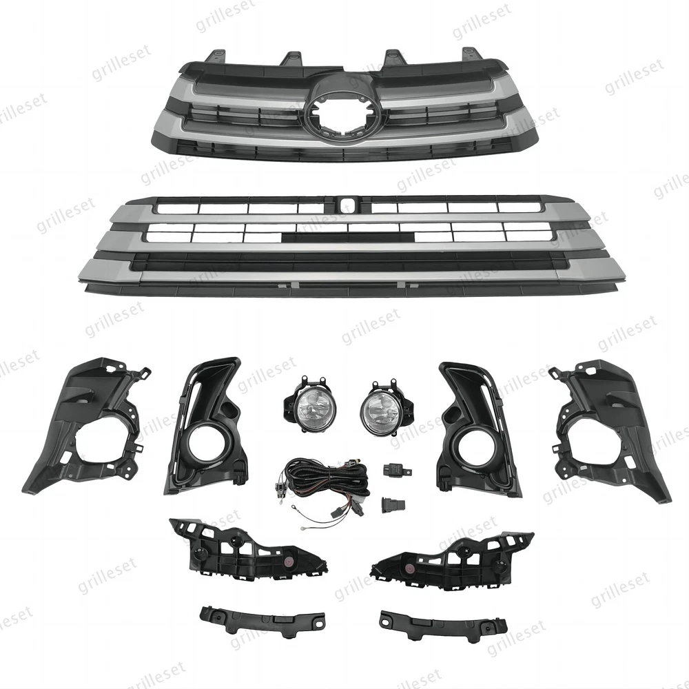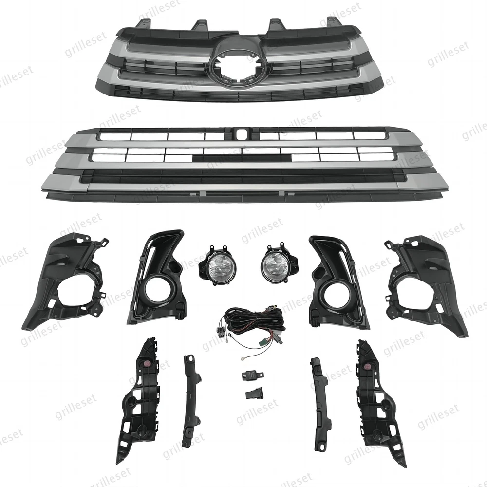 Fit for : 1 Set (12 PCS) Includes:(See more pictures for details) 1 Pc front upper gloss silver grille 1 Pc front lower gloss silver grille 2 Pcs front gloss silver tow hook hole cover 2 Pcs fog lights with bulb,switch,relay and Harness 2 Pcs fog light bezels 2 Pcs front bumper brackets 2 Pcs front bumper side brackets Item OE number : 53101-0E230;53102-0E070;53106-0E010;53105-0E010;52040-0E030;52030-0E030;81220-02160;81210-02160;52146-0E080;52145-0E080;52536-0E030;52535-0E050 Installation : Perfect fit direct replacement, no modifications required. Installation manual not provided; we recommend professional installation. Item's-Features : Superior quality kit 100% brand new Made from high-quality materials Excellent replacement part, no modifications needed Other parts fit for