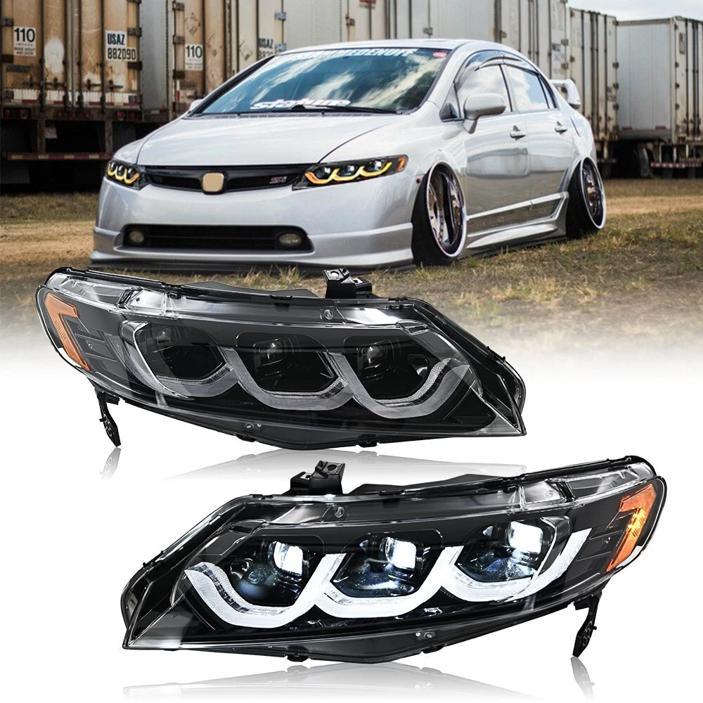 Pair LED Projector Headlight For Honda Civic 2006-2011 Sequential Turn Animation Fitment: For Honda Civic 2006-2011 Package Includes: 1 Pair (Driver Side + Passenger Side) Headlights Assembly Set (Including Some Installation Accessories) Specification : Brand :TT-ABC Product Condition: 100% Brand New Type: LED Headlights Assembly A few second of Start up Animation Sequential Turn Signal Full LED, No need to purchase additional light bulbs Function: DRL(White)+High Beam(White)+Low Beam(White) +Turn Signal(Yellow)+Side light (Yellow ) Housing Color: Black Lens Color:Clear Operating Voltage: 12V-14V Material:High Quality ABS Plastic+PC+PMMA Waterproof Rate:IP67 Warranty:1 year Features:DOT-Certifed, Durable, Easy lnstalation, High Quality, OE-Certified, SAE-Cerified, Sealed Assembly, Waterproof, ISO-Certifed, Dustproof And Shurdy Note: Please confirm the year of your car/light shape/ plug of your original lights whether these information as same as our lights, if you can't confirm it, please contact us. Please double check shipping address, We are not responsible for incorrect or undeliverable addresses.You can't change your shipping address after placing an order. Please Using your factory supplied connector/harness will avoid cutting or modifying any wires. We only provide electronic invoice "packing slip", if you need it, please note or contact us when you place an order. We will open the box and inspect the returned item to see if it is intact and the correct item before refunding you. If there is a problem with the product, please feel free to contact us, we can help you solve it as soon as quickly! Payment Delivery details After sales Contact us For tips Payment We only accept payment via eBay. Please make sure your eBay address is correct before you pay. Insufficient information will delay the order process so please read the invoice carefully during checkout. Delivery details To United States: 3-6 business days. Package will be sent out within 24 hours after the pament is received. Pick-up is unsupported servise. We will not be responsible for any delivery failure due to unclear address. Delivery is not available on weekends, public holidays or after business hours. After sales After-sale If it happens that the lights get moisture after you install them on your car, it would be normal for first time using. You just need to keep using for a period of days, the moisture will disappear. because there is inner air cycling in the lights as we design. As for headlights, you can also open the cover of low/high beam so that the moisture will out more quickly. If the moisture still exist, please feel free to send us message for help, we will try our best to help you. After you install, if you find that there have function does not work, please check if the harness is connected correctly, and exchange the left and right , If it still does not work, please rember take some photos or videos, please feel free to contact us. We will appreciate if you can takes some pictures or videos about your problem, and also send us the barcode of the products(every product we sell has a barcode on the backside of the light and outside of the package, it's very important for us to find the problem) If you open a request or case optionaly before communication, it would be hard for us to serve you. Contact us If you have any problem, please contact us or leave message for us for free. We will reply at once when convient. Don't worry, we always here waiting for your and like to help you. For tips There are some tips for you: 1. If There are any problems with the product, please contact with us before leaving any feedback or raise any dispute. 2. If you are in our exclusion countries. Please write to us for shipping .If When the goods arrive, please check them carefully 3. If you find that the goods have been damaged, please be sure to refuse to collect the goods and ask the courier to return the goods to us. If the goods are damaged, please do not collect. 4. If the item you have ordered is defective, contact us within the warranty period, we will replace the defective item for you with an item of equal functionality at first. 5. If buyer do not want neither replacement nor partial refund, but want returning,buyer should be responsible for all the returning ship charges.