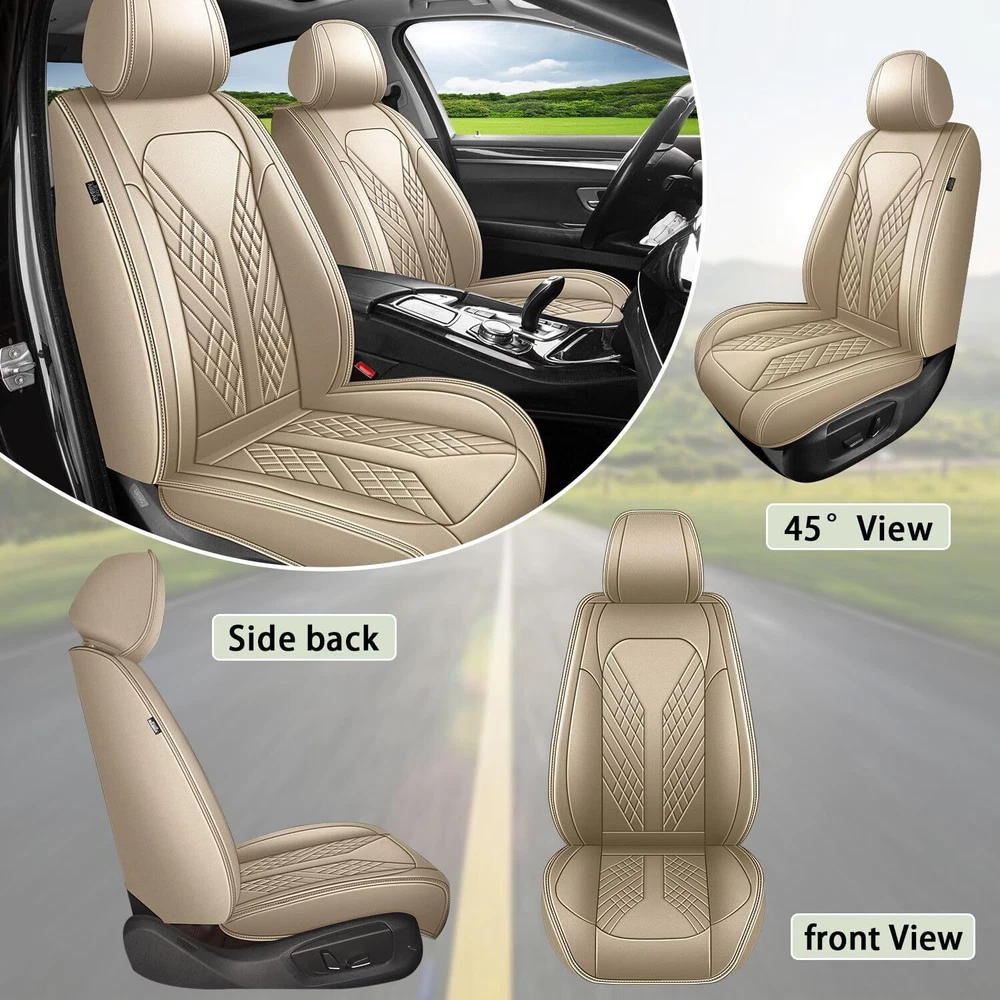 Notices: All the pictures have been professionally corrected, but due to the different ambient light and different display device settings, there may be some deviations in the pictures and items you see, please understand! Features: Universal fit for 5 seats,a full set of item include 2 Seat Cover, 1 Rear Seat Cover(3pcs separated), 5 headrest covers. Car seat heating, ventilation, seat belt buckles, airbags,cup holder,back seat 40/60 split work as normal after install. The front seat covers have back storage pockets for keys,phones and magazines. Stylish design and eco-friendly material, made from PU Leather: soft, smooth, durable and breathable. Much more durable and comfortable than most similar products out there. Improve the look of your car on the spot with these covers. Wear resistant and waterproof for car seat covers, no color bleeding. Very Easy to install: package comes with installation instruction in paper, please contact us via message to get video of instruction. Specification: Type: Car Seat Covers Color: Beige Material: PU Leather Range of application: 5 sits cars, all seasons Fitment: Fit for Honda Accord 2007-2017 Package included : 2* Front Seat Cover 1* Set of Rear Seat Cover 1* Bag of Accessories for installation On Nov 14, 2024 at 22:03:46 PST, seller added the following information: