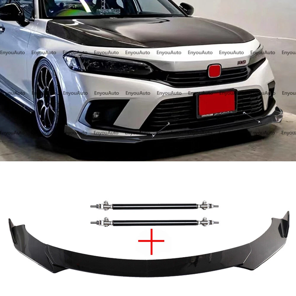 For Honda Accord Front Bumper Lip Spoiler Splitter + Strut Rods Glossy Black