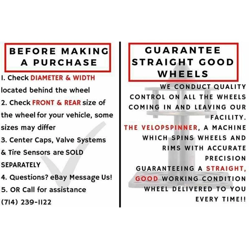 Your reliable wheel/rim supplier ONE OF THE LARGEST INVENTORY OF WHEELS AND RIMS Hassle-Free Returns We strive to have the best customer service in the business FREE SHIPPING Same-day shipment on all orders placed before 2PM PST. Always free of charge! 30-DAY RETURN POLICY You have 30 days to return/exchange the rims COMPATIBLE Designed to seamlessly integrate with all OEM or factory components, franging from hubcaps to TPMS, lug nuts, and tires. Quantity of rims: 1 For Honda Accord OEM Design Wheel 18" 18X8 2013-2015 Machined Grey Rim 64048A INVENTORY ID: A18R64048AGR Condition: New Replacement Like new, Taken off from a new vehicle. Perfect condition. Excellent, Like-new with minimal light scratches with minor cosmetic flaws. Great condition, Scratches visible from 4-5 feet away from normal usage. Few minor imperections or dinas. Good condition, Scratches visible from 6-7 feet away from normal usage Minor curb rash. Fair condition, Scratches and curb rash visible from 10 feet away. May have stains, fading finish, and peeling clear coat. Acceptable condition, Major scratches, curb rash, superficial damage. No structual damage. Good for reconditioning Used Chrome, May have pitting, peeling, and wear & tear from normal usage. New Chrome, Freshly chromed wheels. Gives off "brand new" appearance. Reconditioned, Wheel that has been refinished and repainted to like new status. Gives off "brand new appearance. NEW REPLACEMENT Easy Returns Same day shipping Road Structure Rigidity Visual inspection for bends or cracks Item Details Inventory ID: A18R64048AGR Condition: New Replacement Interchange part number: 560-64048A WE SHIP THE SAME DAY IF THE ORDER IS SUBMITTED before 2 P.M. PST Item Photos We accept FAST AND FREE UPS SHIPPING We ship your order within 1 business day after receiving the payment. The average delivery time is 72 hours. We also offer International Shipping through Ebay's Global Shipping Program. 100% FUNCTIONAL RIMS, FREE OF CRACKS AND/OR BENDS We guarantee the high quality of each rim we sell. During the meticulous inspection, we discard rims with cracks or structural damages and simply don't sell them. RETURN/CHANGE YOUR ORDER WITHIN 30 DAYS Ordered rims from us but changed your mind? If you haven't mounted them, you can simply ship the rim back within 30 days! Rims have to be in original condition (as purchased from Santa Ana Wheel), with a label on them. We will provide you a full refund or exchange for the same price category rim. MONEY BACK GUARANTEE. 30 DAY WARRANTY If you have any issues with the rims purchased from us after they've been mounted, just notify us within 48 hours. We will provide a full refund/exchange for the same price category rim, plus, cover the shipping costs. Easy! EACH RIM IS TRIPLE-CHECKED BEFORE SHIPMENT Each used rim, sold by Santa Ana Wheel, undergoes 3 stages of inspection: visual and automatic (crack and bend tests) upon arrival to the warehouse, and another visual one before being shipped. We guarantee the high quality of our rims! OVER 100,000 SATISFIED CUSTOMERS Join them today and become a part of the extensive Santa Ana Wheel family! The warmest welcome! 30-Day GUARANTEE FOR ALL OF OUR RIMS yes. that is right. 30-DAY FOR ALL RIMS. WITH NO EXCEPTIONS* *Unmounted, rims in original condition (as bought from Santa Ana Wheel), with our store label intact. Shipping and Handling Same-day shipping for all orders submitted before 2 p.m. PST We ship by UPS Ground only (Monday to Friday) Local pick-up available Shipments only to the 48 continental states We DO NOT ship to PO boxes or APOs International shipping is offered ONLY through Ebay's Global Shipping Program Returns are NOT accepted for international orders Please reach out to confirm we get you the exact wheel needed Center Caps, TPMS, and Lug Nuts are not included with the purchase of a rim. We do carry them please contact us to add them to your order if needed. Sales Policy 100% working rims, free of bends and cracks. 3-stage inspection Each rim in our inventory undergoes a 3-stage inspection process. Two stages upon arrival to the warehouse - a meticulous visual inspection and automatic tests (bend and cracks). The third stage, one more visual inspection, is performed before the shipment. If we detect cracks/defects, we immediately contact the customer and offer them a full refund or a replacement for an alternative in the same price category. Professional pre-sale service All of our rims are inspected, bend tested, and professionally repaired/reconditioned if required. We do not sell rims with crack repairs or center bent wheels. Some rims, though, may have repairs/patches in the surface face area. We test all rims before recondition and guarantee their quality for as long as you own them. If you ever have any issues with the recondition, we will provide you a full refund/rim replacement, and cover the shipping costs. If you want to be absolutely sure what condition wheel to buy, feel free to contact us, and we will kindly check it for you. CENTER CAPS/TPMS/ LUG NUTS ARE NOT INCLUDED WITH THE PURCHASE OF A RIM BUT ARE AVAILABLE FOR PURCHASE. PLEASE CONTACT US FOR A QUOTE. Sales Terms and Conditions Santa Ana Wheel (santaanawheel) does not accept any liability or provide any warranties for the used rims sold at this auction (with the exception of a 30-day return/refund policy). All rims sold are USED, with different cosmetic condition. The conditions have been measured by the staff, and are accurate. All rims have been inspected for bend and crack damage. The rims sold are in AS-IS condition and are USED. 30-DAY HASSLE-FREE RETURN POLICY* If you decide that you no longer need/want a rim that you purchased from Santa Ana Wheel, you simply need to ship the rim/-s back at our expense, and we will provide you a full refund. No restocking fees will be applied. You have 30-days to initiate a return. A refund will not be issued if rim/-s were mounted/driven after the purchase. *Returned rims m