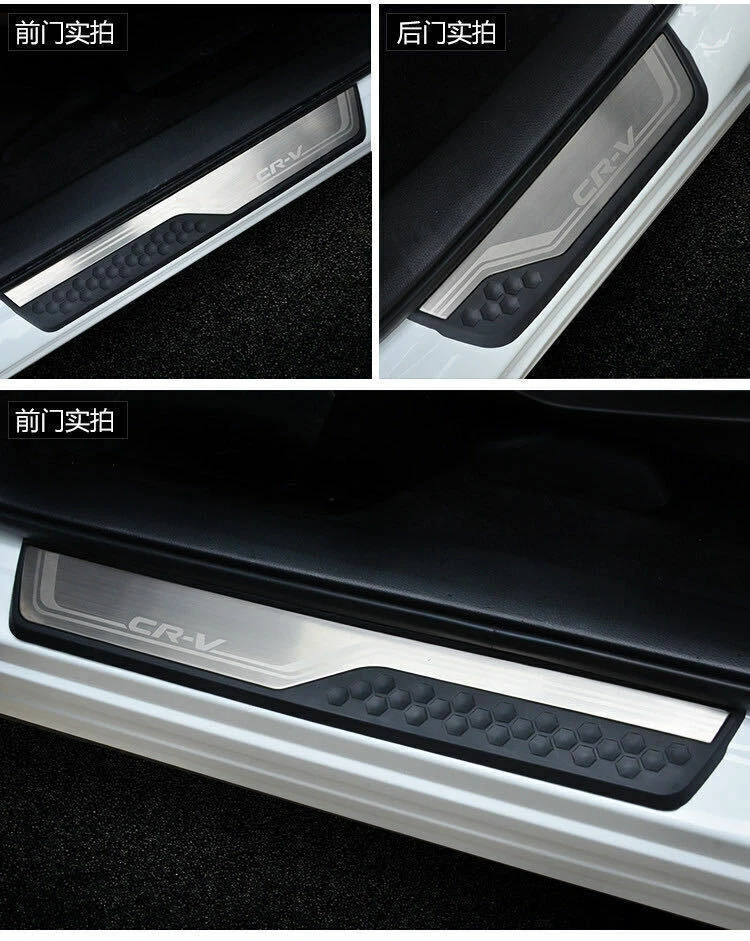 Manufacturer Part Number: Does not apply Color: Black Country/Region of Manufacture: China UPC: Does not apply Number in Pack: 4 OE/OEM Part Number: For Honda CR-V 2017-2022 gtin13: Does not apply Features: Easy Clean, Easy Installation, Self-Adhesive, Waterproof Universal Fitment: No Manufacturer Warranty: 1 Year Performance Part: Yes Items Included: Door Sill Scuff Plate Protector Material: Plastic, Stainless Steel Brand: Unbranded Placement on Vehicle: Door Sill Vintage Part: No Finish: Unfinished Type: Interior Trim Set