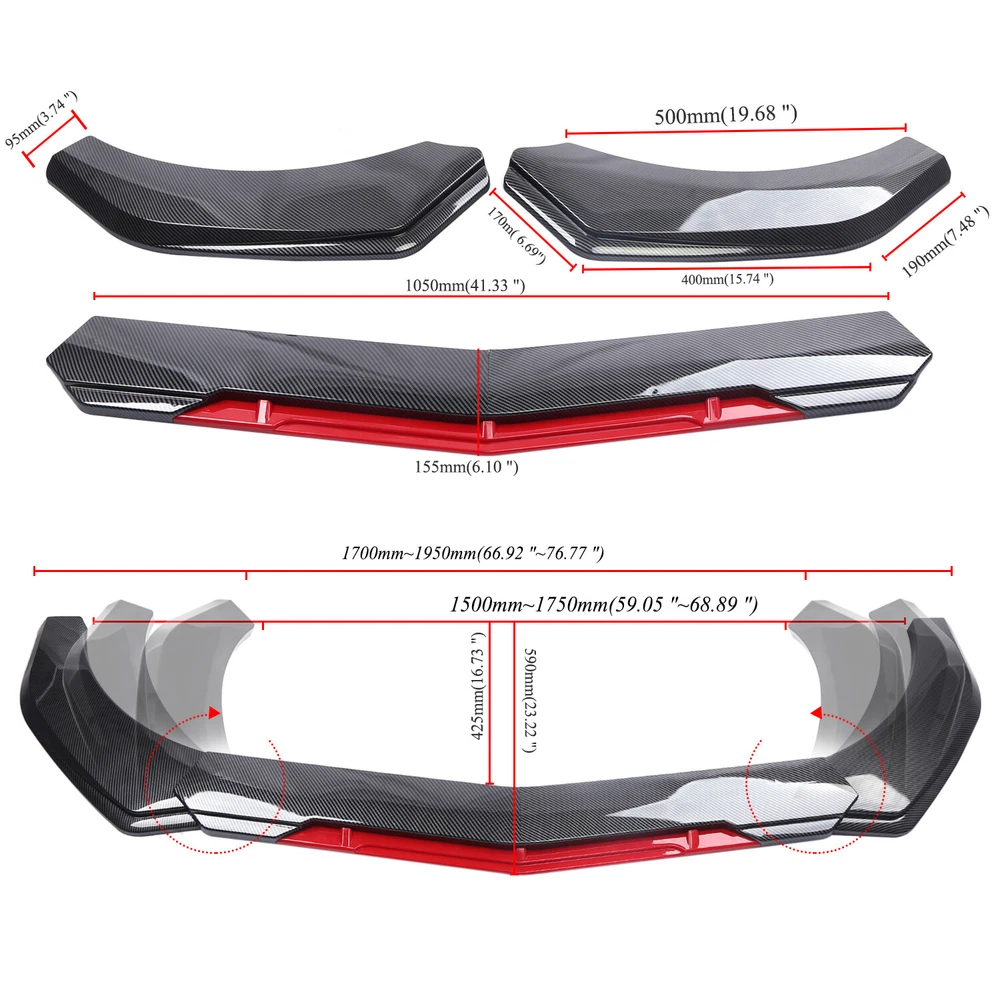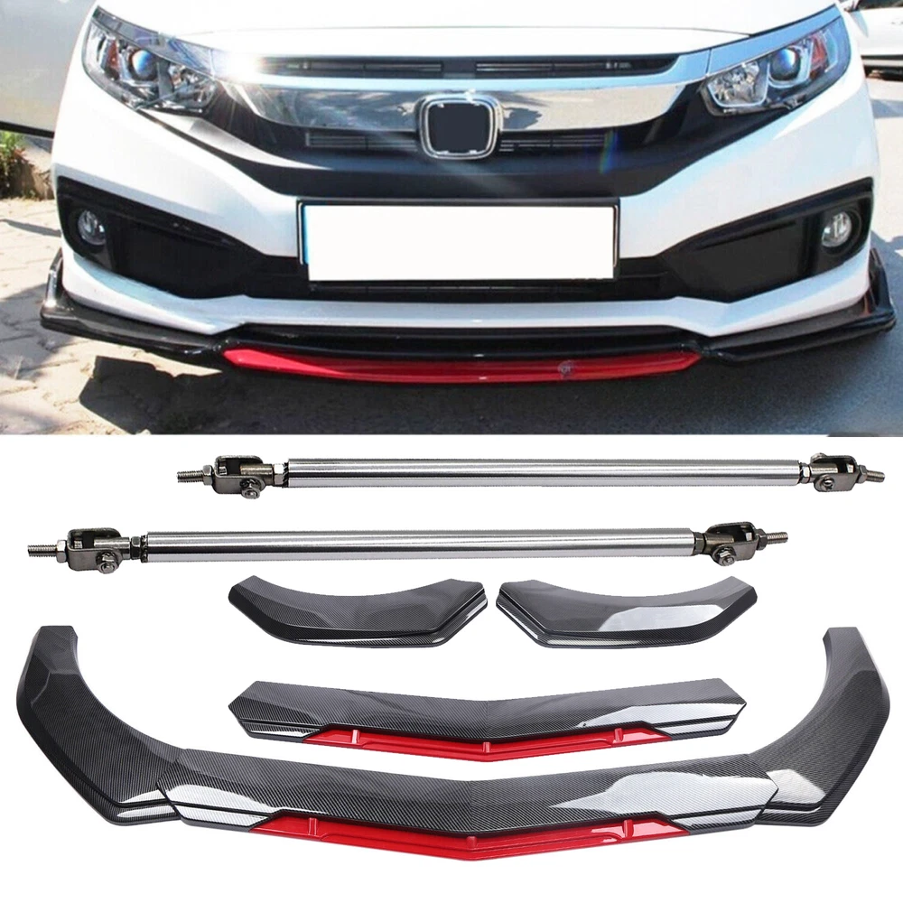 Feature: Made of Updated durable and sturdy ABS plastic, adding stiffeners, no deformation in long-term use. More longer and wider than others. Provide an elegant and personalized appearance. Prevent the car from being scraped and improve the level of the decoration of the car. Come with screws, More convenient installation and stable installation. This is a set(3 pieces) front bumper cover lip front spoiler Instruction Not Included, Professional Installation Is Highly Recommended. Specification: Type:Front Bumper Lip Body Kit Spoiler Material:ABS Placement on Vehicle: Front;Lower Color: Carbon Fiber Look Strut Rods: ★ Length: The length can be adjustable from 5.9" to 11" (20-30cm) ★ Material: Stainless Steel ★ Quatity: 2 x Stainless Steel Bumper Lip Splitter Tie Rod Bars. ( Stainless steel has weldability, corrosion resistance and heat resistance.) ★ Position: This exquisite and compact lever is mainly fixed on the body components (front and rear surround, skirt, head and tail lip), and can also be installed in the car center console or interior trim panel ★ Require: Product will require drilling holes into the bumper and/or lip/diffuser to attach safely to the vehicle. Package Included: ◆1 Set Front Bumper Lip Chin Spoiler Splitter Body Kits(3Pieces) ◆2 X Strut Support Rods On Nov 27, 2024 at 23:17:35 PST, seller added the following information: