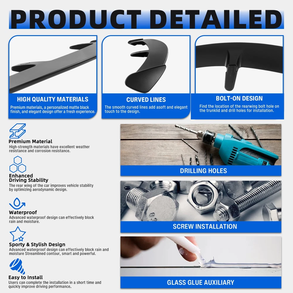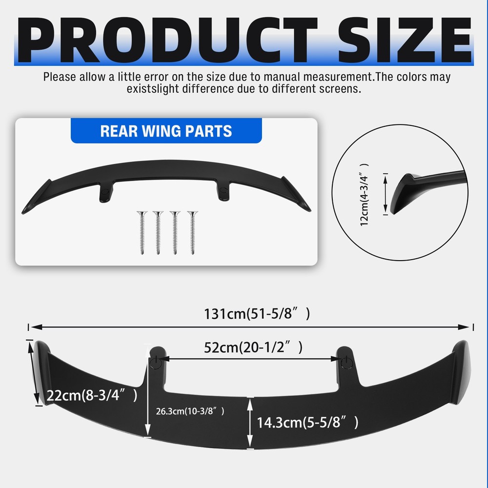 For Honda Odyssey SUV MATTE BLACK 52'' Car Rear Trunk Roof Spoiler Wing ABS JDM Color: Matte Black Material: ABS Features: 【 Lightweight and Durable 】Made from lightweight yet sturdy materials, it ensures optimal performance without adding extra weight to the vehicle. 【 Aesthetic Design 】The design focuses on aesthetics, ensuring that the spoiler blends seamlessly with the vehicle's overall appearance. 【 Improved Stability 】The spoiler generates negative pressure at the rear of the vehicle, reducing lift and enhancing stability, particularly during high-speed driving and cornering. 【 Easy Installation 】The device is simple to install and remove, requiring minimal time and effort. However, some drilling may be necessary for secure installation.(It is better to use glass glue to assist in fixing. ) Fitment : Suitable for most hatchbacks, SUVs, wagons, and minivans . (with flat rear trunk surface) Delivery contents: 1 Spoiler,1 Mounting Kit . Notice: If you do not know how to modify, go to a specialty store for modifications. Processing & Delivery: Your order will ship within 1–3 business days (excludes weekends/holidays) after payment clears. U S domestic orders only. Shipped via Standard Delivery from Walton, KY. Delivery within 1–6 business days in the US. Note: Verify shipping address before ordering. In-store pickup & returns unavailable. Buyers can return items within 30 days for a full refund, no questions asked. Items must be returned undamaged , unstained , uncut , and in their original packaging . On Sep 30, 2025 at 09:19:47 PDT, seller added the following information: