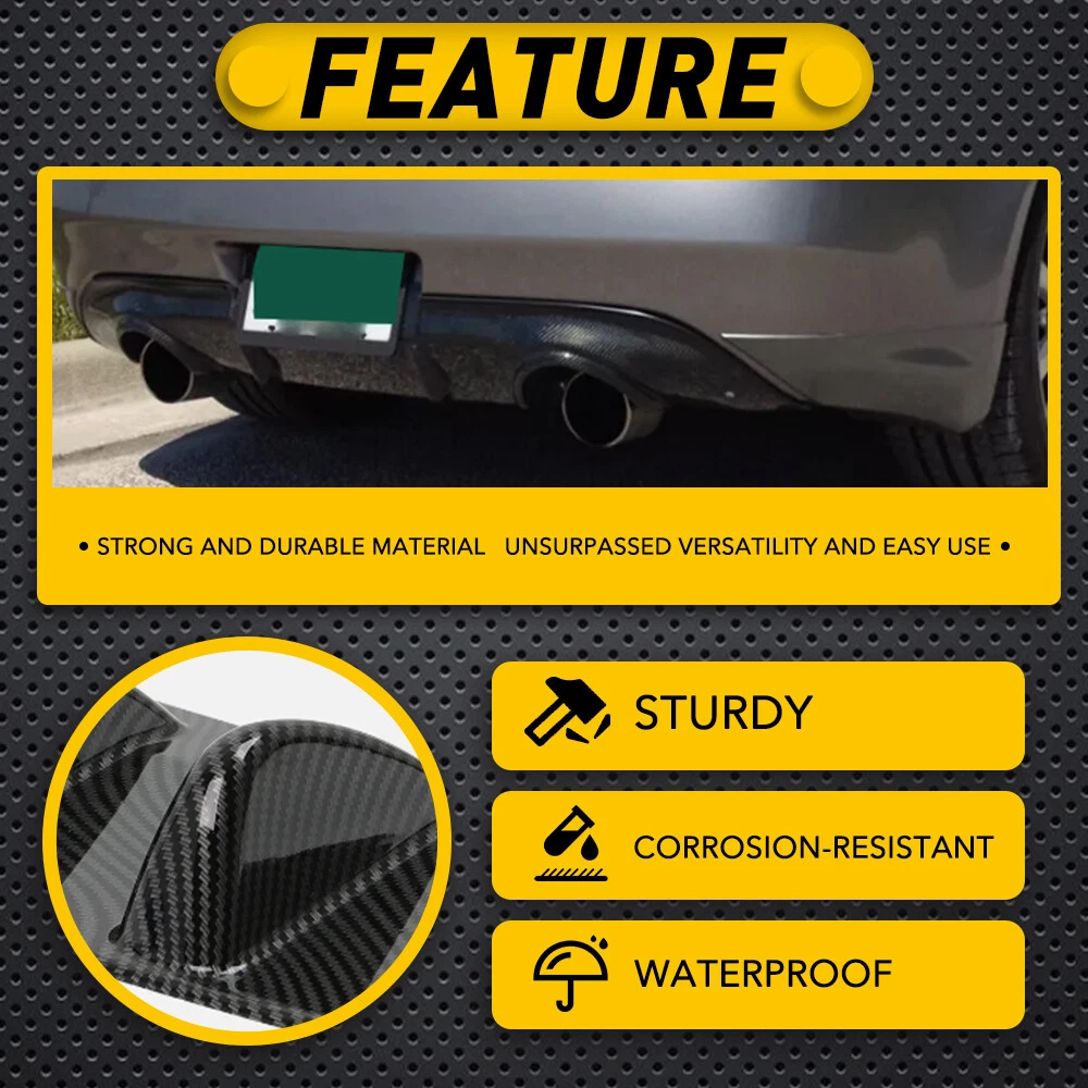 Fit for: Suitable for most cars with flat bottom of rear bumper and exhaust pipe not in the middle. If the model has an exhaust pipe on the left and right, the distance between the exhaust pipes must be greater than 84cm (33"). Specifications: Product Material: ABS Color: Carbon fiber (as pictures show) Placement on Vehicle: Lower, rear Features: 【Reduce Air Resistance】 This shark fin diffuser designed to increase a vehicle's aerodynamic performance and improve the stability of vehicle during fast driving. 【Excellent Appearance】 For Infiniti G37 Coupe Carbon Rear Diffuser fiber Bumper Lip Splitter Spoiler PU Fit for: Suitable for most cars with flat bottom of rear bumper and exhaust pipe not in the middle. If the model has an exhaust pipe on the left and right, the distance between the exhaust pipes must be greater than 84cm (33"). Specifications: Product Material: ABS Color: Carbon fiber (as pictures show) Placement on Vehicle: Lower, rear Features: 【Reduce Air Resistance】 This shark fin diffuser designed to increase a vehicle's aerodynamic performance and improve the stability of vehicle during fast driving. 【Excellent Appearance】 Shark fin and clean lines design with beautiful appearance to decorate your car, which gives your vehicle a more aggressive racing look. 【ABS Material】 Made of ABS material with high-quality, waterproof, durable functions and will not easy to break. 【Universal Fit】 Universal fit for most cars, please measure the size before purchasing. Note: Please confirm the size and make sure that there is enough space to install before purchasing!!! Professional installation is required. Packaging Include: 1 x Rear Shark Fin Bumper Diffuser 1 x Screws kit 1 x Double sided adhesive tape Item Specifics Brand AUXITO Type Spoiler Lip Placement on Vehicle Lower, rear Material ABS Color Carbon fiber Features Easy Installation Attachment Type Screw-On Universal Fitment Yes Items Included Screws Manufacturer Warranty 5 Years Performance Part No Vintage Car Part Yes Payment 1. We can only accept payment from PayPal. 2. Please keep the consistency of Paypal address and ebay address. Shipping 1. All items will be shipped in 12 hours after receiving your payment . 2. We ship this item to US only via USPS first class mail. It usually takes 3-5 working days to deliver. Returns 1. We offer 30 days return policy. 2. Please contact us within 30 days from the date you receive your package if you have any questions with the products . 3. Refund will be sent after we got your returned package. 4. All returned items should be in the original packaging with tracking number. Contact Us We work from Monday - Saturday 9:00AM - 6:00PM, but we will reply once we get your message. There will be delay on response if you send message or E-Mail on Sunday. DESCRIPTION PAYMENT SHIPPING RETURN POLICY CONTACT US Shop Category Store Home Other Hot Item Door Latch Cables LH+RH Front For 2007-2013 Chevy Silverado 1500 2500 HD 3500 HD USD 17.99 1set Control Knob Speed Fan Heater A/C For Jeep Wrangler TJ 99-06 5011218AA USD 9.99 Rear Left or Right Outside Door Handle for 2010-2016 Toyota 4Runner Lexus GX460 USD 14.99 For 2002-2008 Dodge Chrysler Stereo Car Radio Wiring Harness Adapter USD 11.59 Universal Car Windshield Wiper Squirter Washer Nozzle Spray Jet Kit Fluid Hose T USD 9.99 New List Item Exterior Door Handle For Hyundai 2011-2016 Elantra Primed Rear Right Side USD 12.99 LED 3RD Strobe Cargo Brake Light For 88-98 Chevy GMC C/K1500 Silverado 16522433 USD 34.99 2x Rear Bumper Reflector For Chevy Equinox 2010-2017 Tail Lamp Left Right Rear U USD 39.99 6M Body Side Molding For Roll Chevy Belt Exterior Protector / GMC SUV's Truck USD 39.99 Touch Screen Display for Cadillac 2018-2021 Escalade ATS CTS XTS CUE TouchSense USD 31.99 Excellent Delivery For Infiniti G37 Coupe Carbon Rear Diffuser fiber Bumper Lip Splitter Spoiler PU Fit for: Suitable for most cars with flat bottom of rear bumper and exhaust pipe not in the middle. If the model has an exhaust pipe on the left and right, the distance between the exhaust pipes must be greater than 84cm (33"). Specifications: Product Material: ABS Color: Carbon fiber (as pictures show) Placement on Vehicle: Lower, rear Features: 【Reduce Air Resistance】 This shark fin diffuser designed to increase a vehicle's aerodynamic performance and improve the stability of vehicle during fast driving. 【Excellent Appearance】 Shark fin and clean lines design with beautiful appearance to decorate your car, which gives your vehicle a more aggressive racing look. 【ABS Material】 Made of ABS material with high-quality, waterproof, durable functions and will not easy to break. 【Universal Fit】 Universal fit for most cars, please measure the size before purchasing. Note: Please confirm the size and make sure that there is enough space to install before purchasing!!! Professional installation is required. Packaging Include: 1 x Rear Shark Fin Bumper Diffuser 1 x Screws kit 1 x Double sided adhesive tape Payment Shipping Returns Contact Us 1. We can only accept payment from PayPal. 2. Please keep the consistency of Paypal address and ebay address. 1. All items will be shipped in 12 hours after receiving your payment . 2. We ship this item to US only via USPS first class mail. It usually takes 3-5 working days to deliver. 1. We offer 30 days return policy. 2. Please contact us within 30 days from the date you receive your package if you have any questions with the products . 3. Refund will be sent after we got your returned package. 4. All returned items should be in the original packaging with tracking number. We work from Monday - Saturday 9:00AM - 6:00PM, but we will reply once we get your message. There will be delay on response if you send message or E-Mail on Sunday. All rights reserved. On Dec 24, 2024 at 01:34:44 PST, seller added the following information: