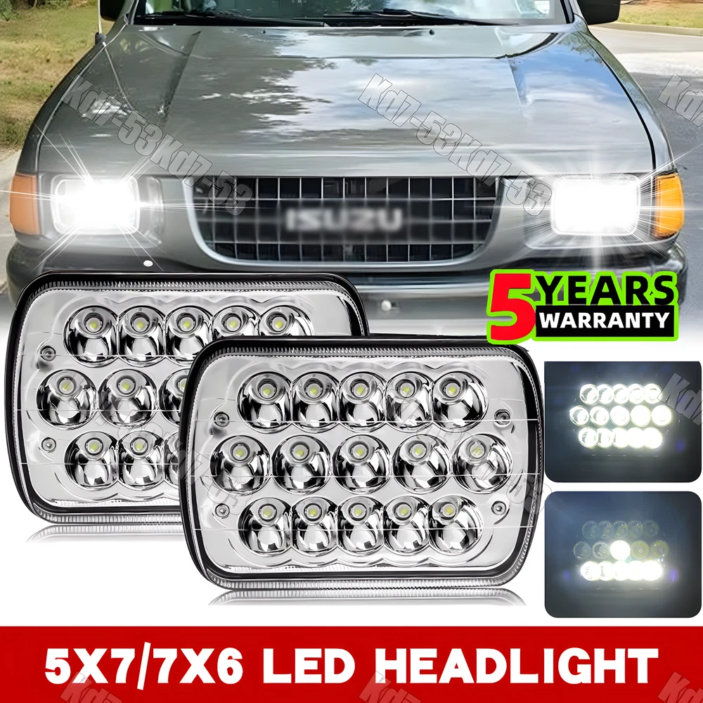 Package Included: Pair 7x6 inch led headlights with H4 plugs Features: Color temperature: 6000K Working voltage: DC 9V to 32V Moisture resistance rate: IP67 Beam pattern: High beam/Low beam Plug: Factory H4 plug with hi/lo beam function Average Lifespan more than 50,000 hours of usage LED wattage: 50W/PCS 100W/PAIR Size(Single Work Light): 7" (length) * 6" (width) Light output: high beam 4500 lumens per assembly / low beam 3000 lumens per assembly Made by high quality black aluminum housing with PMMA lens Professional installation is high recommended Vehicle Fitment Each piece comes with LED sealed beam light and toughen PMMA lens with H4 plug Fit for most vehicle with sealed beam headlights(H6014 H6052 H6054 H5054 H6054LL 69822 6052 6053) Applications: Fit for Isuzu Pickup Fit for most of vehicles which using 5x7/7x6 inch headlight, please see details from the compatibility list.