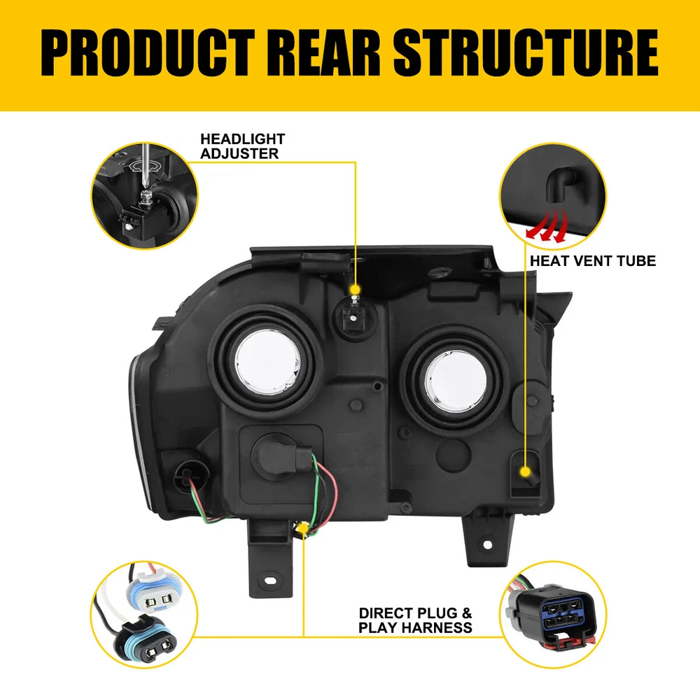 Headlights Headlamps Fit For2005-2007 Jeep Grand Cherokee Fit for: 2005-2007 Jeep Grand Cherokee Specifications: OE number: 55156351AK, 55156350AK CH2502160, CH2503160 Material: ABS+PC (ABS Plastic Housing/Polycarbonate lens) Appearance color: 1.Housing Color:Chrome 2.Lens Color:Clear 3.Reflector Color:Amber Note: Projector ×(Not Include) DRL × (Not include) Bulb × (Not include) Features: *Easy to install: For Jeep Grand Cherokee 2005-2007 Headlights Headlamps Left&Right NEW Side Headlights Headlamps Fit For2005-2007 Jeep Grand Cherokee Fit for: 2005-2007 Jeep Grand Cherokee Specifications: OE number: 55156351AK, 55156350AK CH2502160, CH2503160 Material: ABS+PC (ABS Plastic Housing/Polycarbonate lens) Appearance color: 1.Housing Color:Chrome 2.Lens Color:Clear 3.Reflector Color:Amber Note: Projector ×(Not Include) DRL × (Not include) Bulb × (Not include) Features: *Easy to install: Direct replacement, drilling and cutting are not required. *Superior quality: Made of ABS and PC materials with toughness and heat resistance functions to ensure its long service life and durability. *Angle adjustment: Equipped with a headlamp Angle adjustment knob, you can adjust the best Angle of view through the knob. *Suggestion: 1.Please confirm the OE number before purchasing!!! 2.Professional installation is required!!! Packaging include: Headlights*2(Left+Right) Item Specifics Brand AUXITO Other Part Number 15136536,15136537,GM2520184,GM2521184,GM2502219,GM2503219 Manufacturer Warranty Yes OE/OEM Part Number 15136536,15136537,GM2520184,GM2521184,GM2502219,GM2503219 Bulbs Included No Fitment Type Direct Replacement Manufacturer Part Number 55156351AK, 55156350AK Material ABS PC (ABS Plastic Housing/Polycarbonate lens) Beam Type Low Beam, High Beam Placement on Vehicle Front, Right,Left Assembly Type Composite Specifics For Models With Factory Halogen Headlights Only Type Bulb, Headlight Assembly, Lens, Reflector Interchange Part Number 15136536,15136537,GM2520184,GM2521184,GM2502219,GM2503219 Headlight Style Headlight Style Factory, Projector Housing Color Chrome (Crystal) Reflector Color Amber Features Factory Headlights, OE-Certified, SAE-Certified, Sealed Assembly Lens Color Clear Notes Does Not Include Bulbs & Wiring - Reuse Your Own Factory Bulbs Lighting Technology Halogen, LED, DRL Bulb Shape Code High/Low Beam Bulbs (Bulbs NOT Included) Fitment For 2002-2006 Chevrolet Avalanche 1500 2500 with Body Cladding Compatible/Replacement For For 2002-2006 Chevrolet Avalanche 1500 2500 with Body Cladding Features Sealed Assembly Warranty 3Year Payment Variety of payment methods are accepted, such as credit, debit, gift cards, Apply pay, Google Pay, Paypal and Paypal Credit. Shipping 1. All items will be shipped in 24 hours after receiving your payment . 2. We ship this item to US only via USPS first class mail. It usually takes 3-5 working days to deliver. Returns 1. We offer 60 days return policy. 2. Please contact us if you have any questions with the products . 3. Refund will be sent after we got your returned package. 4. All returned items should be in the original packaging with tracking number. Contact Us We work from Monday - Saturday 9:00AM - 6:00PM, but we will reply once we get your message. There will be delay on response if you send message or E-Mail on Sunday. DESCRIPTION PAYMENT SHIPPING RETURN POLICY CONTACT US Shop Category Store Home LED Headlight ◈ 9005 HB3 ◈ 9006 HB4 ◈ H7 LED Fog Light ◈ H8 H9 H11 LED Plate Light LED Reverse Light LED Brake Light Rear Bumper Light LED Tail Light Tail Light assemblies Car Parts & Accessories ◈ LED Third Brake Light ◈ Other Parts & Accessories Other New List Item H8 LED Headlights Low Beam Bulbs 80000LM Super Bright 6500K Halogen Replacement USD 34.19 AUXITO H1 LED Headlight Bulb Conversion Kit High Low Beam 6500K Super White NEW USD 32.29 Front Windshield Reveal Molding Surround Trim Sealing For 2006-2011 Honda Civic USD 12.52 Smoked Side Marker Lamp Turn Light LED Signal W/ Bulbs for Honda Civic 16 17-21 USD 18.23 Rear View Back Up Backup Camera For Ford F-150 2015-2017 FL3Z19G490B FL3Z19G490D USD 37.04 Hot Item Rubber Seal Trim Prevent Water Leakage Windshield Sunroof Roof Top Window 10FT USD 10.99 FOR 94-04 MUSTANG PASSENGER or DRIVER SIDE MASTER POWER WINDOW CONTROL SWITCH USD 9.99 AUXITO Combo 4 9005 + H11 LED Headlight Kit Bulbs High Low Beam White 80000LM USD 35.99 Auxito 9005 + H11 Combo LED Headlight 120W 80000LM High/Low Beam 6500K Bulbs Kit USD 46.99 Rubber Seal Trim Prevent Water Leakage Windshield Sunroof Roof Top Window 10FT USD 12.99 Similar Item Excellent Delivery For Jeep Grand Cherokee 2005-2007 Headlights Headlamps Left&Right NEW Side Headlights Headlamps Fit For2005-2007 Jeep Grand Cherokee Fit for: 2005-2007 Jeep Grand Cherokee Specifications: OE number: 55156351AK, 55156350AK CH2502160, CH2503160 Material: ABS+PC (ABS Plastic Housing/Polycarbonate lens) Appearance color: 1.Housing Color:Chrome 2.Lens Color:Clear 3.Reflector Color:Amber Note: Projector ×(Not Include) DRL × (Not include) Bulb × (Not include) Features: *Easy to install: Direct replacement, drilling and cutting are not required. *Superior quality: Made of ABS and PC materials with toughness and heat resistance functions to ensure its long service life and durability. *Angle adjustment: Equipped with a headlamp Angle adjustment knob, you can adjust the best Angle of view through the knob. *Suggestion: 1.Please confirm the OE number before purchasing!!! 2.Professional installation is required!!! Packaging include: Headlights*2(Left+Right) Item Specifics Brand AUXITO Other Part Number 15136536,15136537,GM2520184,GM2521184,GM2502219,GM2503219 Manufacturer Warranty Yes OE/OEM Part Number 15136536,15136537,GM2520184,GM2521184,GM2502219,GM2503219 Bulbs Included No Fitment Type Direct Replacement Manufacturer Part Number 55156351AK, 55156350AK Material ABS PC (ABS Plastic Housing/Polycarbonate lens) Beam Type Low Beam, High Beam Placement on Vehicle Front, 