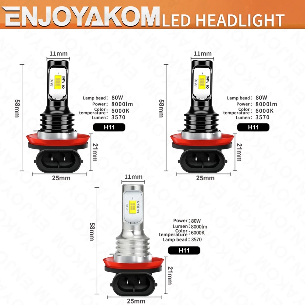 Number of Bulbs: 6 Universal Fitment: Yes EAN: Does not apply Material: Aviation 6063 aluminum profile Vintage Part: Yes Performance Part: Yes Superseded Part Number: Replacement Halogen Xenon Led Light Bulbs OE/OEM Part Number: 6000K LED Headlights Chips Type: COB LED Chips, Super Bright UPC: 679970253961 Model: LED Headlight Conversion Kit To Fit: Headlight Lumens: 10000lm Manufacturer Warranty: 5 Year Interchange Part Number: H11 High beam + H11 Low beam+ H11 Fog light Color Temperature: 6000K Lighting Technology: LED gtin13: 679970253961 Lighting Type: Specialty Head Light Bulb Suitable For: High Beam, Headlight, Low Beam, Fog Light Ballast Included: Yes Manufacturer Part Number: Mini-H11+H11+H11 Size: the same as the car original light Bulb Life Hours: Up to 50000 Hours Brand: ENJOYAKOM Wattage: 100W Voltage: 9V-36V Features: CAN bus Compatible, road Legal, Rust-Resistant Fitment Type: Direct Replacement Other Part Number: H11 high beam + H9 low beam + H11 Fog light Light Color: Cold White Placement on Vehicle: Front, Left, Right Type: Headlight Kit Bulb Fitment Code: H11/H9/H8 + H11/H9/H8+ H11/H9/H8/H16