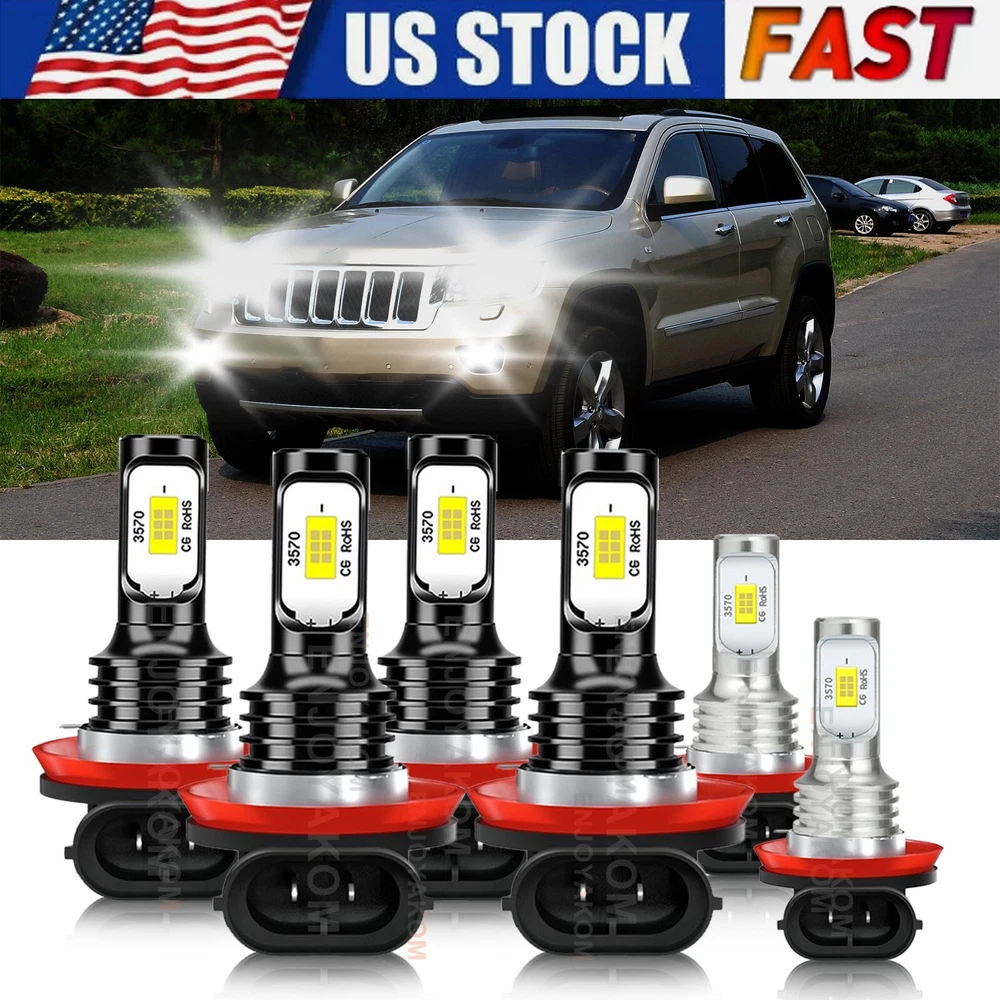 For Jeep Grand Cherokee 2019 2020 2021 LED Headlight Hi/Lo+Fog Light Bulbs Combo