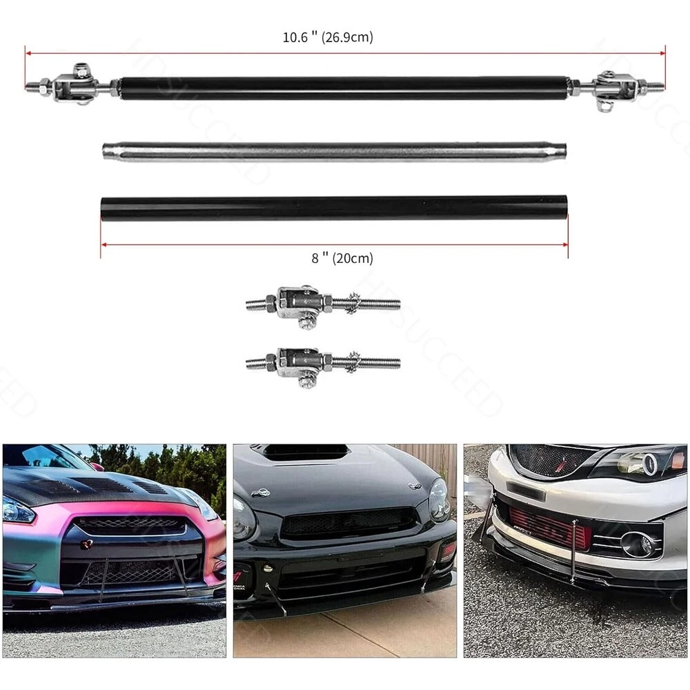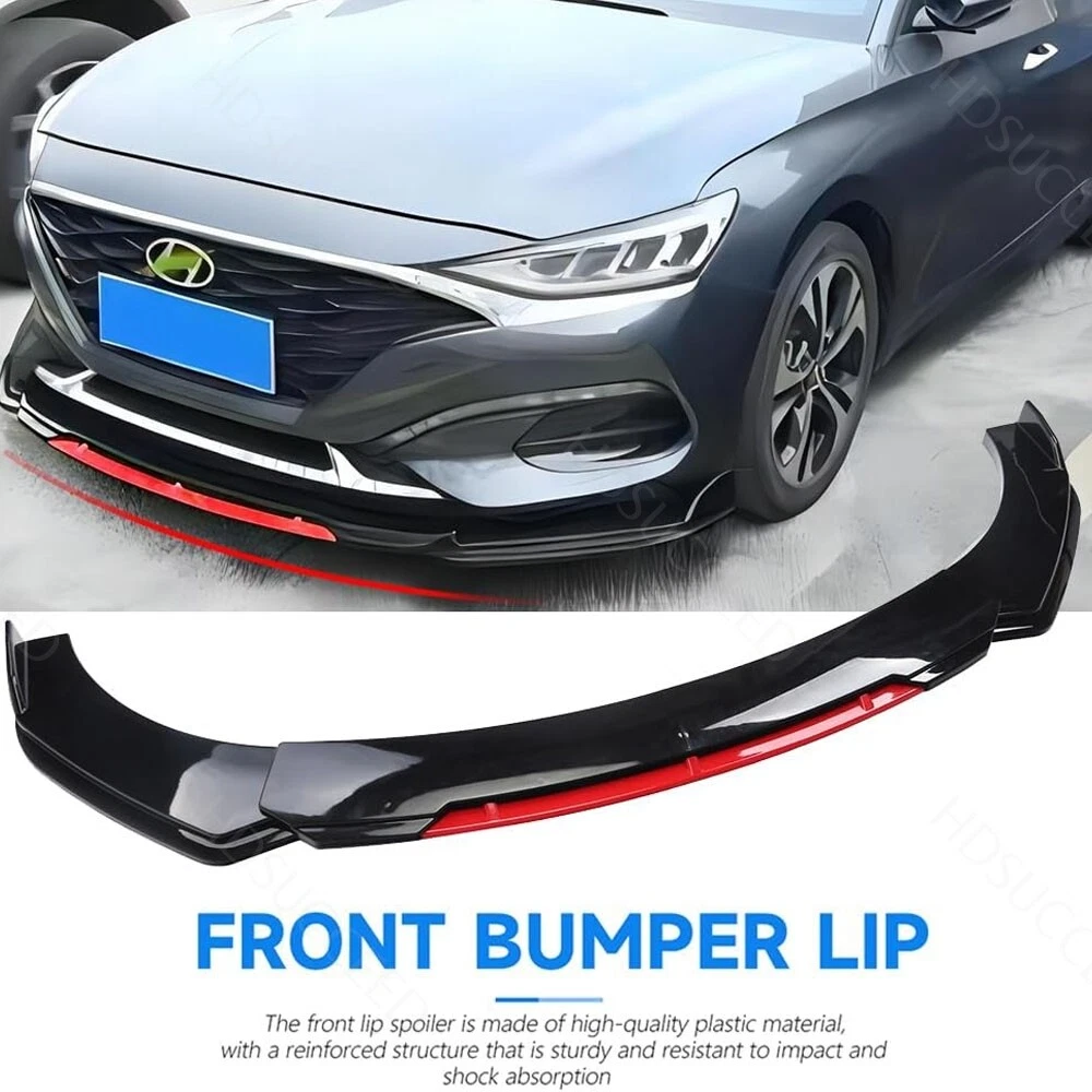 Description: Front bumper lip body kit spoiler: Material: ABS Color: Glossy Black+Red Placing on the vehicle: front Splitter Rods: Color: Glossy Black Material: stainless steel Length: 20cm Location: This delicate and compact joystick is mainly fixed to body components (front and rear walls, skirts, head, and tail lips), and can also be installed on the car center console or interior panel. Features: Made of updated and durable ABS plastic, with added reinforcing ribs, it will not deform after long-term use. Longer and wider than others. Provide an elegant and personalized appearance. Prevent the car from being scratched and improve the decoration level of the car. With screws, installation is more convenient and stable. Contains instructions, highly recommended for professional installation* Packaging included: 1 * Front bumper spoiler cover lip 2 * Splitter Rods