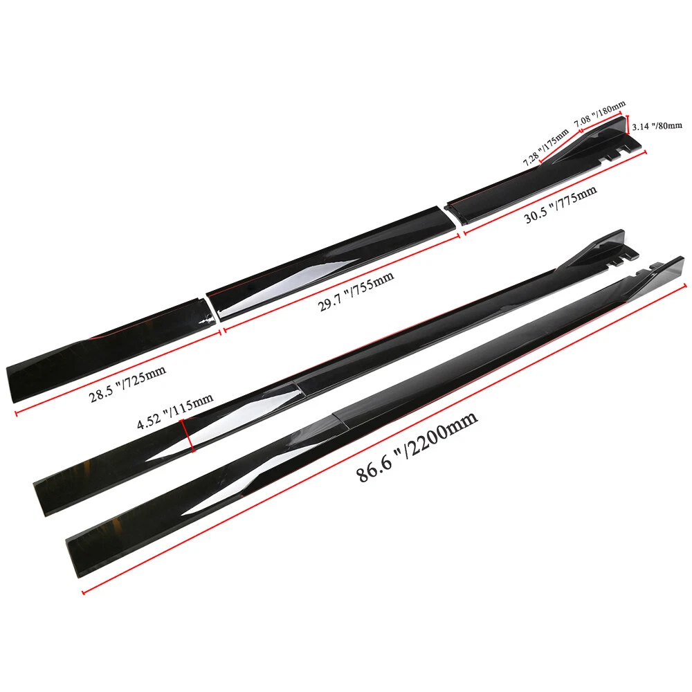 1.Front Bumper Lip Body Kit Spoiler Feature: Made of Updated durable and sturdy ABS plastic, adding stiffeners, no deformation in long-term use. Longer and wider than others. Provide an elegant and personalized appearance. Prevent the car from being scraped and improve the level of the decoration of the car. Adjustable angle, suitable for most models of Cars. Come with 2 blocks, More convenient installation, and stable adjustment. This is a set(4 pieces) front bumper cover lip front spoiler ***Instruction Not Included, Professional Installation Is Highly Recommended Specification: Type: Front Bumper Lip Body Kit Spoiler Material: High quality ABS Polyurethane Color: Glossy Black Weight: about 3.5 lbs Placement on Vehicle: Front; Lower Tough&Hard-wearing: Made from good-quality ABS Material with excellent abrasion-resistance and toughness, durable in use and NOT easy to deform. Dynamic Shape Design: With dynamic shape design, the front bumper lip can reduce wind resistance while driving. Protection: The sturdy materials of this front bumper lip can reduce damage and prevent the car from scratches. Advantages: 1.Prevent the car from being scraped and improve the level of the decoration of the car. 2.Reduce the wind resistance and disturbing effect. 3.Give 3D visual effect, Provide an elegant and personalized appearance 2.Side Skirt - Type: Side Skirt Extensions Splitters Diffuser, Side Skirt Extensions - Material: ABS - Color: Glossy Black - Length Size: 2.2m(86.6'') - Placement on Vehicle: Left & Right Feature Improve the appearance of the car, enhance the protection, and make the car stylish and cool Using matching bolts for easy installation(Screws and instruction are included). It requires drilling holes to attach the side skirts stably to the vehicle. (Application of double-sided tape may provide more stability and is very highly recommended. However, the double-sided tape is not included. ) Product may be trimmed to accommodate vehicle's side skirt length. ( Please measure your vehicles length before purchasing. ) 3.Strut Rods 1. Length: The length can be adjustable from 7.87" to 13" (200-330mm) 2. Material: Stainless Steel 3. Quatity: 2 x Stainless Steel Bumper Lip Splitter Tie Rod Bars. ( Stainless steel has weldability, corrosion resistance and heat resistance.) 4. Position: This exquisite and compact lever is mainly fixed on the body components (front and rear surround, skirt, head and tail lip), and can also be installed in the car center console or interior trim panel 5. Require: Product will require drilling holes into the bumper and/or lip/diffuser to attach safely to the vehicle. Package Included 1 x Front Lip Chin Bumper Body Kits Pair of 2.2m Side Skirt Extensions (L&R) 2 X Strut Splitter Rods 10 x Screws On Aug 11, 2024 at 19:40:48 PDT, seller added the following information: