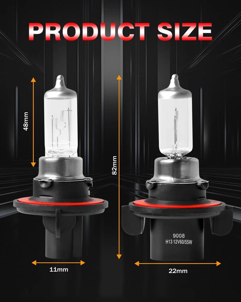 Specifications: • Bulb Socket: H13 9008 + 5202 PSX24W • Color Temperature: 3400K • Voltage(V): DC 12V • Working temperature: -40℃~+80℃ • Beam Angle: 360° • Waterproof Level: IP65 • Material: Aviation Aluminium • Super Long Service Life: ≥800 Hours • Warranty: 5 Year • Canbus Error Free: No. For most vehicles, just directly plug and play. Yet for some vehicles with CAN-BUS system, it may require install decoder or load resistor to avoid hyper flash or fast blinking. • Please Note: Please check your car manual or original bulb to confirm the bulb size, length is correct or not before purchasing to save your time. Package Included: • 2Pcs 9008/H13 Halogen Bulbs High and Low Beam • 2Pcs 5202/ PS24W Halogen Bulbs Fog Light ( Random shipment of new and old packaging ) Note: • Energy saving, environmental protection, Stable performance, through strict test, Use safer driving in the car • For most cars, just Plug-n-Play,no ballast required. Yet for some European vehicles or new vehicles, load resistors maybe required to avoid the error code or blinking. • When installing this bulb, please make sure to turn the car off, and key out. Bulbs are very easy to install. You just have to plug it in the socket. ( bulb has + AND -terminal. If it doesn't light up after inserting into the socket, all you need to do is insert it oppositely.) • The compatible vehicle list shows only partial cars due to the ebay limits, if your car plug is same with this bulb, the item will fit your car. • If you're not sure about it, please send us an ebay message and tell us your car year, make, model and the position you need to replace, we will help you check with it. • If you have a decoding problem or any other problems, please contact us first, we will help you with it. I'm a new seller, thanks a lot for your trust and convince! I will serve you with all my heart.