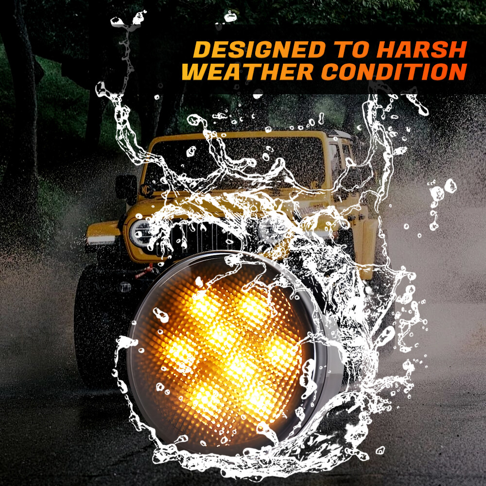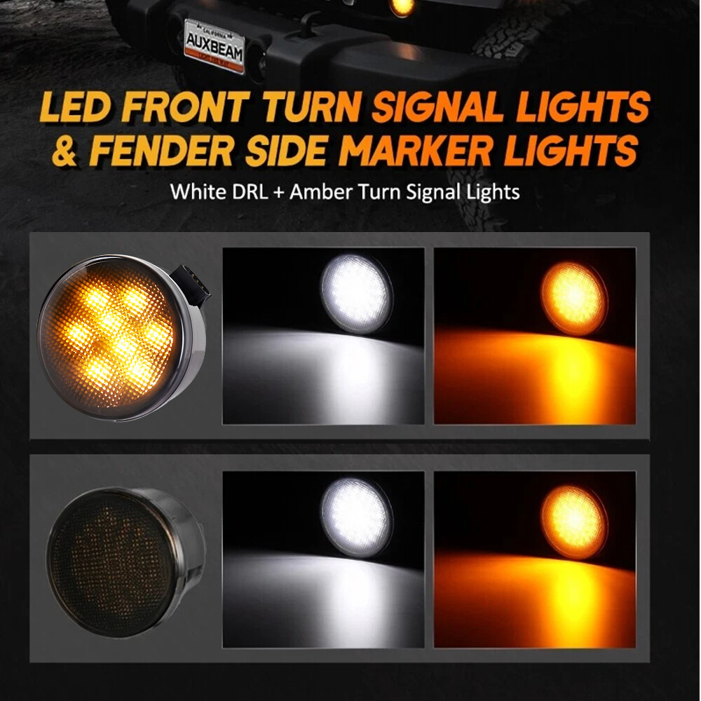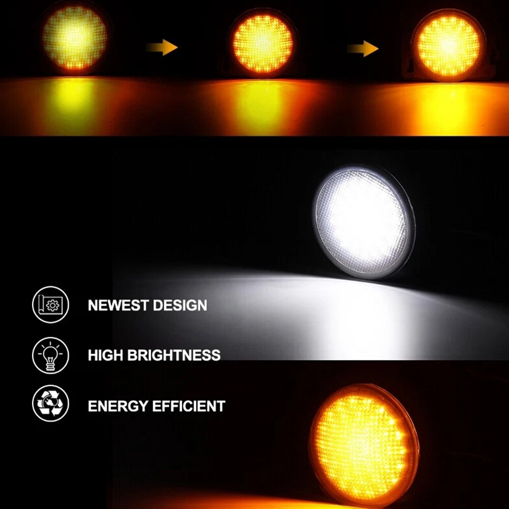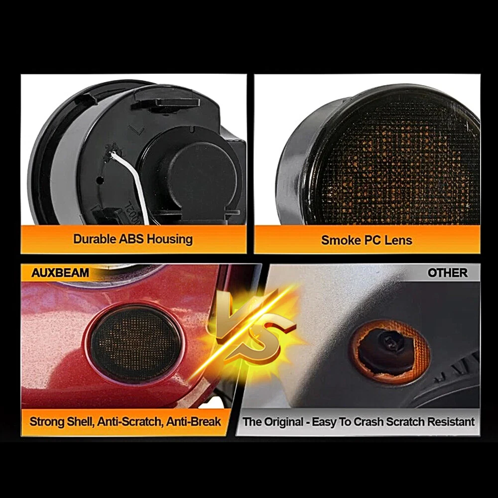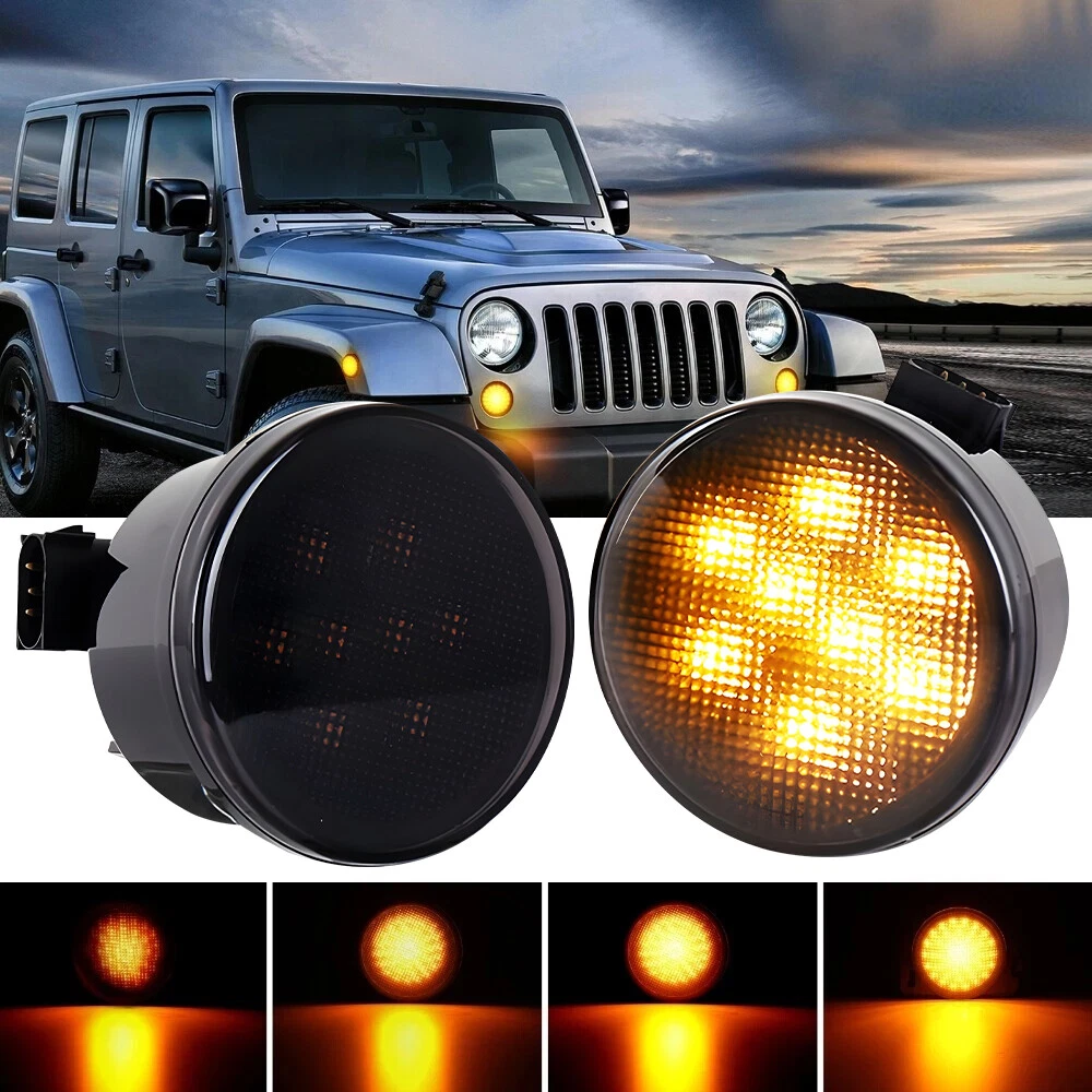 Spe cificatio n: Voltage: DC12V Power: 0.1W*8 Lamp beads: LED Color temperature: 2000K (yellow) Material: ABS injection molding Service life: 50,000 hours Applicable models: Wrangler Installation location: center grille turn signal Product size: 88*72*88mm Fits: for Jeep Wrangler JK JKU 2007-2018 (2/4 Door, Unlimited, Rubicon, Sahara, Sport) Features: Simple design enhances your car's exterior look. High Quality, Waterproof IP67. Super bright,faster on/off response time for Driving Safety. Direct Plug & Play, Usually in 15 minutes or less. Low Power Consumption, Life Span: 80000Hrs. Low Voltage Protectio n, High precision Constant Current Driver Chip. Turn Signal Lights Smoke Lens for Jeep Wrangler JK are Dramatically Improve Style and Perform ance. 3D Lens Design with faster on/off Response.
