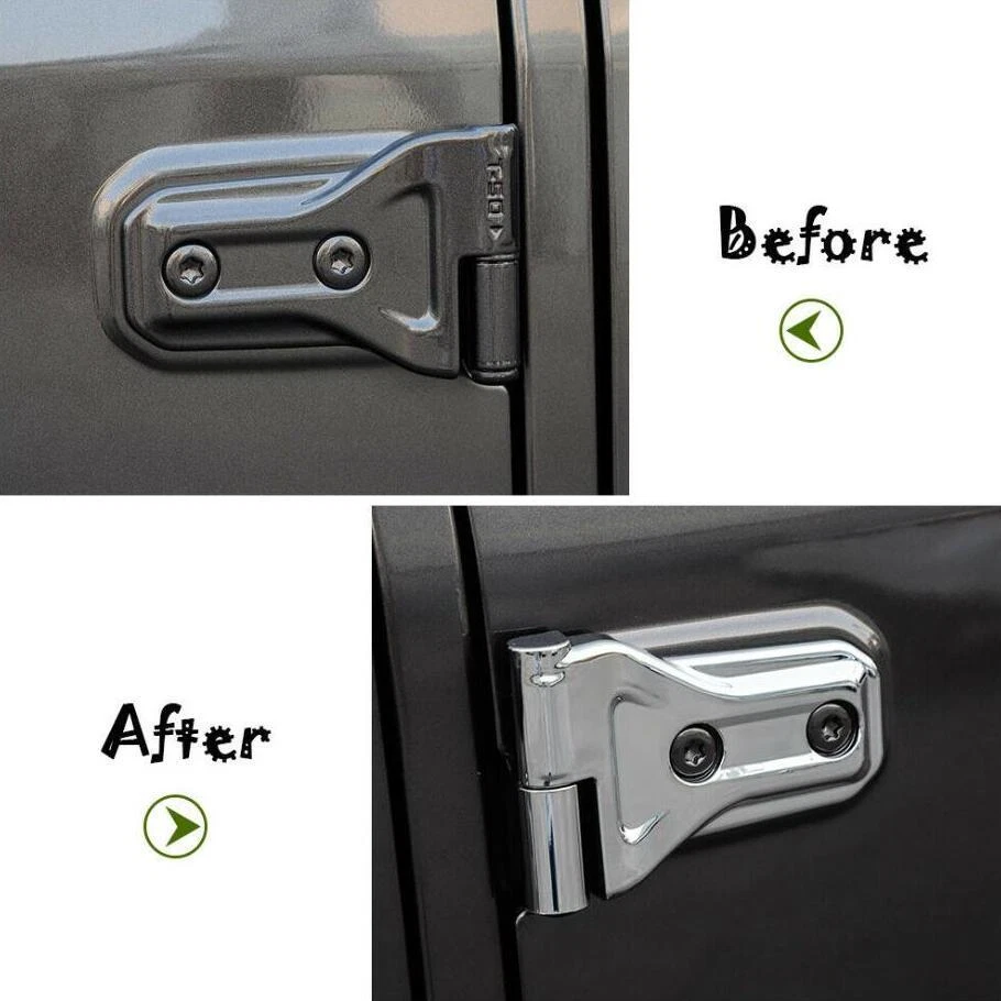 Fitment: Fit For Jeep Wrangler JL 2018-2023 "Please note that this product is only suitable for 2-door car models" Feature: Condition:100% Brand new Material: High Quality ABS Plastic Color:Chrome Package including:8PCS Made in a ISO9001 Factory,good quality and have been exported all over the world Easy installation.3M automotive adhesive tape is attached. INSTRUCTION MANUAL IS NOT INCLUDED For Jeep Wrangler JL 2018-2023 2-Door ABS Chrome Car Door Hinge Cover Trim Kit Fitment: Fit For Jeep Wrangler JL 2018-2023 "Please note that this product is only suitable for 2-door car models" Feature: Condition:100% Brand new Material: High Quality ABS Plastic Color:Chrome Package including:8PCS Made in a ISO9001 Factory,good quality and have been exported all over the world Easy installation.3M automotive adhesive tape is attached. INSTRUCTION MANUAL IS NOT INCLUDED Installation method: Step1: please clean the place with 50% alcohol to make sure no dust. Step2: remove the 3m glue in back; Step3 : heat the 3m glue by hot air gun;(A tip for putting on with supplied 3m tape is to warm the handles and the covers this makes the glue on the tape more sticky and they will stay on for ever!) Step 4: install the products in the right place ,Don't wash your car within 48hours. Customer Service If you cannot find the answers to your questions in this listing, please contact us , we will reply u ASAP,we will try our best to pleasure to serve u ! we hope have more happy and longtime shopping experience with u ! Shipping We will ship your order within 120 hours after receiving your verified payment (Excluding Weekends and Public Holidays) ! If u need delivery now , pls inform us , we will delivery it ASAP! shipping Shipping and handing Payment Refunds and returns About us shipping Country Approx / Delivery time United States : 8-25 working days United Kingdom / Australia / Canada : 20-35 working days Brazil / South America : may take up to 5-8 weeks due to strict Custom Inspection Italy / France / Spain / Germany/Eastern Europe : may take up to 6-8 weeks due to strict Custom Inspection Shipping and handing Item will be shipped within 24 -48 hours after full payment is received. · We ship worldwide with flat rate China Post , and other standard international shipping. this international order may take a longer time to arrive, Normally the shippment to worldwide is used to take 8 to 25 business days, exclude Weekend. Payment We accept PayPal only. Payment must be received in 7 business days of auction closing. Any special request cannot be accepted after 24 hours of payment, because most of orders will be processed instantly and same day dispatched. Refunds and returns Please contact us before leaving Netural or Negative feedback if you are not satisfied our service or products. Good communication is helpful for both of us to resolve any problems and issues. We are promising to try our best to provide the best service and 100% satisfaction for valuable buyer like you · All of the items are new. If it is not in new conditions, refund is offered. Otherwise, replacement can be offered for defective product. We will exchange or give the seller credit to buyer. · Please email us for all returns, and exchange shipping and handling charges are non-refundable. · Customers are responsible for return shippment fee except for wrong shipment or defective products. About us If you have any questions, please feel free to email our service specialists 24 Hours a Day, 7 Days a Week, and we will reply you ASAP. If no response within 24 Hours, please check the spam of mail box or kindly re-send it to us. We greatly appreciate your POSITIVE feedback. Please do NOT leave negative or neutral feedback without any contact. If you haven't received item in 30 days, please contact us and we will arrange refund. Advantage Will Never fade or rust Country/Region of Manufacture China Items Automotive > Exterior Accessories Approve Made in an ISO 9001 facility to ensure good quality Color Chrome Manufacturer Part Number Does Not Apply Placement on Vehicle Front, Left, Right Brand Unbranded Fitment Type Paste covering decorations Manufacturer Warranty 1 Year External Testing Certification ISO9001(ISO9001) Compatible with For Jeep Wrangler JL 2018-2023 Material High quality ABS plastic Features Beautiful & Scratch Resistant Finish Polished Chrome Type Hood Package include 8PIECES/SET